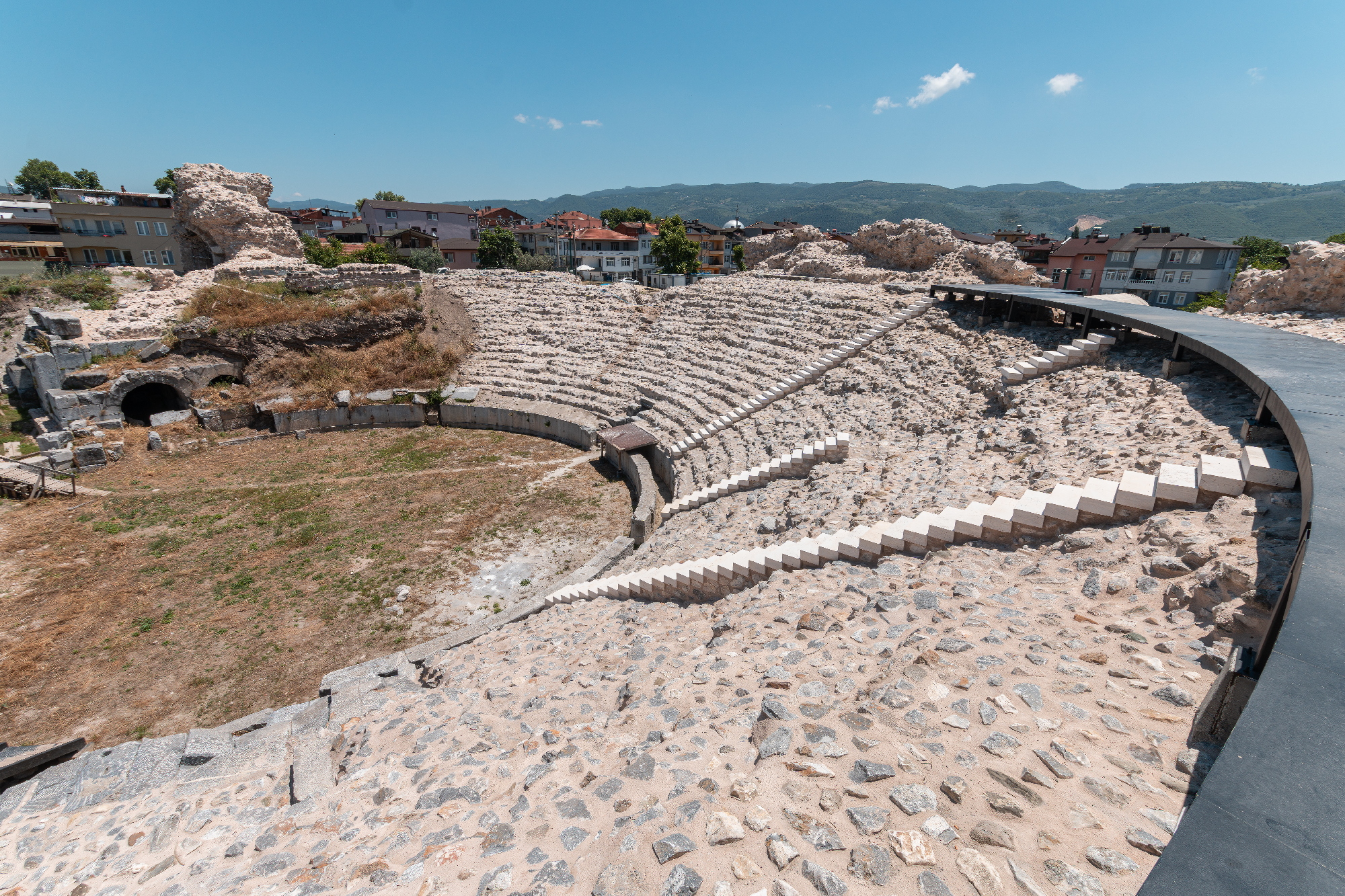 BURSA – Bursa’nın İznik İlçesi’nde M.S 2’nci yüzyılda yaptırılan, Büyükşehir Belediyesi’nin destekleriyle süren arkeolojik kazılarda bulunan Ion Kolonizasyonu dönemine ait seramiklerle bölgedeki yaşam izlerinin M.Ö. 6’ncı yüzyıla kadar uzandığı belirlenen Roma Tiyatrosu turizme kazandırılıyor. Büyükşehir Belediyesi tarafından yerli ve yabancı turistlerin alanı gezmesine yönelik gezi güzergâhı oluşturulurken, oturma basamaklarının üst kısmında oluşturulan seyir platformu ile alanın net bir şekilde izlenebilmesi sağlandı.
