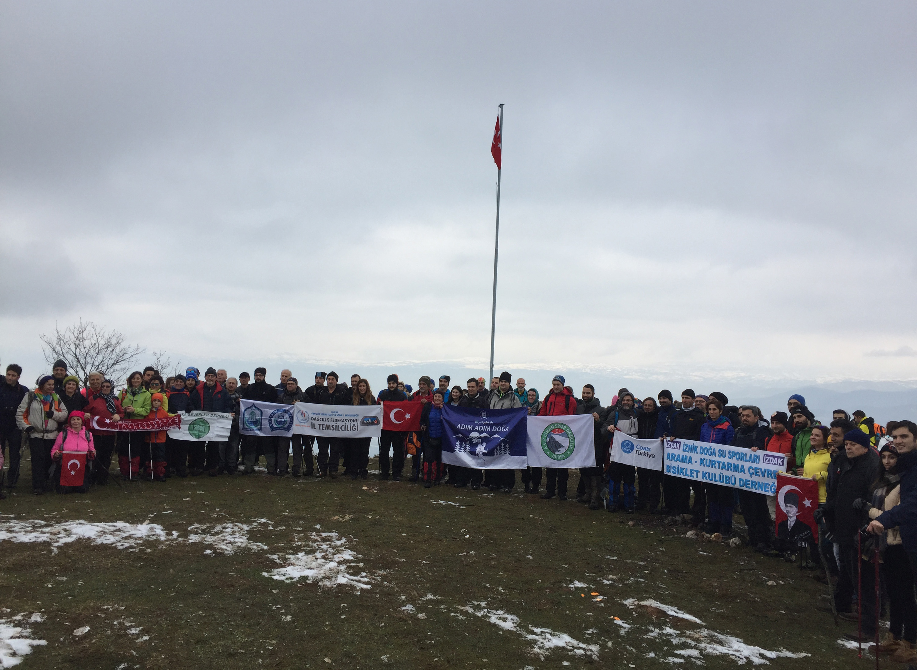 Kırsalda sosyal ve ekonomik kalkınmanın turizmle ivme kazanması adına çalışmalarını sürdüren Bursa Büyükşehir Belediyesi, Kültür ve Turizm Dairesi Başkanlığı’nın organizasyonu ile Büyükşehir ile Adım Adım Doğa projesi ile İznik’te İznik Eko Turizmi Keşfet etkinliğini gerçekleştirdi. Parkurunu DATİK Başkanı Orhan Topal, Hilmi Sarı ve Gökhan Dağhan’ın oluşturduğu etkinliğe katılan Bursalı dağcılar, haftasonunda Tayyare Kültür Merkezi önünde buluştular. Bursa’dan İznik’e hareket eden 115 dağcı, İznik Çamoluk Mahallesi’nden DATİK rehberliğinde doğa yürüyüşüne başladı. Yükseltinin artması ile birlikte zaman zaman parkurda kar görülmesi katılımcılara keyifli anlar yaşattı. İznik Eko Turizm Tesisleri’nin hemen yakınındaki tepeye ulaşan grup, burada İstiklal Marşı eşliğinde Türk Bayrağı’nı dalgalandırarak tepeye ‘Bayrak Tepe’ ismini verdi. Etkinliğin ardından İznik Belediyesi Eko Turizm Tesisleri’ne ulaşan grup, yemek molasının ardından tura devam etti. Türkiye Dağcılık Federasyonu Bursa İl Temsilciliği’nin de desteklediği organizasyonda katılımcılara, ilçe ile ilgili bilgiler de verildi. Programın sonunda İznik İlçe Emniyet Amirliği’ni ziyaret eden dağcılar, son günlerde yaşanan elim olaylardan dolayı Emniyet personeline de taziye dileklerinde bulundu. Türkiye Dağcılık Federasyonu Bursa İl Temsilcisi Nazif Makas ile DATİK Başkanı Orhan Topal, Bursa Büyükşehir Belediye Başkanı Recep Altepe’ye dağcılık camiasına verdiği desteklerden dolayı teşekkür etti.