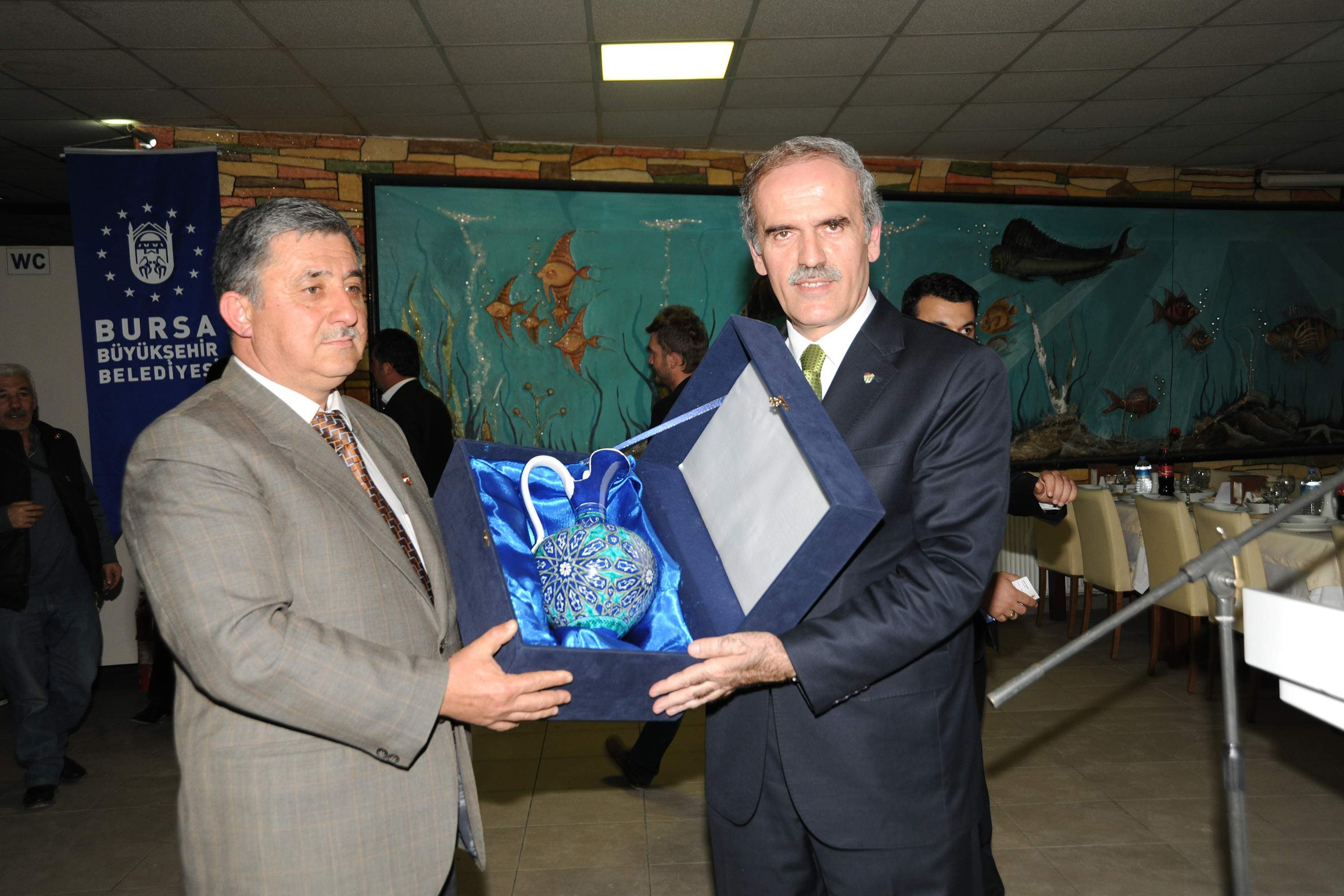 İznik’te muhtarlarla yapılan toplantıda konuşan İl Genel Meclisi Başkanı Nedim Akdemir de bütünşehir uygulamasıyla birlikte kırsal kesime yapılan yatırımın en az 4 kat artacağını, İl Özel İdaresi ve İl Genel Meclisi imkanlarının tümüyle Büyükşehir’e devredileceğini anlattı. Bursa Muhtarlar Derneği Başkanı Nedim Serbestol ise yeni yasa gereği muhtarın muhatabının artık Büyükşehir olduğunu vurgulayarak, yaşadıkları sıkıntıları tek elden aktarmanın mutluluğunu yaşadıklarını belirtti. İznik Muhtarlar Derneği Başkanı Yakup Sevinç de Başkan Altepe’ye muhtarlara gösterdiği hassasiyet nedeniyle teşekkür etti. Toplantının sonunda Sevinç, Başkan Altepe’ye İznik çinisi takdim etti. Müşküle Muhtarı Şemsettin Taran ise Bursa Muhtarlar Derneği Başkanı Nedim Serbestol’a İznik çinisi hediye etti.