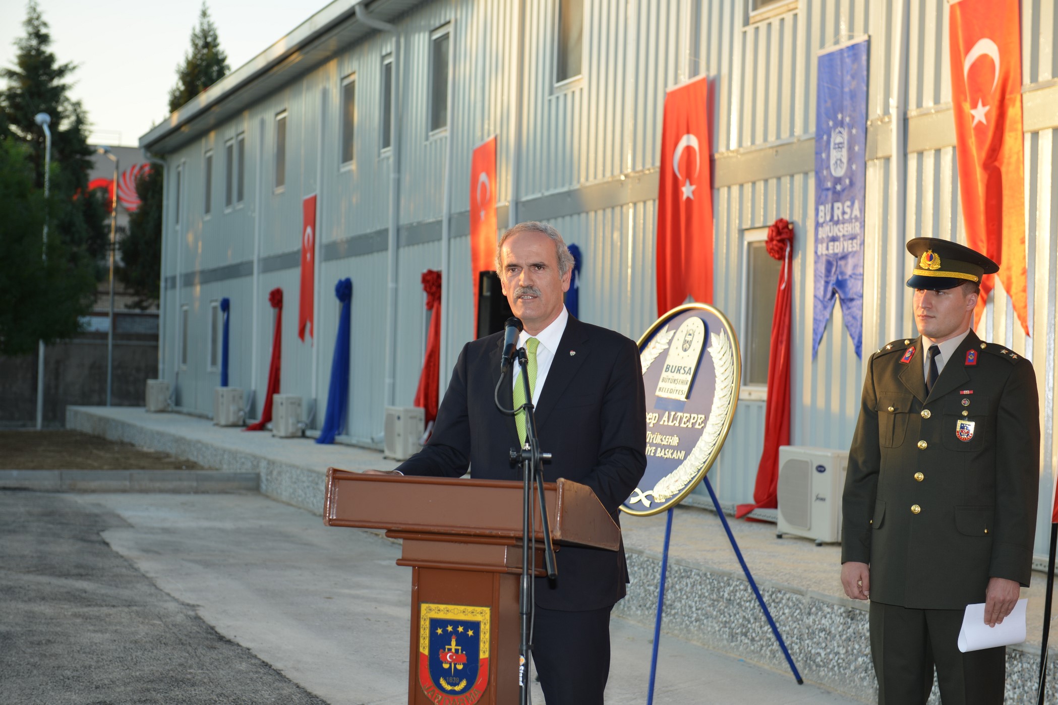 - BURSA GARNİZON VE JANDARMA BÖLGE KOMUTANLIĞI ALANINDA KURULAN TABUR BİNASI İLE ÇEVRE DÜZENLEMELERİ İÇİN YAKLAŞIK 2 MİLYON TL’LİK HARCAMA YAPTIKLARINI BELİRTEN BÜYÜKŞEHİR BELEDİYE BAŞKANI RECEP ALTEPE, HUZUR KENTİ BURSA’NIN DAHA DA HUZURLU HALE GELMESİ İÇİN EMNİYET GÜÇLERİYLE BİRLİKTE ÇALIŞMAYA DEVAM EDECEKLERİNİ SÖYLEDİ.
