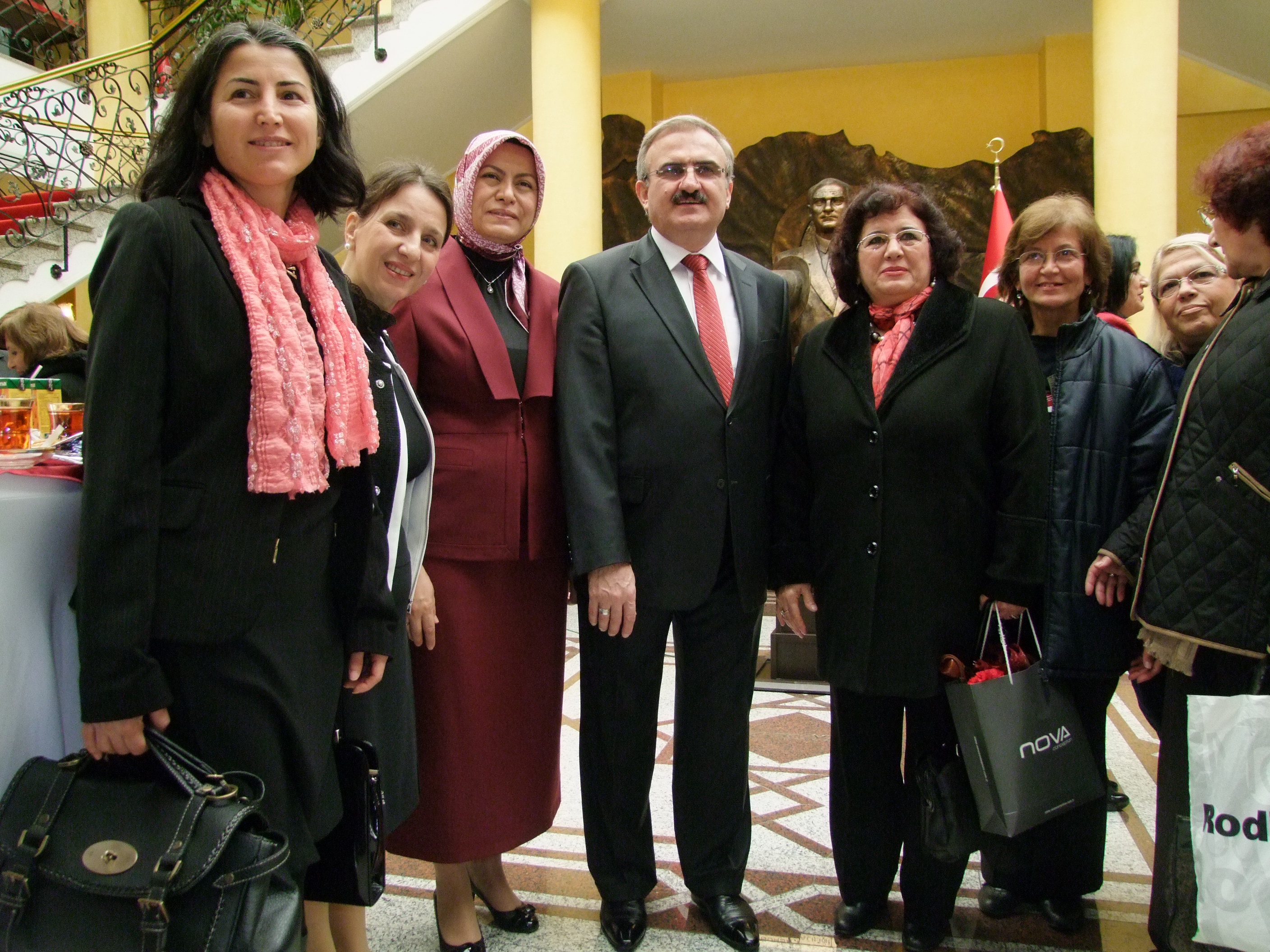 8 Mart Dünya Kadınlar Günü etkinlikleri kapsamında Heykel Atatürk anıtına çelenk bırakan BKK Kadın Meclisi üyeleri ile sivil toplum kuruluşlarının kadın temsilcileri, Heykel Valilik binasında Bursa Valisi Münir Karaloğlu ve Eşi Sevim Karaloğlu tarafından kabul edildi. Kadın temsilcileri kapıda kırmızı karanfil ile karşılayan Vali Karaloğlu, “Bu güzel ve özel günde bu tarihi mekanda sizleri ağırlamaktan mutlu olduğumu belirtmek istiyorum. Günümüzde 8 Mart Dünya kadınlar günü, kadınlarımızın sosyal, ekonomi ve siyasi hayattaki sorunlarının konuşulduğu, kadınımızın hem üretime hem de siyaset aracılığı ile yönetime daha fazla katılımını sağlama noktasında, kadınlarımızın vermiş olduğu mücadelenin tekrar konuşulmuş olduğu bir gün olarak kutluyoruz” dedi.