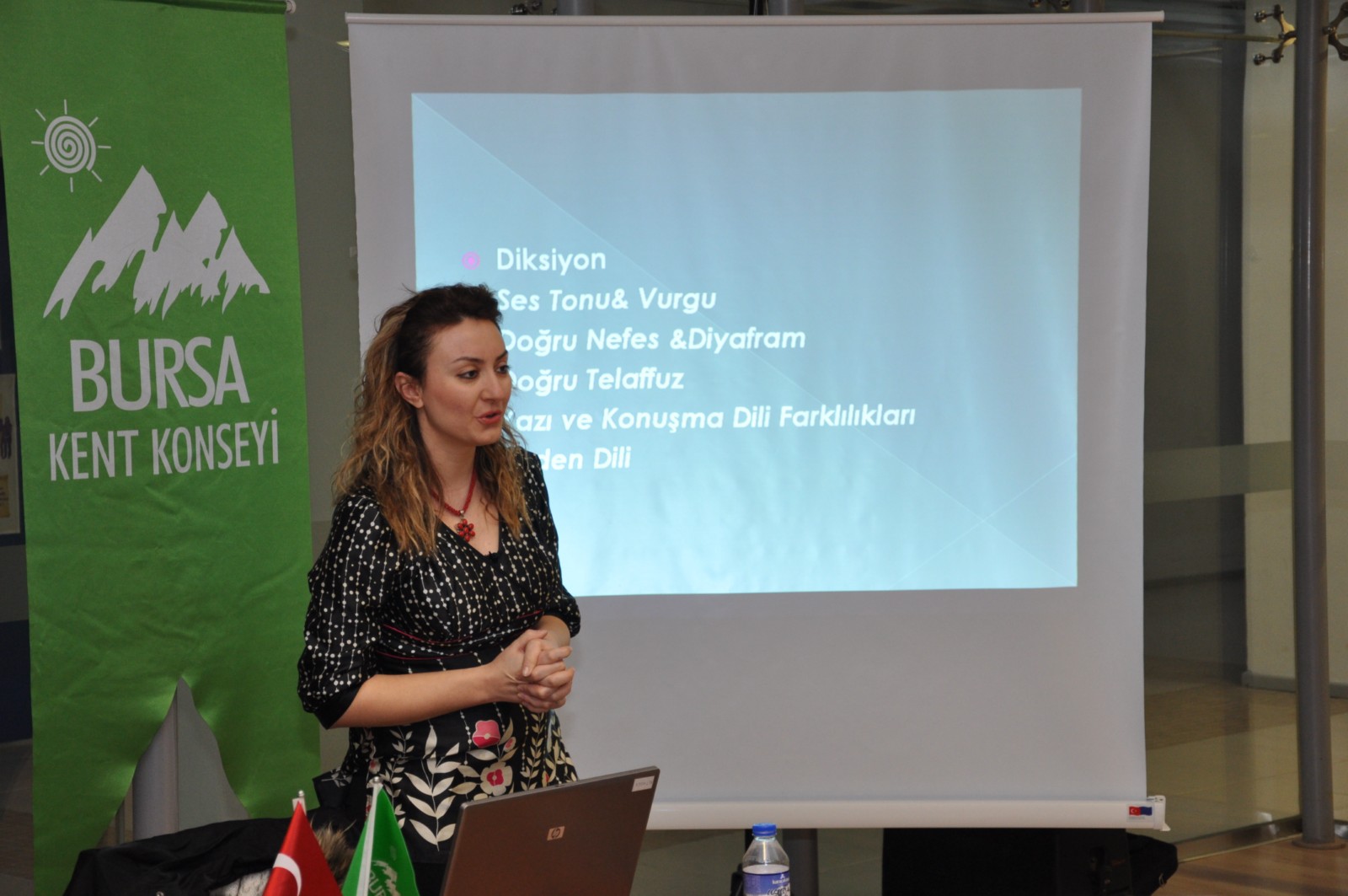 - BURSA KENT KONSEYİ KADIN MECLİSİ VE AÇEV İŞBİRLİĞİNDE KADINLARA YÖNELİK ‘DİKSİYON VE BEDEN DİLİ’ SEMİNERİ DÜZENLENDİ.