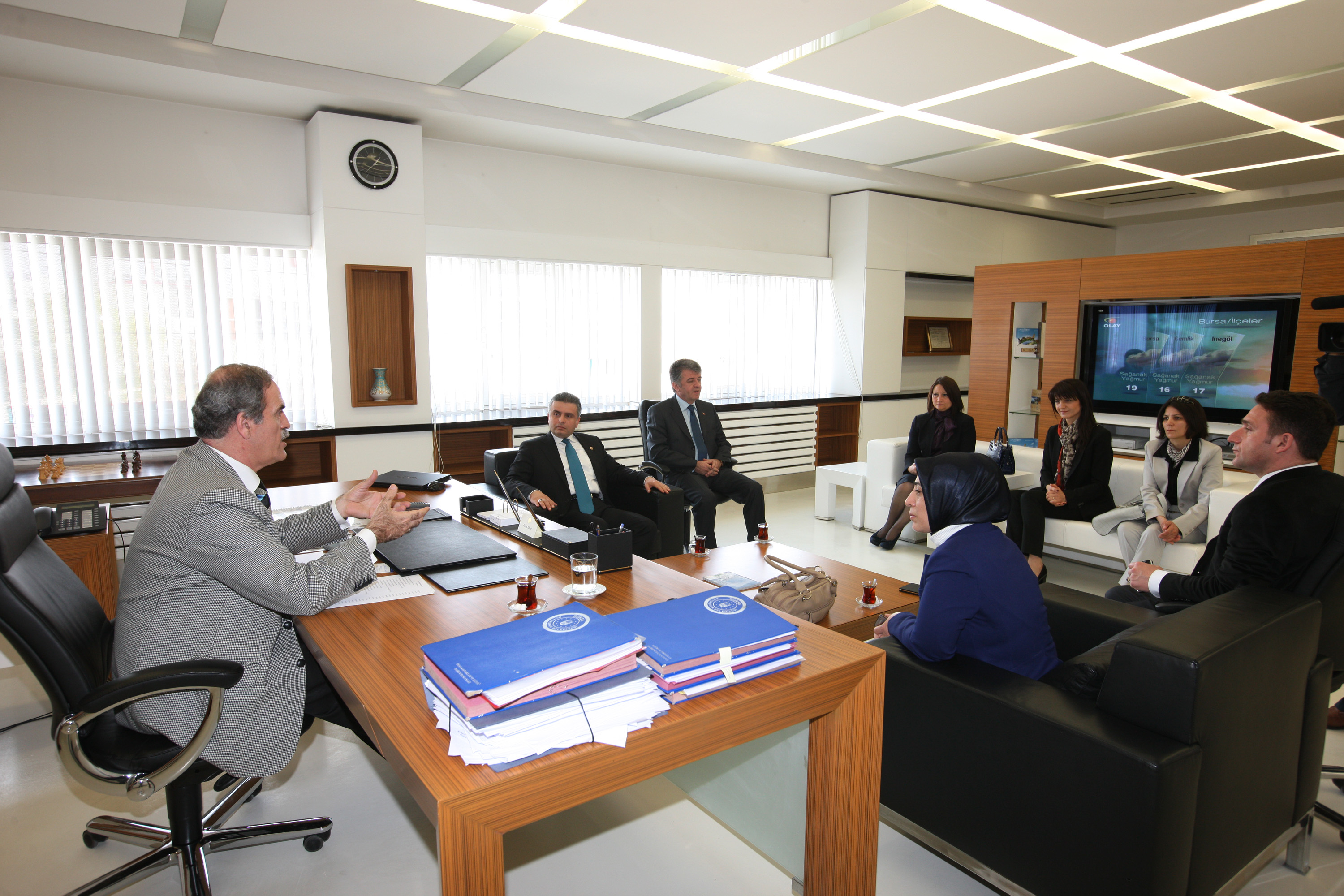 AK Parti İl Kadın Kolları Başkanı Nilüfer Kahveci beraberindeki heyetle birlikte Büyükşehir Belediye Başkanı Recep Altepe’yi ziyaret etti. AK Parti Bursa Milletvekili M.Kemal Şerbetçioğlu, Büyükşehir Belediyesi Meclis Üyesi Atilla Ödünç ve BESAŞ Genel Müdürü Mustafa Bektaş’ın da hazır bulunduğu ziyarette konuşan Başkan Altepe, bu dönem en önemli çalışma alanlarından birinin de kadınlar ve çocuklar olduğunu söyledi. Kadınların sosyal hayatın her alanında daha aktif bir rol almasını sağlamak amacıyla başta meslek edindirme ve bilgisayar kursları olmak üzere birçok eğitici çalışmayı hayata geçirdiklerini kaydeden Başkan Altepe, “Bunun yanında kadınlarımızın da bulunduğu mahallelerde spor yapmalarına olanak sağlayacak tesisler kazandırıyoruz. Hanımlarımızın boş zamanlarını geçirecekleri, onlar için bir buluşma noktası olacak hanım lokallerimizden ilkini Yıldırım’da tamamlamak üzereyiz. Biz bu alanda elimizden ne geliyorsa yapıyoruz ve yapmaya da devam edeceğiz” dedi.