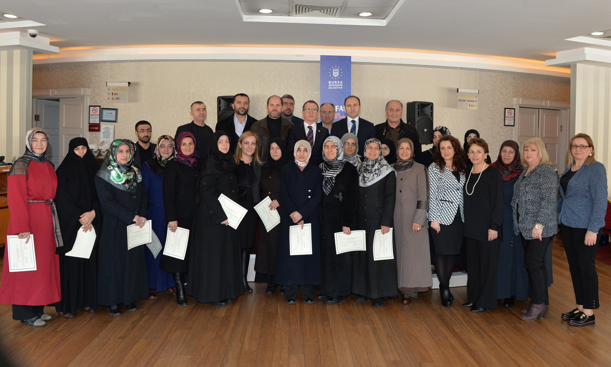 Karlık, konuşmasının ardından projeye katkı veren İHH Bursa Şube Başkanı Hüseyin Kaptan’a teşekkür plaketi verdi. Kursiyerler daha sonra sertifikalarını Başkanvekili Karlık ve Genel Sekreter Yardımcısı Neşet Çakmaklı’nın elinden aldı.