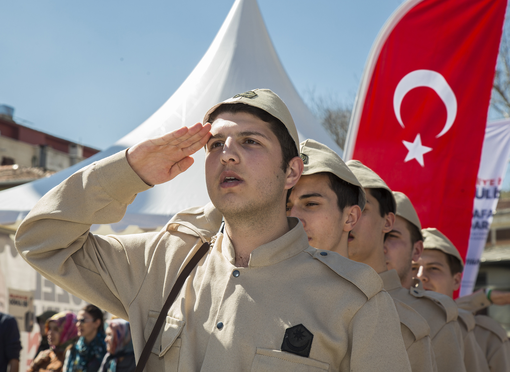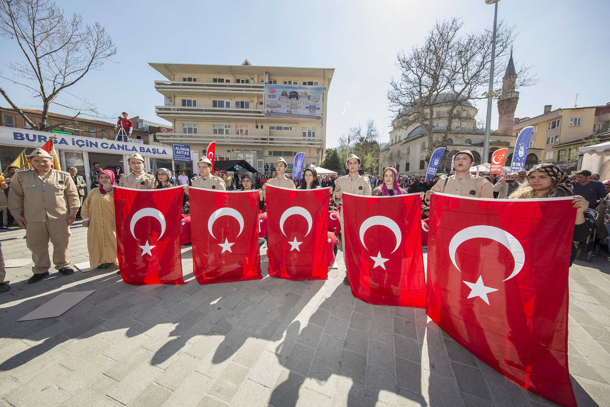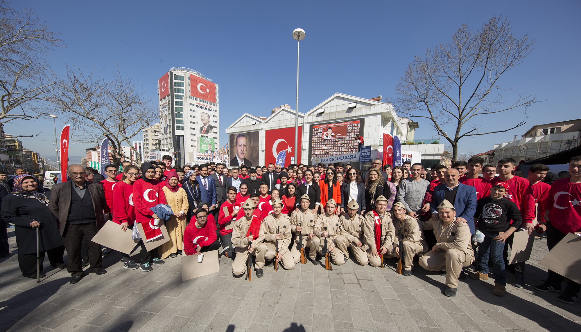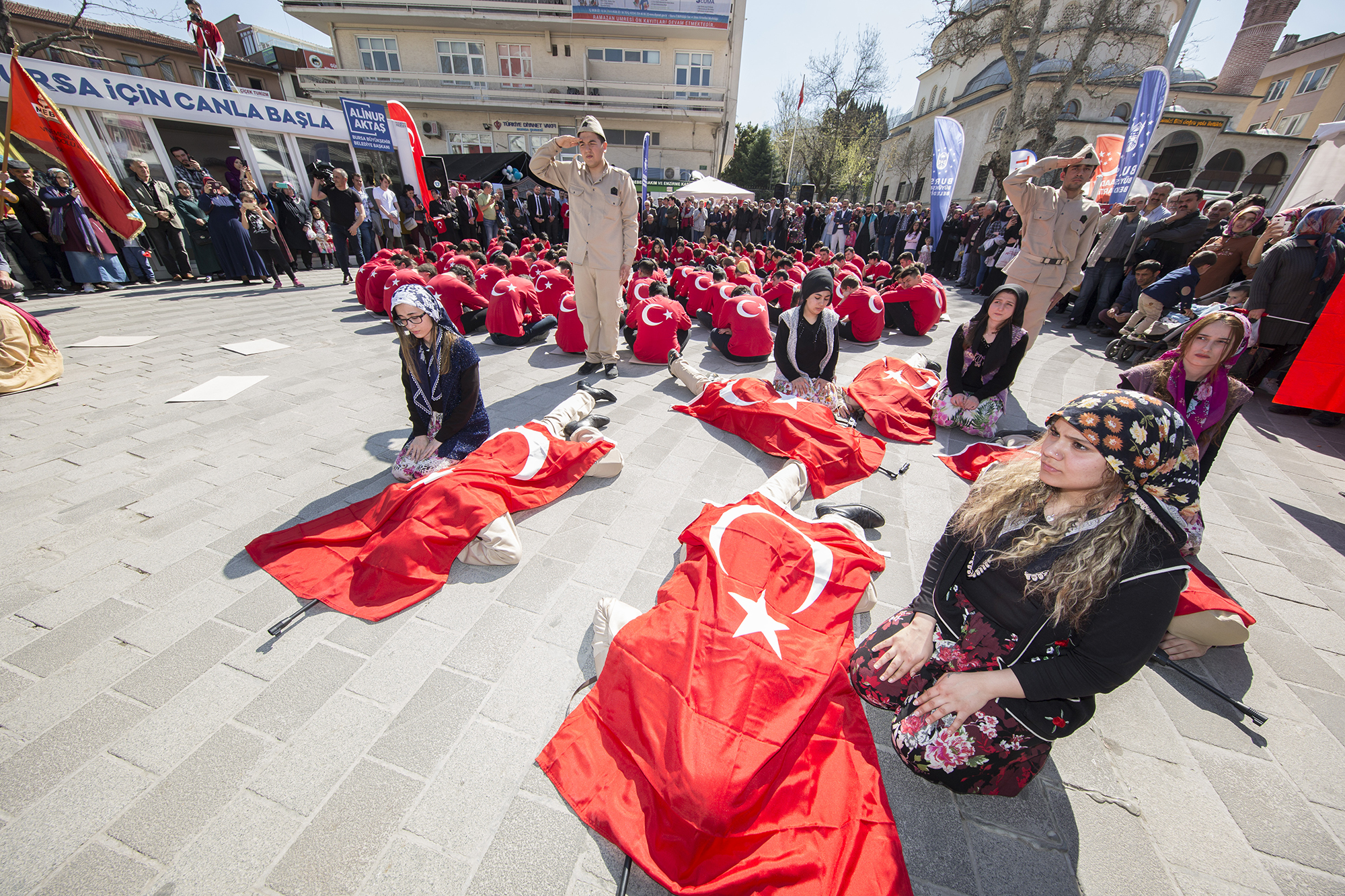 18 Mart Şehitleri Anma Günü ve Çanakkale Zaferi’nin 104. yıldönümü sebebiyle Tophane Mesleki ve Teknik Anadolu Lisesi öğrencileri ‘Çanakkale’ ruhunu yansıttı. Bursa Büyükşehir Belediyesi Gençlik Hizmetleri ve Spor Müdürlüğü’nün destekleri ile 15 Temmuz Demokrasi Meydanı’nda yapılan etkinlik, alanı dolduran binlerce kişi ile hep bir ağızdan okunan İstiklal Marşı ile başladı. Ardından Lise öğrencisi İrem Solakçı’nın seslendirdiği “Çanakkale Türküsü” eşliğindeki ‘canlandırma’ izleyenlere duygusal anlar yaşattı. 100 öğrenci hazırladıkları bayrak temalı perküsyon konseri ise büyük alkış aldı.