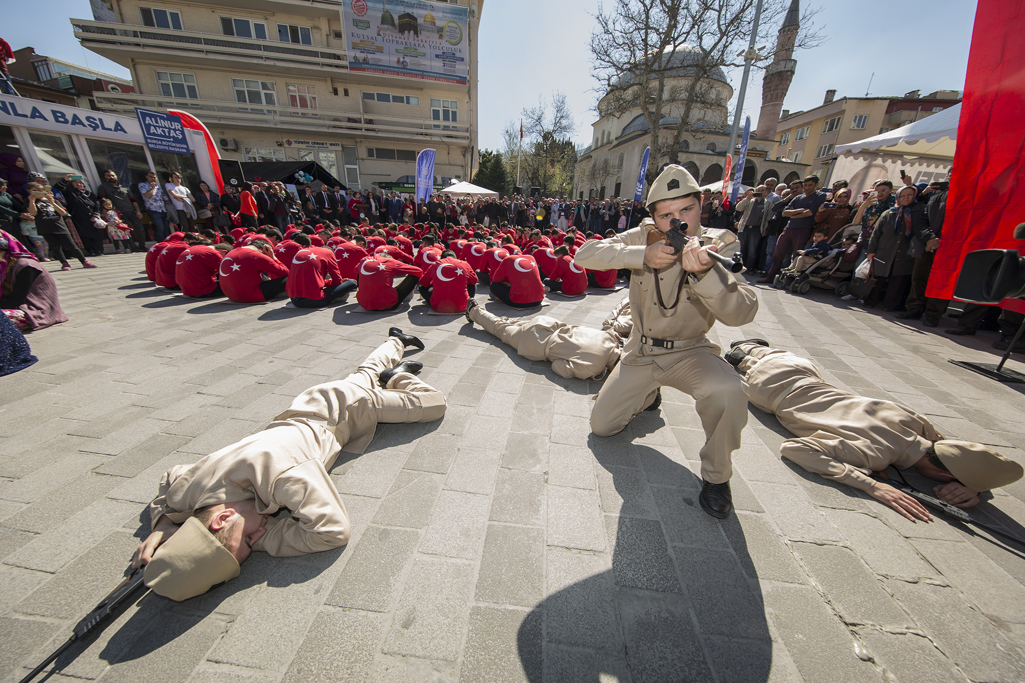 İzleyen birçok vatandaşın gözyaşlarını tutamadığı etkinliğin sonunda Bursa Büyükşehir Belediye Başkanvekili Ahmet Yıldız, öğrencilere duyarlılıklarından dolayı teşekkür etti. Özellikle genç neslin bu tür hassasiyetlere sahip olmasının onur verici olduğunu söyleyen Yıldız, “18 Mart Şehitleri Anma ve Çanakkale Zaferi’nin yıl dönümü nedeniyle yurdun her köşesinde farklı etkinlikler yapılıyor. Burada yapılan etkinliğe emek veren gençlerimize, öğretmenlerimize teşekkür ediyorum. Sergiledikleri gösteri ve piyesle bize duygusal anlar yaşattılar. Türk Milletinin dünya tarihinin sayfalarına altın harflerle yazdırdığı önemli günün 104.yıl dönümünde başta ulu önder Gazi Mustafa Kemal Atatürk ve silah arkadaşları olmak üzere, tüm şehit ve ebediyete intikal etmiş gazilerimizi, minnet ve şükranla anıyorum” diye konuştu.