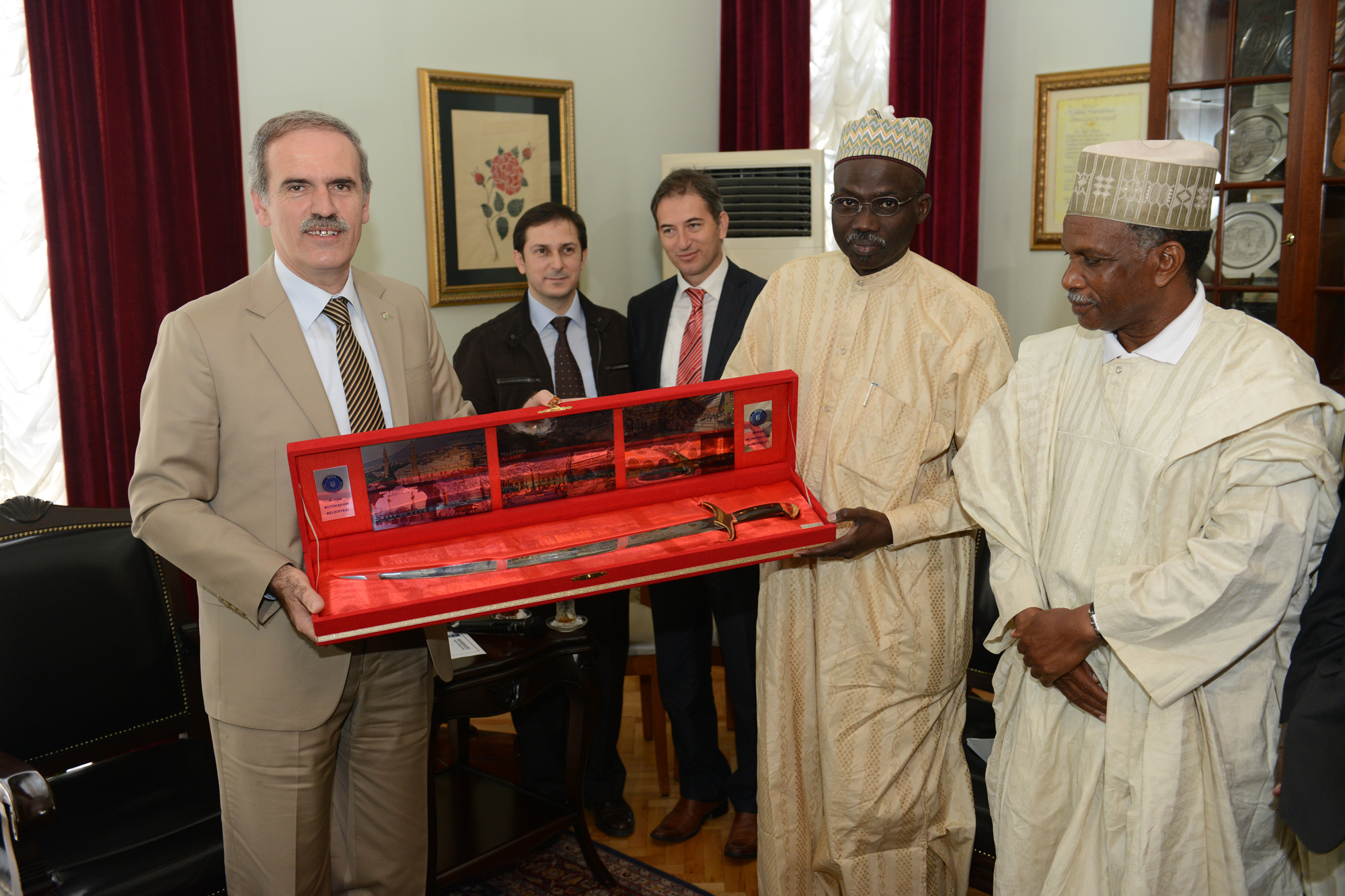 Büyükşehir Belediye Başkanı Recep Altepe’de Kamerunlu konukları Bursa’da ağırlamaktan mutluluk duyduklarını söyledi. Osmanlı başkenti Bursa’nın başta Balkanlar olmak üzere tüm Osmanlı coğrafyasında izler bıraktığını hatırlatan Başkan Altepe, Ngaundere ile Bursa’nın kardeş kent olması için gerekli girişimleri başlatacaklarını söyledi. Başkan Altepe, ziyaretin sonunda konuk valiye Bursa kılıcı hediye etti.