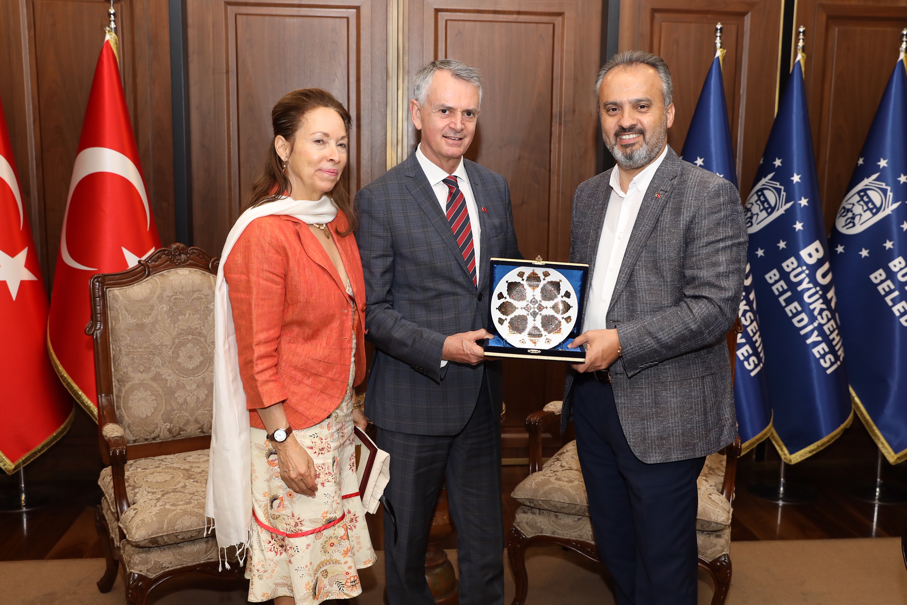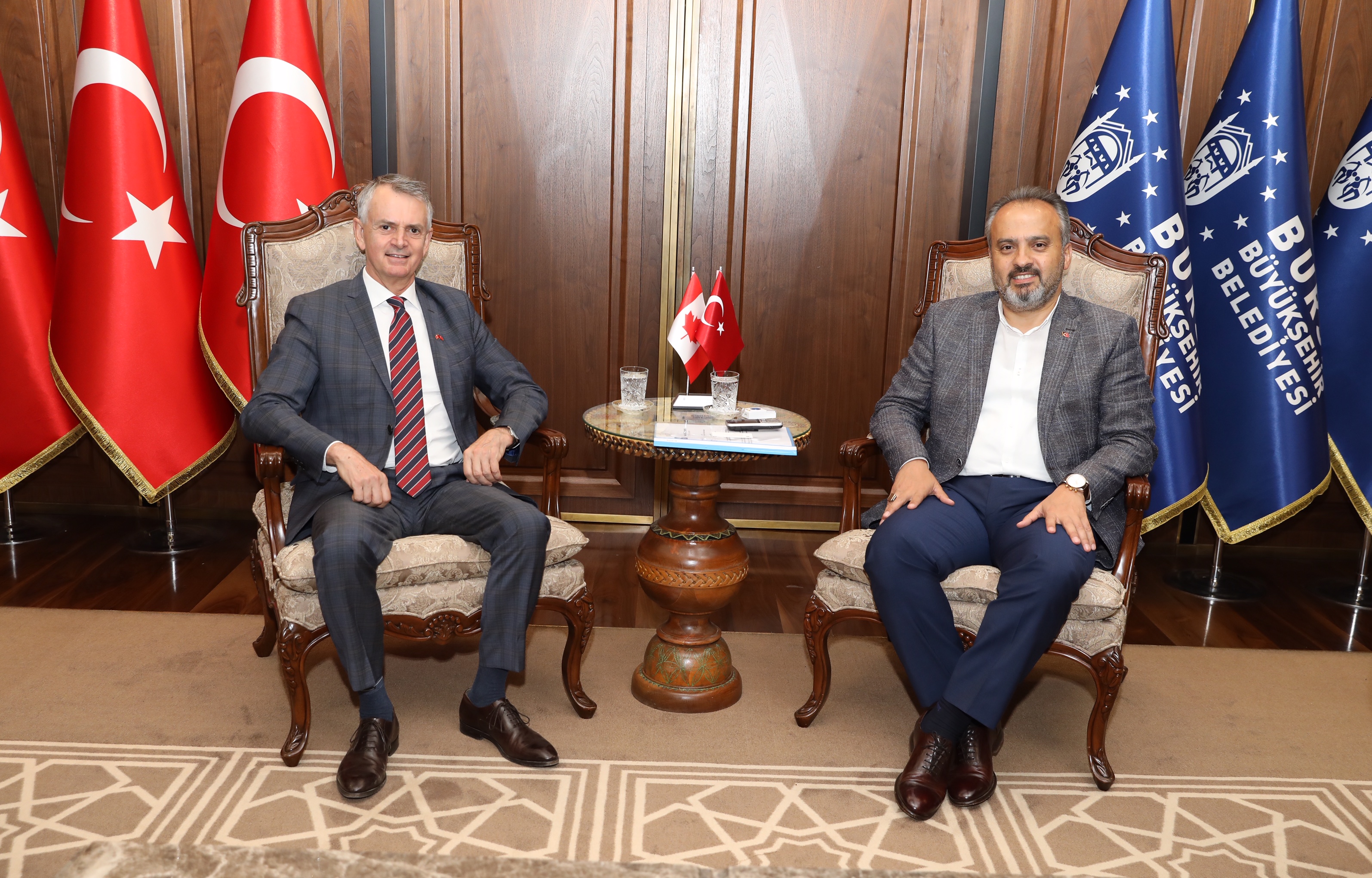 BURSA – Kanada Ankara Büyükelçisi Christopher Cooter, Bursa Büyükşehir Belediye Başkanı Alinur Aktaş’ı, ziyaret etti.