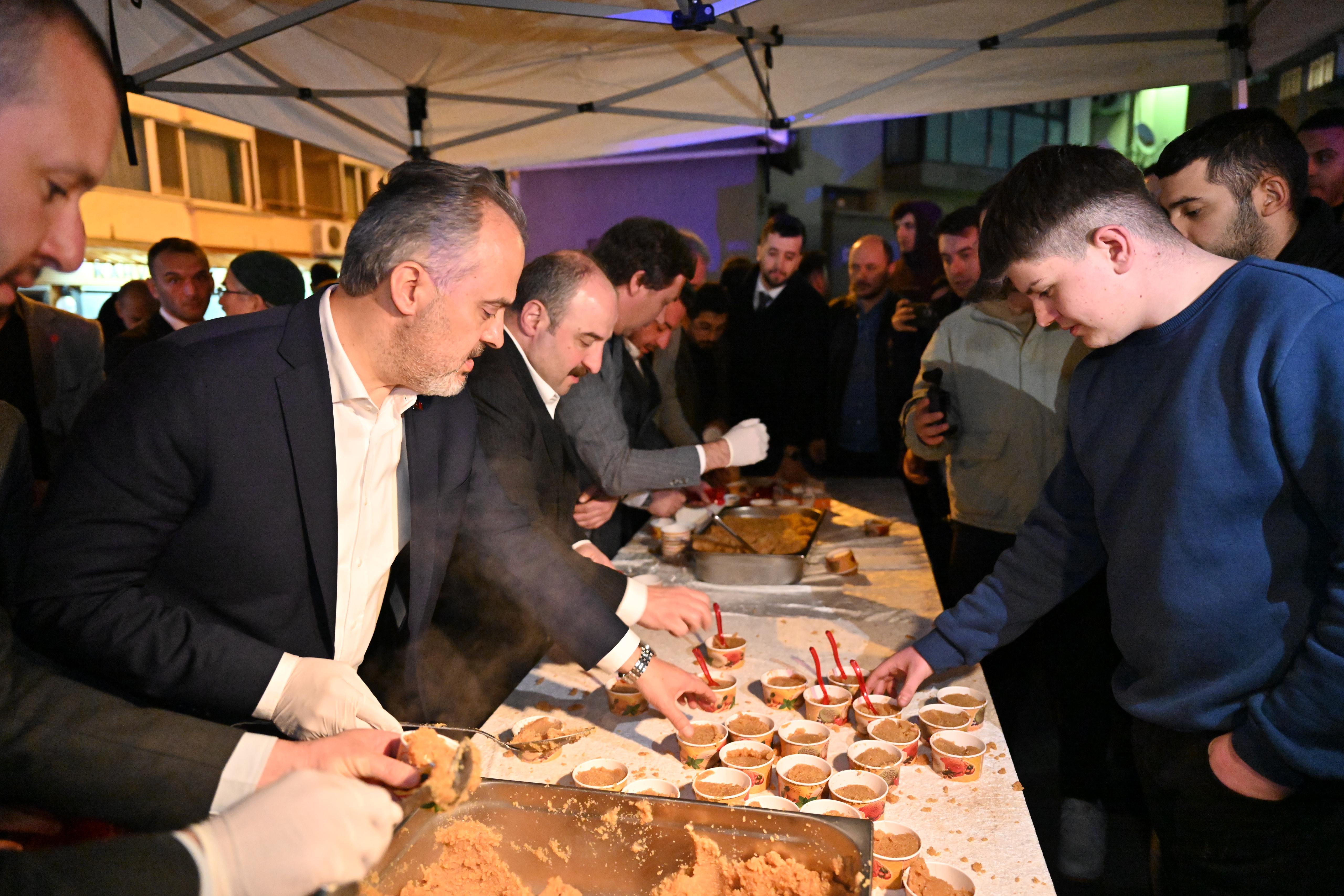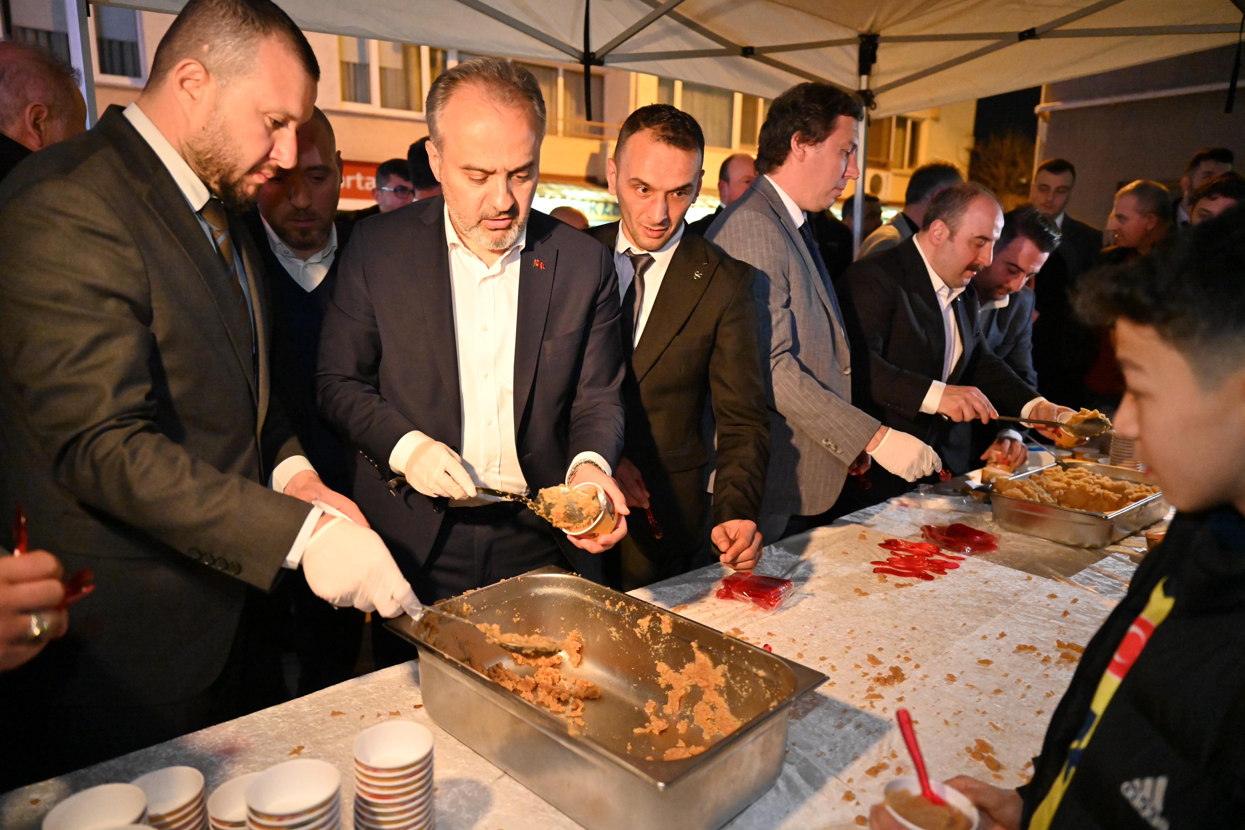 BURSA – Ramazan ayının habercisi olan Berat Kandilinde, Bursalılar camilerine akın etti. Bursa Büyükşehir Belediye Başkanı Alinur Aktaş da İnegöl’de Sani Konukoğlu Cami’nde bir araya geldiği vatandaşlara helva ikram etti.