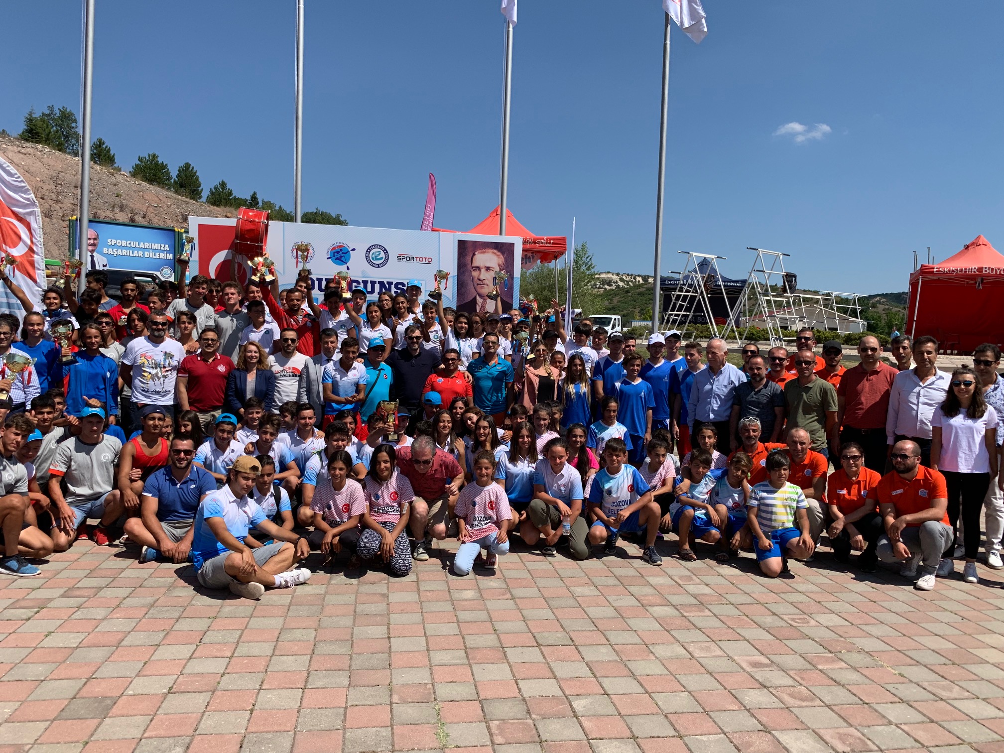 Ödül töreninde kupa ve madalyalar kazanmanın haklı gururunu yaşayan sporcular, ödül sevinçlerini antrenörleriyle paylaştı.