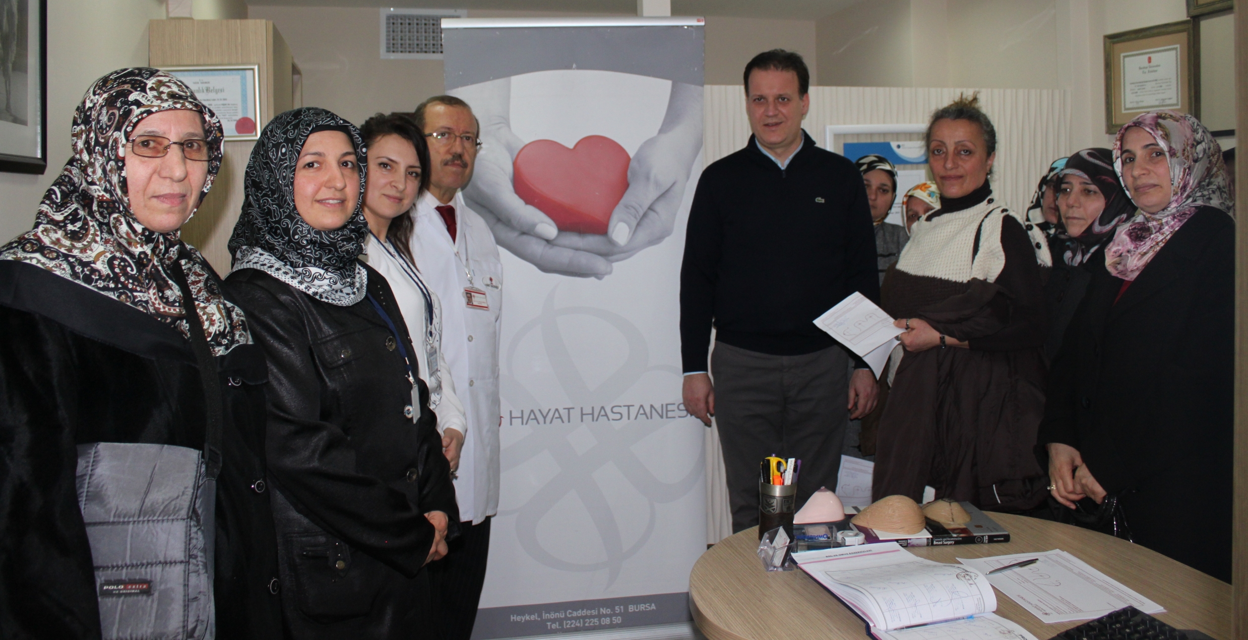 Hanımlar Lokali’ne devam eden kadınlar, sağlık seminerleriyle bilinçlendiriliyor. Hayat Hastanesi ile yapılan işbirliği sonucu kadınlar, hastanede mamografi muayenesine katıldı. Genel Cerrahi Uzmanı Op. Dr. Adil Aydemir’den sağlık durumlarıyla ilgili bilgiler alan kadınlar, meme kanseri konusunda da bilgilendirildi. Mamografinin önemine dikkat çeken Aydemir, 40 yaş üzeri kadınların yılda bir kez mamografi çektirmeleri gerektiğini vurguladı. 40 yaş altı kadınlarda da kanser riski bulunduğunu belirten Aydemir, alt yaş grubu için daha çok ultrason gibi metotları kullandıklarını ifade etti. “Kanser için erken teşhis önemlidir” diyen Dr. Aydemir, “Herkesin kendisiyle ilgili riskleri bilmesi gerekir. Bu faktörlerden hangilerini taşıdığını öğrenip bir doktorla buluşmakta fayda var. Erken teşhis için kadınlara kendi kendine meme muayenesini öneriyoruz. Bir de düzenli doktor muayenesi… Kadınlar 20-39 yaş arası 3 yılda bir, 40 yaş sonrası da her yıl doktor muayenesi olmalı. 40 yaşından sonra buna mamografi de ekleniyor. Erken teşhis olursa tedavi şansı artıyor. Biz toplumu erken teşhise odaklandırıp, bilinçlendirmeye çalışıyoruz. Memede farkındalık arttıkça kanser tedavisinde başarı artıyor” diye konuştu.