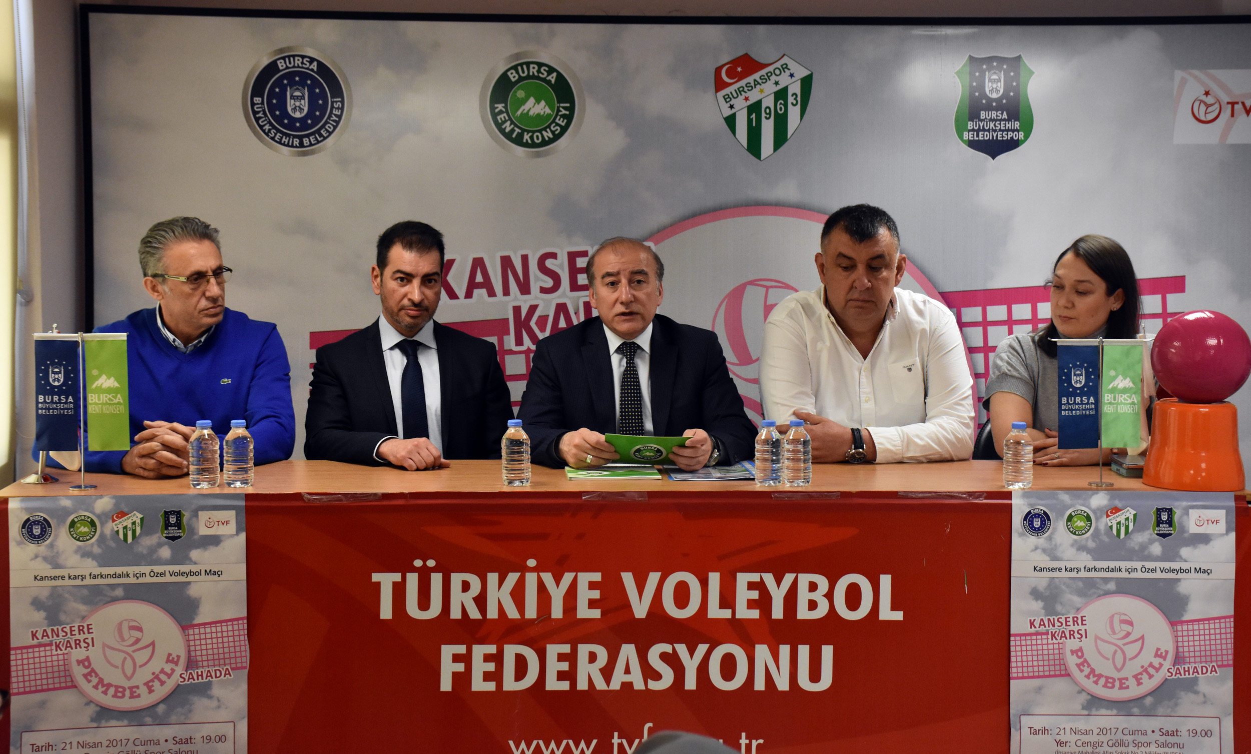 Bursa Kent Konseyi, Bursa Büyükşehir Belediyespor, Bursaspor ve Türkiye Voleybol Federasyonu ile ortaklaşa kansere karşı farkındalık yaratmak amacıyla ‘Pembe File’ adıyla organize ettiği özel voleybol maçının tanıtım toplantısı Cengiz Göllü Spor Salonu’nda düzenlendi. Spor kulüplerinin ve federasyon temsilcilerinin katıldığı toplantıda konuşan Bursa Kent Konseyi Başkanı Hasan Çepni, kansere dikkat çekmek adına Bursa Kent Konseyi bünyesinde faaliyetlerini sürdüren Sağlık Çalışma Grubunun organizasyonu ile Bursa Büyükşehir Belediyespor ve Bursasporlu bayan voleybolcuların 21 Nisan Cuma Günü saat 19.00’da Cengiz Göllü Voleybol Salonu’nda özel voleybol maçı yapacağını söyledi.