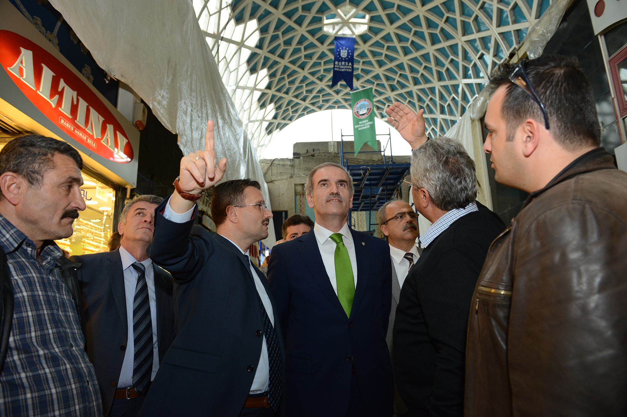 Büyükşehir Belediye Başkanı Recep Altepe, beraberindeki Genel Sekreter Yardımcısı Bayram Vardar ile birlikte devam eden çalışmaları yerinde inceledi. Yüklenici firmanın temsilcilerinden çalışmalar hakkında bilgi alan Başkan Altepe, tonoz çatı montajının tamamlandığını belirterek, cephe düzenleme çalışmalarını da en kısa zamanda tamamlamayı amaçladıklarını söyledi. Tarihi Çarşı ve Hanlar Bölgesi’nde ilk başlatmayı hedefledikleri çalışmanın Kapalı Çarşı olduğunu ancak bu çalışmanın sona kaldığını belirten Başkan Altepe, çalışmaların büyük bir hızla devam ettiğini vurguladı. Kapalı çarşı için özel bir proje hazırlandığını ve eski çatının tamamen sökülerek yerine bölgenin tarihi dokusuna uygun tonoz çatı uygulaması yapıldığını kaydeden Başkan Altepe, “Şimdi de cephe kaplama çalışmaları başladı. Traverten taş uygulaması ile çarşımız özgün bir kimliğe kavuşmuş olacak. Daha sonra yapılacak zemin düzenleme çalışmalarıyla çarşımız çağdaş görüntüsünün yanında Türk İslam kültürünün izlerini taşıyan ayrıcalıklı bir mekan haline gelecek” dedi.