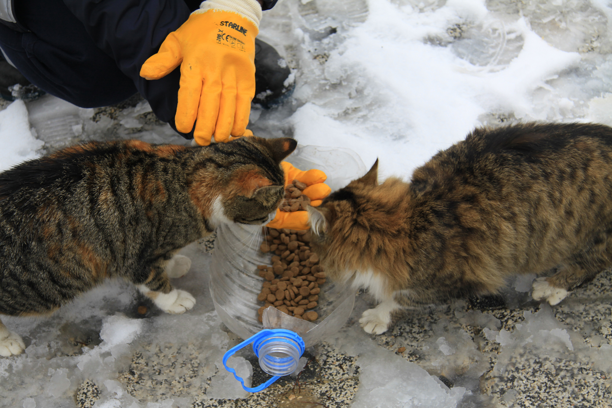 Bursa Büyükşehir Belediyesi Sağlık İşleri Dairesi Başkanlığı’na bağlı Veteriner Hizmetleri Şube Müdürlüğü ekipleri, yıl boyu aralıksız süren sahipsiz sokak hayvanlarına yönelik besleme faaliyetlerini kışın bastırmasıyla birlikte daha geniş bir alanda sürdürüyor. Özellikle soğuk havaların etkisini gösterdiği kış günlerinde barınma ve besin maddesi ihtiyacı, sokak hayvanları için hayati önem arz ederken, şehrin muhtelif yerlerinde bulunan kedi, köpek, kuş gibi evcil hayvanların yanı sıra doğada yaşayan vahşi hayvanların da yiyecek ihtiyacı Büyükşehir Belediyesi tarafından karşılanıyor. Soğuk hava ve kar yağışından dolayı yiyecek bulmakta zorlanan sokak hayvanları ve kuşlar için tonlarca mama ve buğday belirli bölgelere bırakılıyor.
