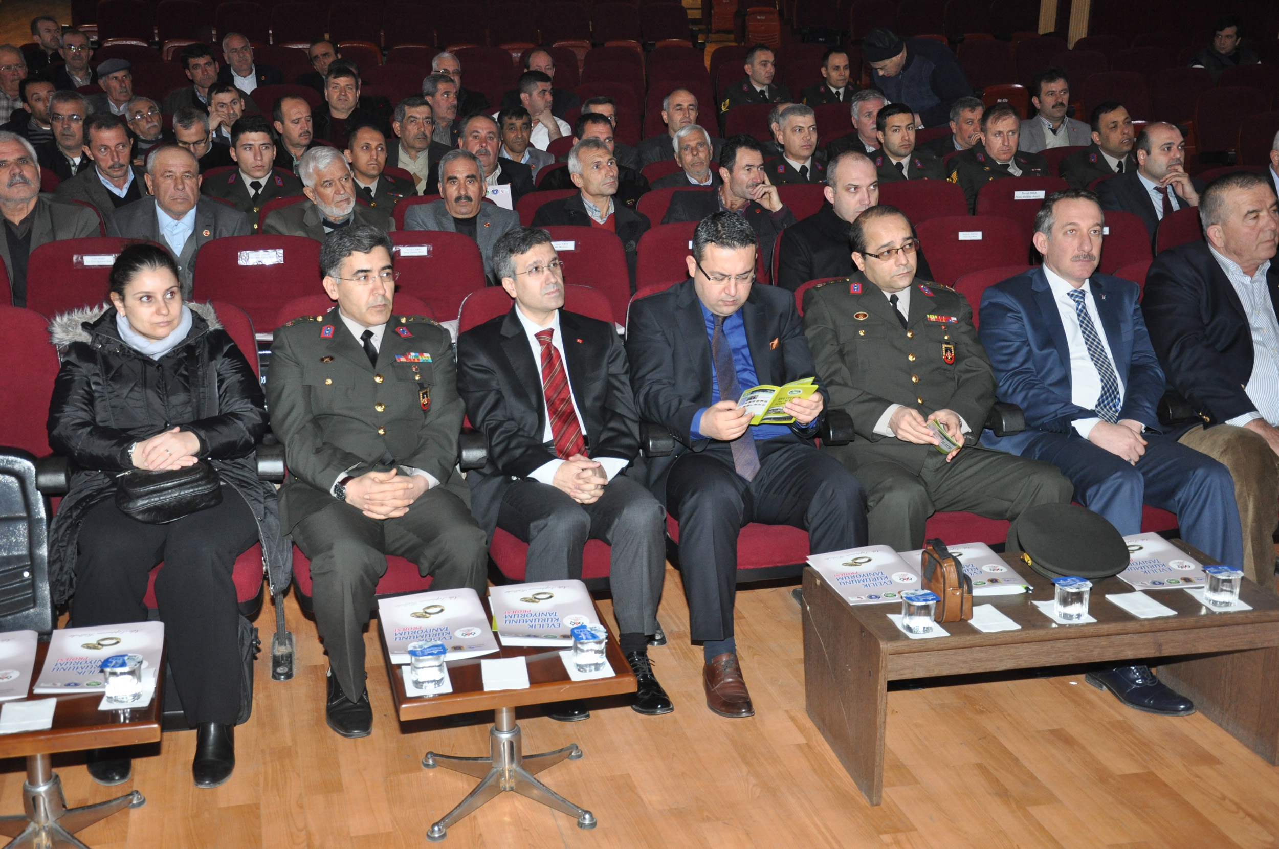 Karacabey İlçe Jandarma Komutanı Jandarma Kıdemli Yüzbaşı Erdal Özköroğlu, projenin İl Jandarma Komutanlığı ile Bursa Kent Konseyi’nin ilk ortak çalışması ve muhtarlara yönelik olması sebebiyle önem taşıdığını söyledi. Özköroğlu, projenin hayata geçirilmesinde emeği geçen tüm kurumlara teşekkür etti. Kadına yönelik şiddetin kadının maddi ve manevi varlığına büyük hasar verdiğini ve anayasal bir suç olduğunu anlatan Özköroğlu, kadına yönelik şiddetin kabul edilemeyeceğini ve sadece kadınların sıkıntısı olarak görülemeyeceğini dile getirdi.