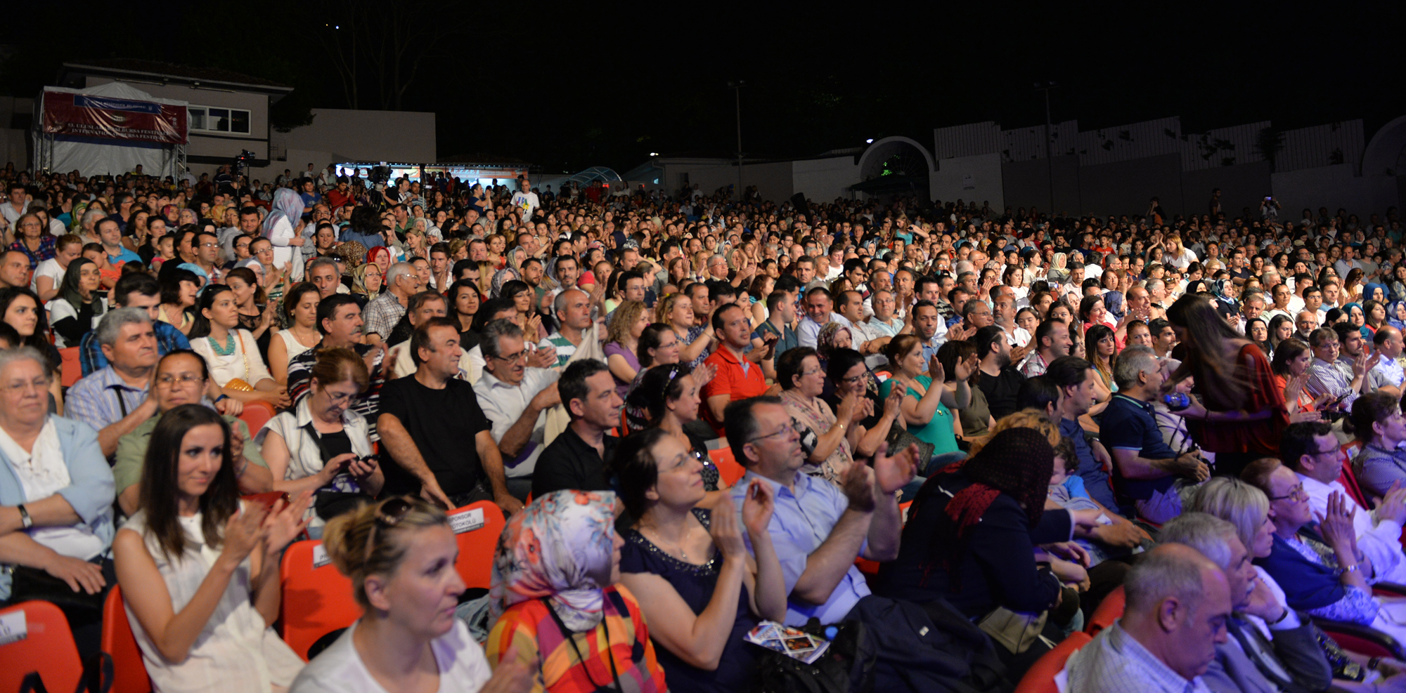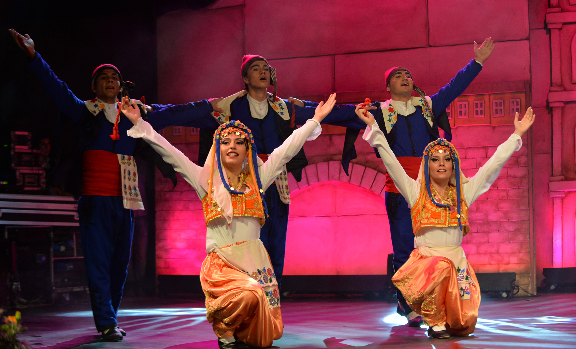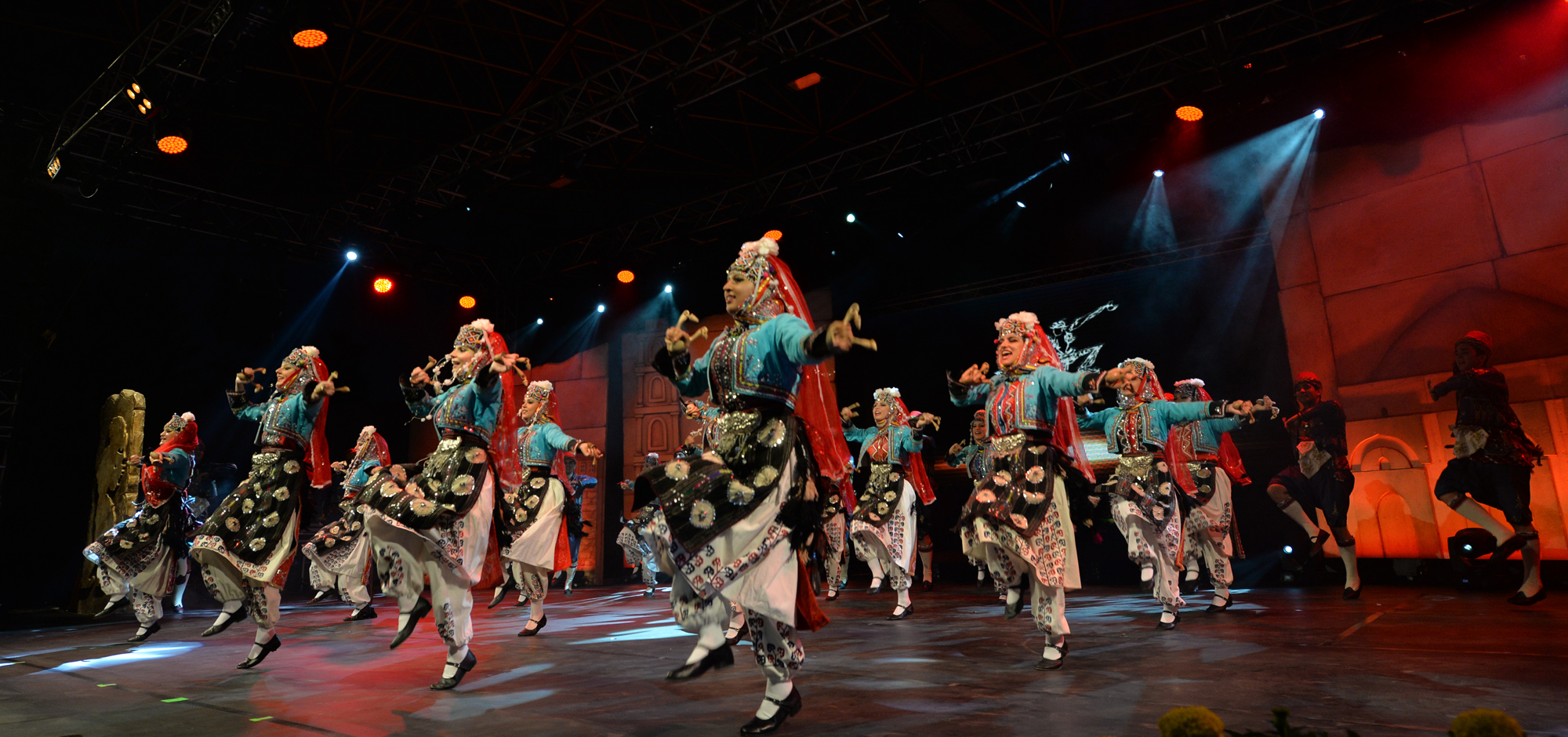 ‘Aşkına Derviş’ adlı özel bir gösteriyle başlayan programda, oyuncular Sercan Çelik ve Gülçin Canet Bakal, Cihan Yurtçu’nun müziği ve Hakkıcan Bakal’ın imzasını attığı video eşliğinde anlamlı bir gösteri sahnelediler. Açılışın ardından sahneye çıkan Karagöz Halk Dansları Topluluğu, Bursa, Fethiye, Artvin, Tekirdağ, Bodrum, Tokat, Mardin, Trabzon, Ağrı ve Silifke yörelerinden halk danslarını sergilediler. Potpori, Kızlar Zeybeği – Türkü ve Roman gösterilerinin de beğeniye sunulduğu programda, Karagöz Halk Dansları Topluluğu’nun minik ve yıldız grupları ile üst grup ve master grubu da sahneye çıktı. Kenan Çelik’in yönetmenliğinde çalışmalarını aralıksız sürdüren Karagöz Halk Dansları Topluluğu, Gökhan Kılıç ve Selin Kılıç’ın eğitmenliğinde sahneledikleri gösterilerle Bursalılardan bol bol alkış aldı. Yaklaşık 300 dansçının sahneye çıktığı programda, Büyükşehir Belediyesi Turizm Şube Müdürlüğü Türk Halk Müziği Bölümü sanatçıları da sanatseverlerden tam not aldı. Usta sanatçı Kemal Kamalı’nın yönetmeliğinde; Emel Örgün ve Bahtiyar Özdemir’in solist olarak sahneye çıktığı geceye, saz sanatçıları Anıl Saper bağlama, Nida Okşaşa bas bağlama, Kenan Şimşek kaval ve mey ve Kemal Beygirci de bendiriyle renk kattı.