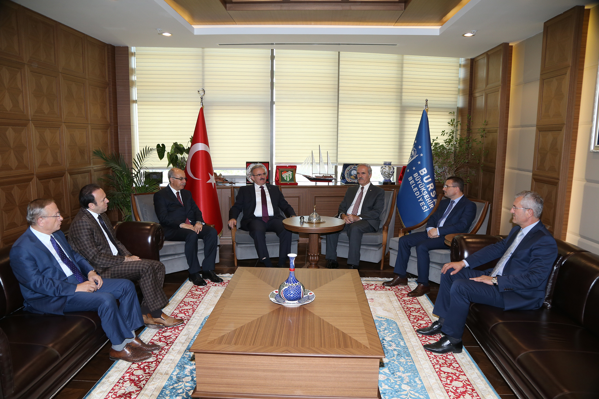 BURSA – Bursa’dan Antalya’ya tayin olan Vali Münir Karaloğlu, Büyükşehir Belediye Başkanı Recep Altepe’ye veda ziyaretinde bulundu. Karaloğlu, Bursa’da önemli çalışmalar yaptıklarını ve güzel dostluklar kurduklarını söylediği Başkan Altepe’yi Antalya’ya davet etti.