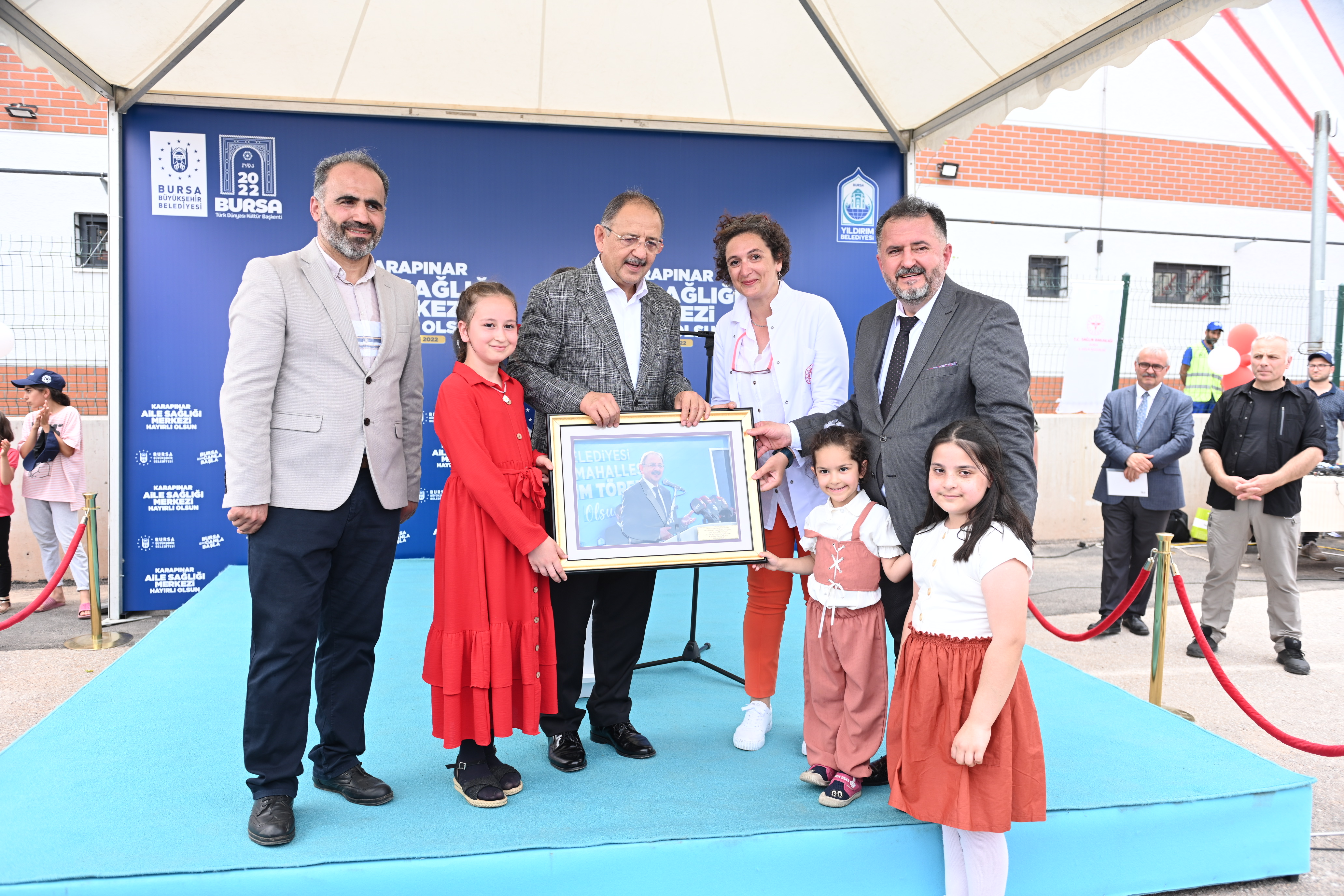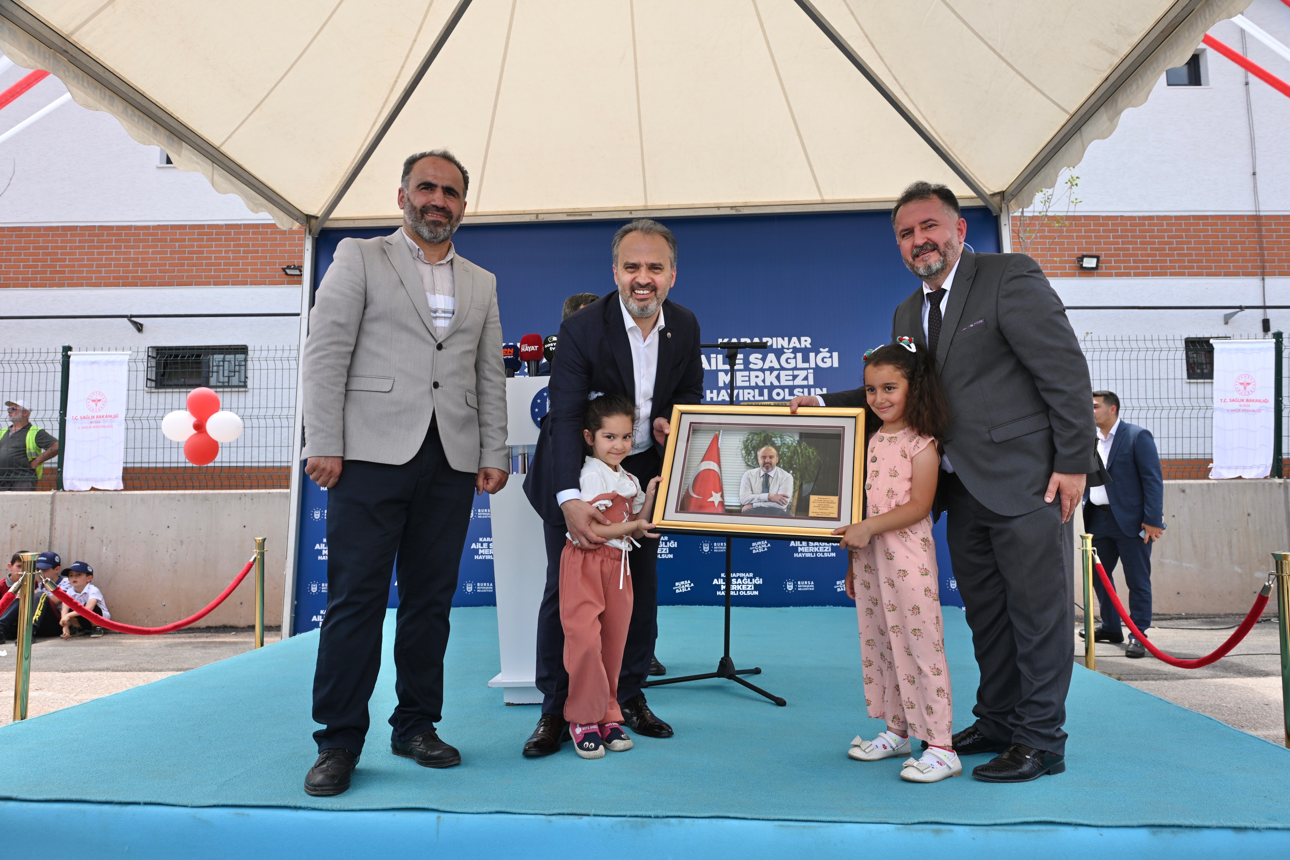 Konuşmaların ardından Karapınar Mahallesi Muhtarı Mehmet Çakır, mahalleye bu sağlık merkezini kazandıran Büyükşehir Belediye Başkanı Aktaş, Yıldırım Belediye Başkanı Yılmaz ve AK Parti Genel Başkan Yardımcısı Özhaseki’ye teşekkür plaketi verdi.