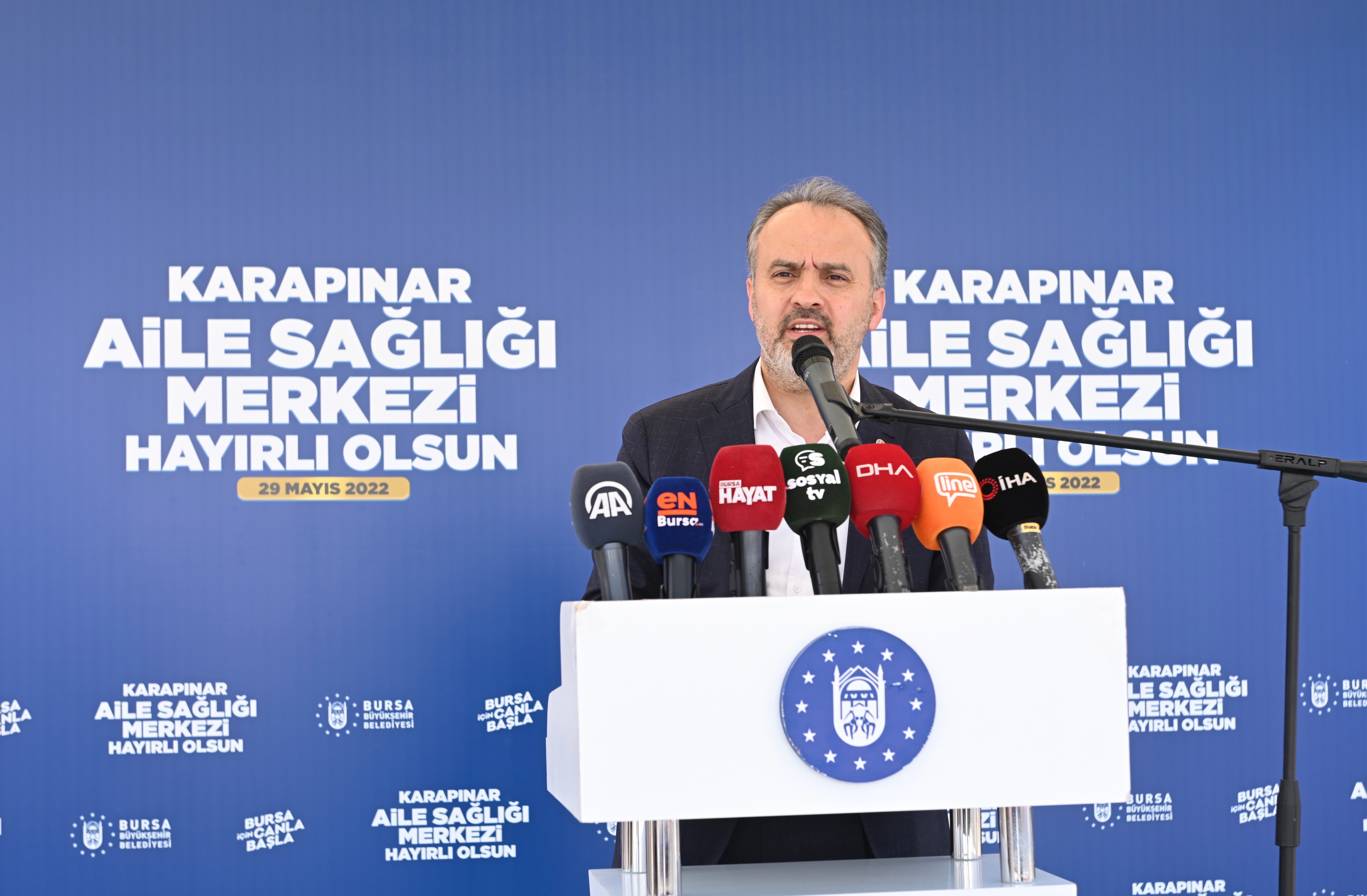 Törende konuşan Bursa Büyükşehir Belediye Başkanı Alinur Aktaş, Karapınar’da Kasım 2020’de yapılan tapu dağıtım törenine katılan Genel Başkan Yardımcısı Mehmet Özhaseki’nin, bölge halkının sağlığı ocağı talebini kendisine ilettiğini hatırlatarak, kısa sürede verilen bu sözü tutmanın mutluluğunu yaşadıklarını söyledi. Yer sorununun Yıldırım Belediyesi tarafından çözüldüğünü hatırlatan Başkan Aktaş, “Açılışı da iki yıl önce bize bu görevi veren Genel Başkan Yardımcımızla birlikte yapmanın mutluluğunu yaşıyoruz. Gerçekten bütün dünyanın başta Amerika ve Almanya gibi gelişmiş ülkeler olmak üzere aklının havsalasının durduğu bir süreçte sağlığın ne kadar önemli ve kıymetli olduğuna hep beraber şahit olduk. Allah'a hamdolsun Sayın Cumhurbaşkanımızın vizyonuyla bundan 20 yıl önce birileri hastanelerde rehin kalırken, birileri “sen SKK’lısın şuraya git, sen BAĞ-KUR’lusun buraya git” derken, bugün gerçekten olmaz denilen işler başarıldı. Cumhurbaşkanımızın, sağlık bakanlarımızın, hükümetimizin vizyonuyla gerçekten olmaz denilen işler başarıldı. Ama asıl bir konumuz daha var ki yine bu bölgede alternatif bir çevre yolu olması kabilinden çok önemli bir çalışma. İhalesi de gerçekleşti. Şundan emin olabilirsiniz bölgenin yıllardır makus talihini değiştirmek adına gerçekten çok yoğun bir gayret içerisindeyiz” dedi.