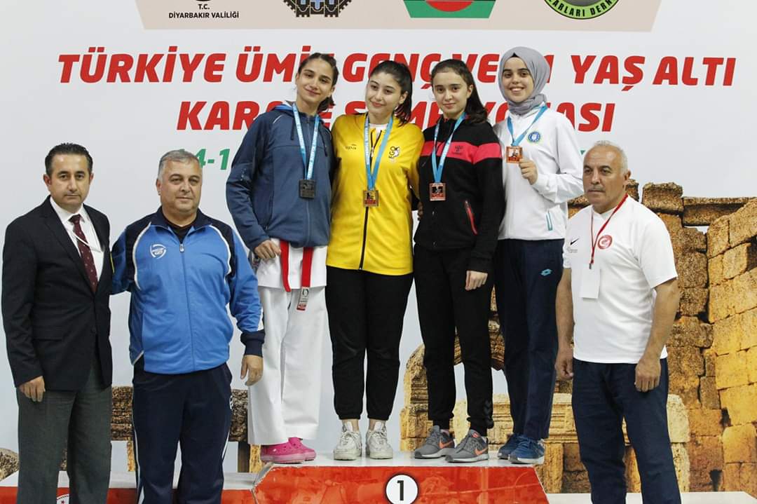 Türkiye Karate Federasyonu’nun 2019 faaliyet takviminde yer alan Ümit, Genç ve 21 Yaş Altı Türkiye Karate Şampiyonası Diyarbakır’da tamamlandı. 54 farklı ilden 1275 sporcunun katıldığı organizasyon Seyrantepe Spor Salonu’nda yapıldı. Kıran kırana maçlara sahne olan turnuvada Bursa Büyükşehir Belediyespor Kulübü sporcularından Umut Eren Gündoğ, Ümit Erkek +70 Kg’da ikincilik, Aleyna Sanal, Ümit Bayan 47 Kg’da üçüncülük, Elif Güneş, Ümit Bayan +54 Kg’da üçüncülük madalyasının sahibi oldu.