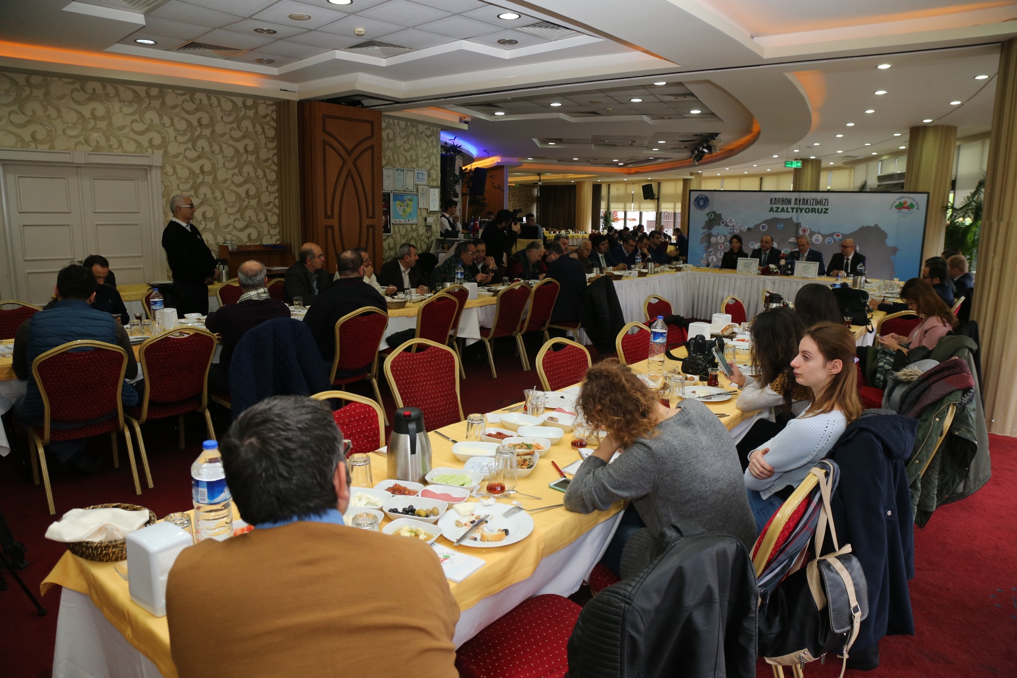 SKB Danışma Kurulu Üyesi Prof.Dr. Cengiz Türe de toplantıda, ‘Karbon ayak izimizi azaltıyoruz’ başlıklı bir sunum gerçekleştirdi. Birleşmiş Milletler (BM) verilerine göre; dünyadaki enerji tüketiminin yaklaşık Yüzde 75´i, küresel sera gazı salımlarının da Yüzde 80´inden kentlerin sorumlu olduğunu söyleyen Prof.Dr. Türe, “Küresel ısınma ve iklim değişikliği etkilerinin kabul edilebilir sınırlar içinde kalması için tüm ülkeler ile kentlerin mevcut salım oranlarını belirlemeleri ve azaltım yönünde gerekli sürdürülebilir enerji tüketimini sağlamaya yönelik tedbirleri almaları zorunludur” şeklinde konuştu. Prof.Dr. Cengiz Türe, “Karbon ayak izi bilim kurgu değildir. Bilimsel bir gerçektir. Tedbir almadığımız takdirde üzülerek söylüyorum ki bunun sonuçlarını göreceğiz” ifadelerini kullandı.