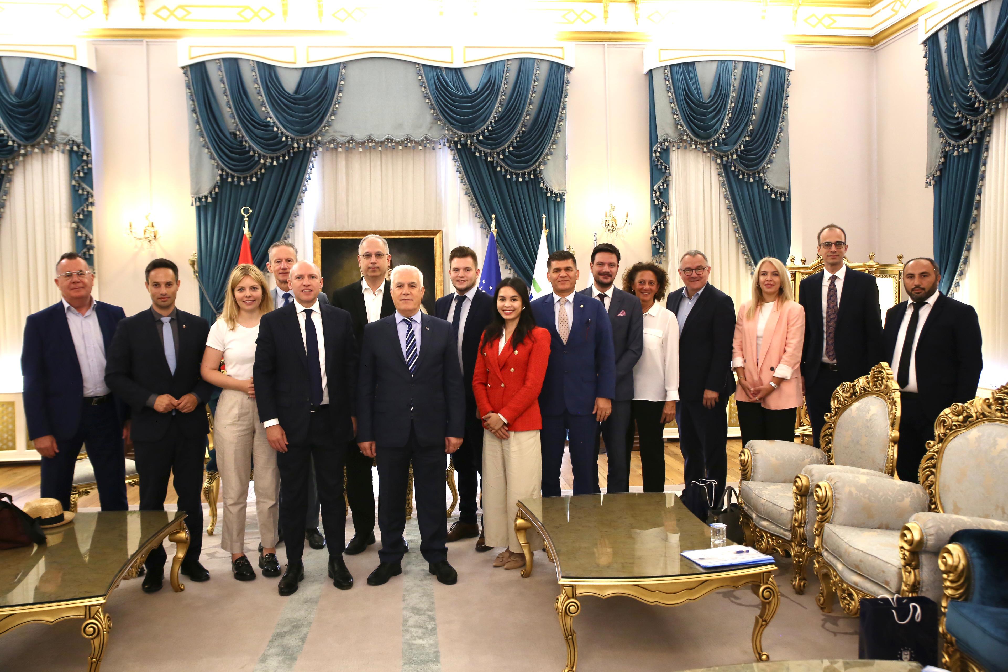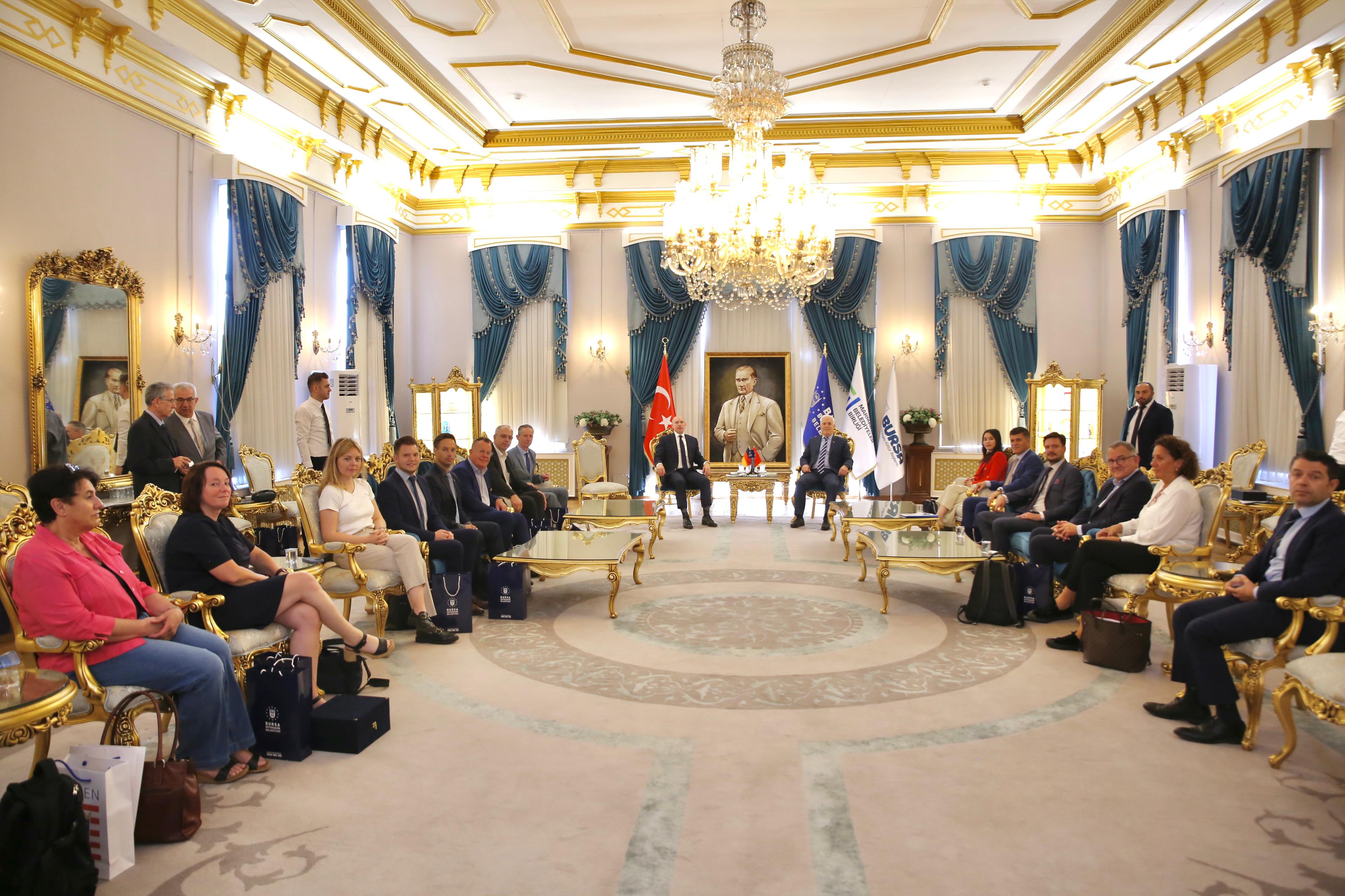 Bursa Büyükşehir Belediyesi ile kardeş şehir olan Almanya’nın Hessen kentinden gelen Hessen Eyaleti Devlet Bakanı Manfred Pentz ve beraberindeki delegasyon, Heykel’deki Tarihi Belediye Binası’nda Büyükşehir Belediye Başkanı Mustafa Bozbey’i ziyaret etti. Büyükşehir Belediyesi Genel Sekreteri Doç. Dr. Ergül Halisçelik’in yer aldığı ziyarette, iki ülke ile Bursa ve Hessen arasındaki ilişkiler ele alındı.