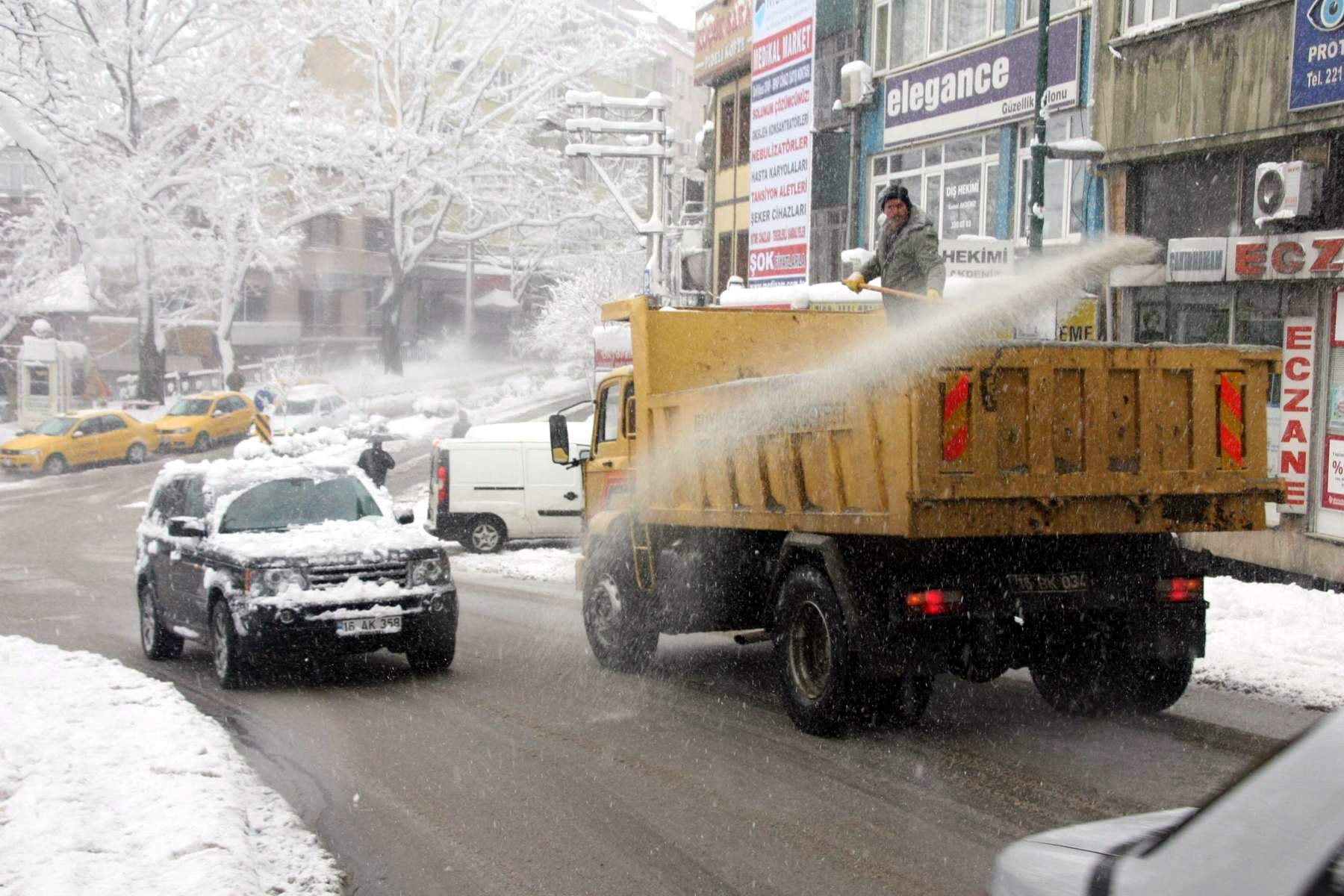 Özellikle gece, hava sıcaklığının sıfır derecenin altına düşmesiyle buzlanma olabileceği ihtimali üzerine karla mücadele çalışmaları 24 saat kesintisiz olarak 3 vardiya halinde yürütülüyor. Toplam 180 personelin görev aldığı çalışmalarda grayder, loder, kepçe, kamyon ve ünimoglardan oluşan geniş bir makine parkı karla mücadele çalışmalarında kullanılıyor. Zamanında başlayan karla mücadele çalışmaları sayesinde gerek kent merkezi gerekse yüksek kesimlerde trafik akışında hiçbir sorun yaşanmazken, fen işleri şantiye sahasında 6 bin ton tuz stoku bulunduğu belirtildi.