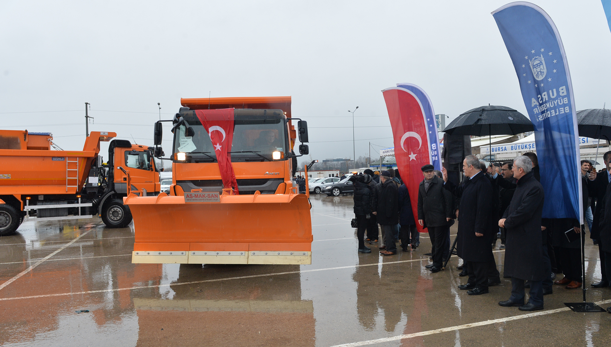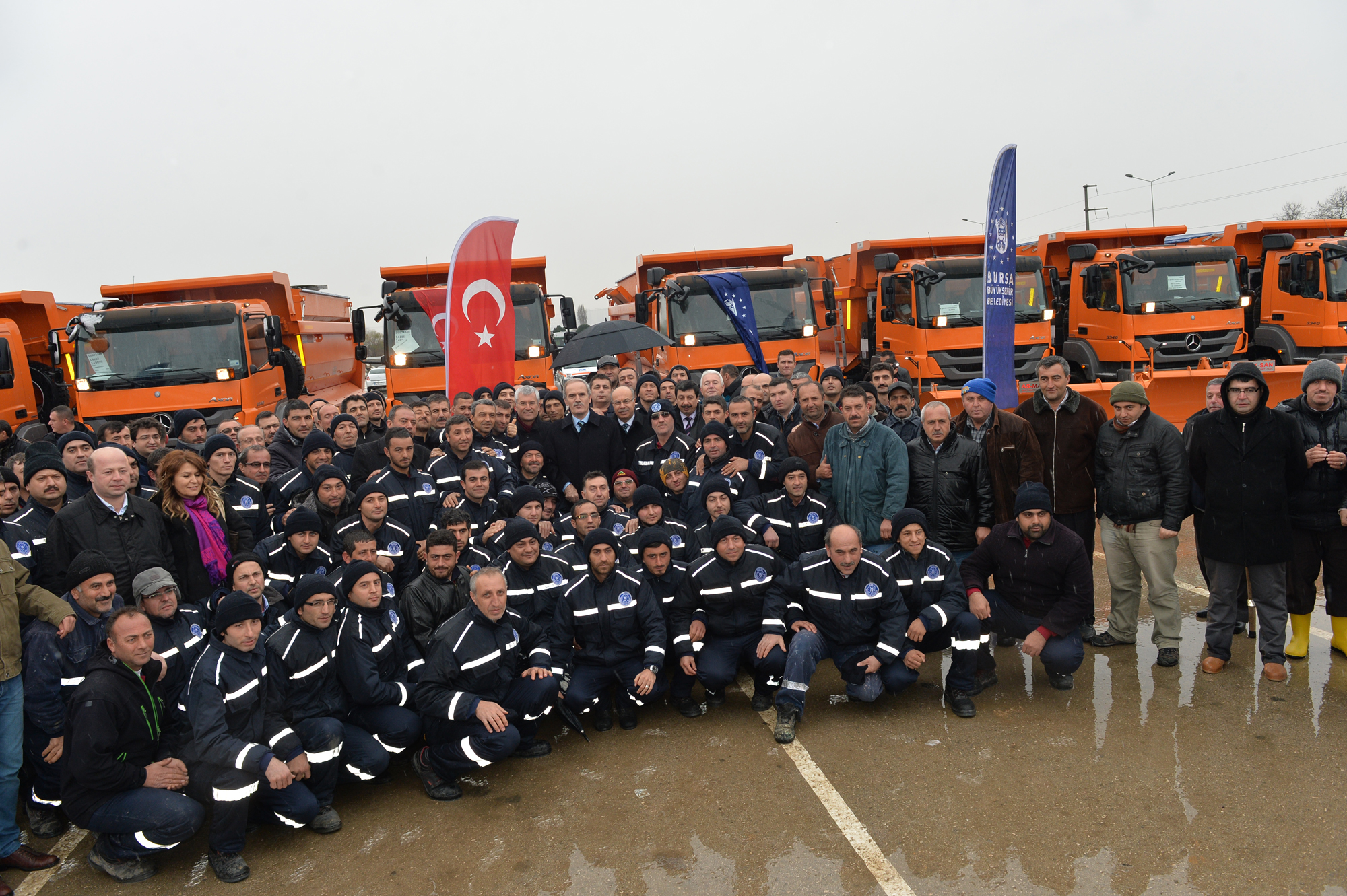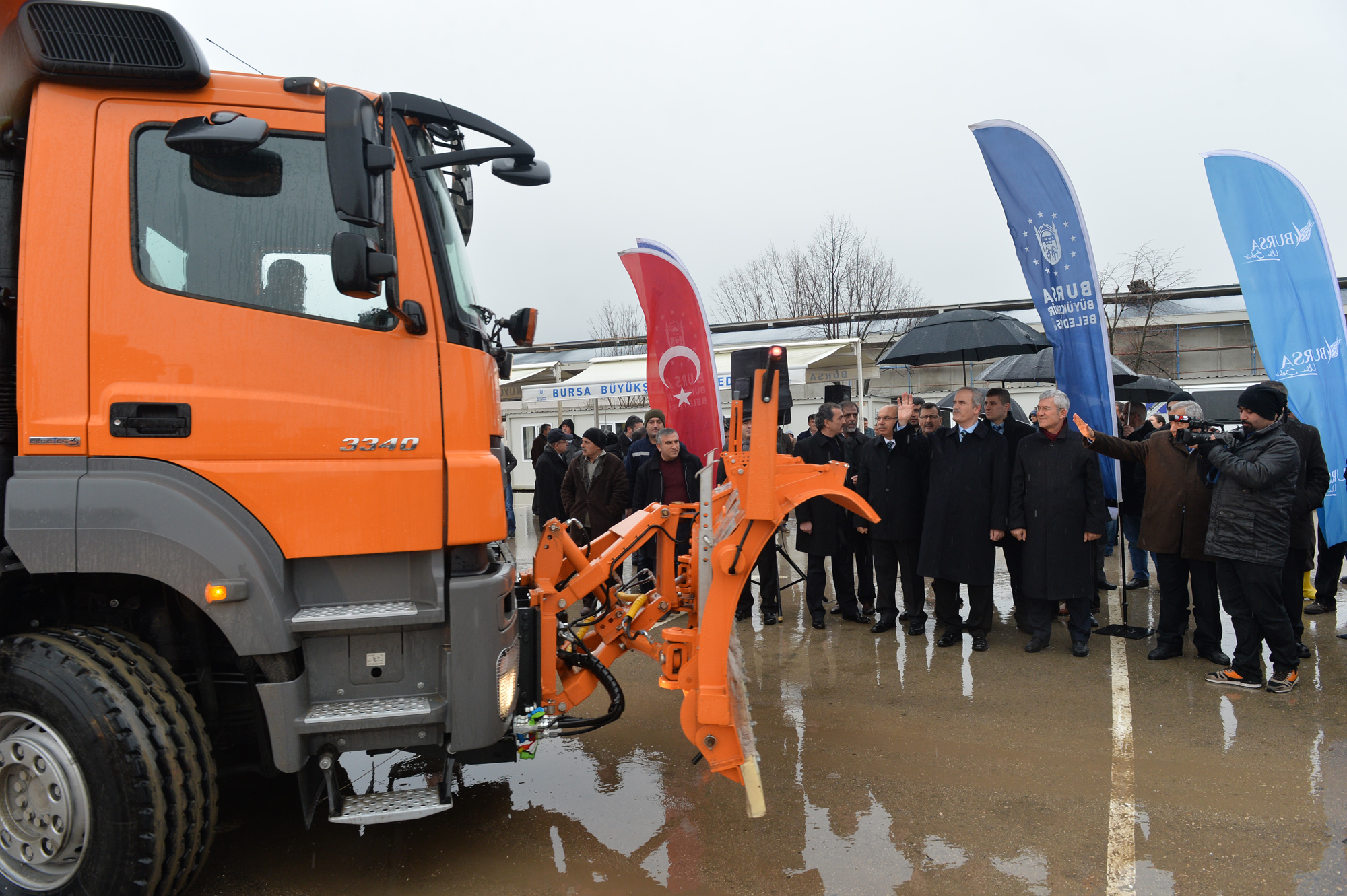 - BURSA BÜYÜKŞEHİR BELEDİYESİ, ÖNCEKİ YILLARDAN FARKLI OLARAK BU YIL 17 İLÇE VE KÖYLERİ DE KAPSAYACAK ŞEKİLDE GENİŞLETİLEN KARLA MÜCADELE ÇALIŞMALARI KAPSAMINDA HEM ARAÇ FİLOSUNU GÜÇLENDİRDİ HEM DE PERSONEL SAYISINI ARTIRDI.