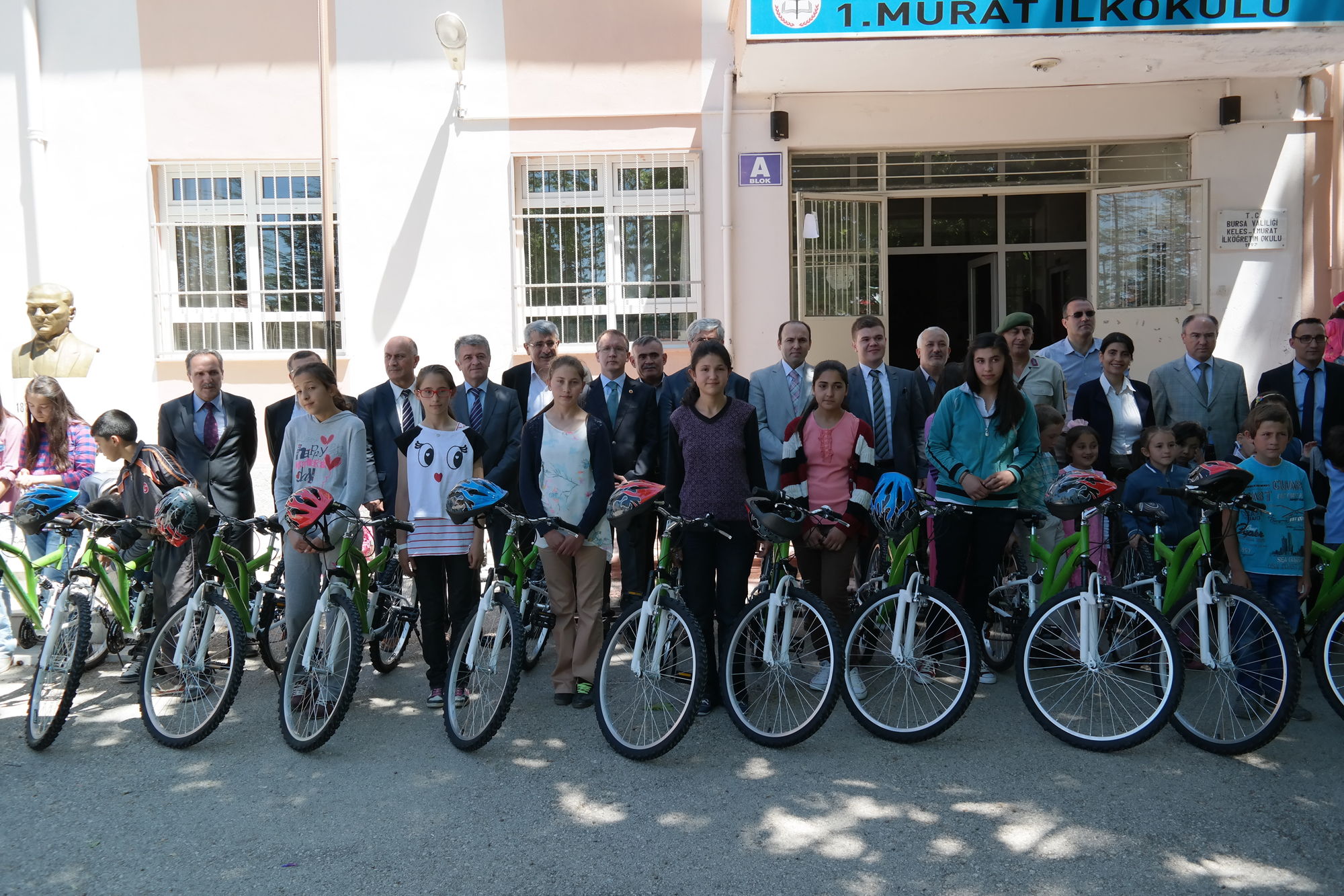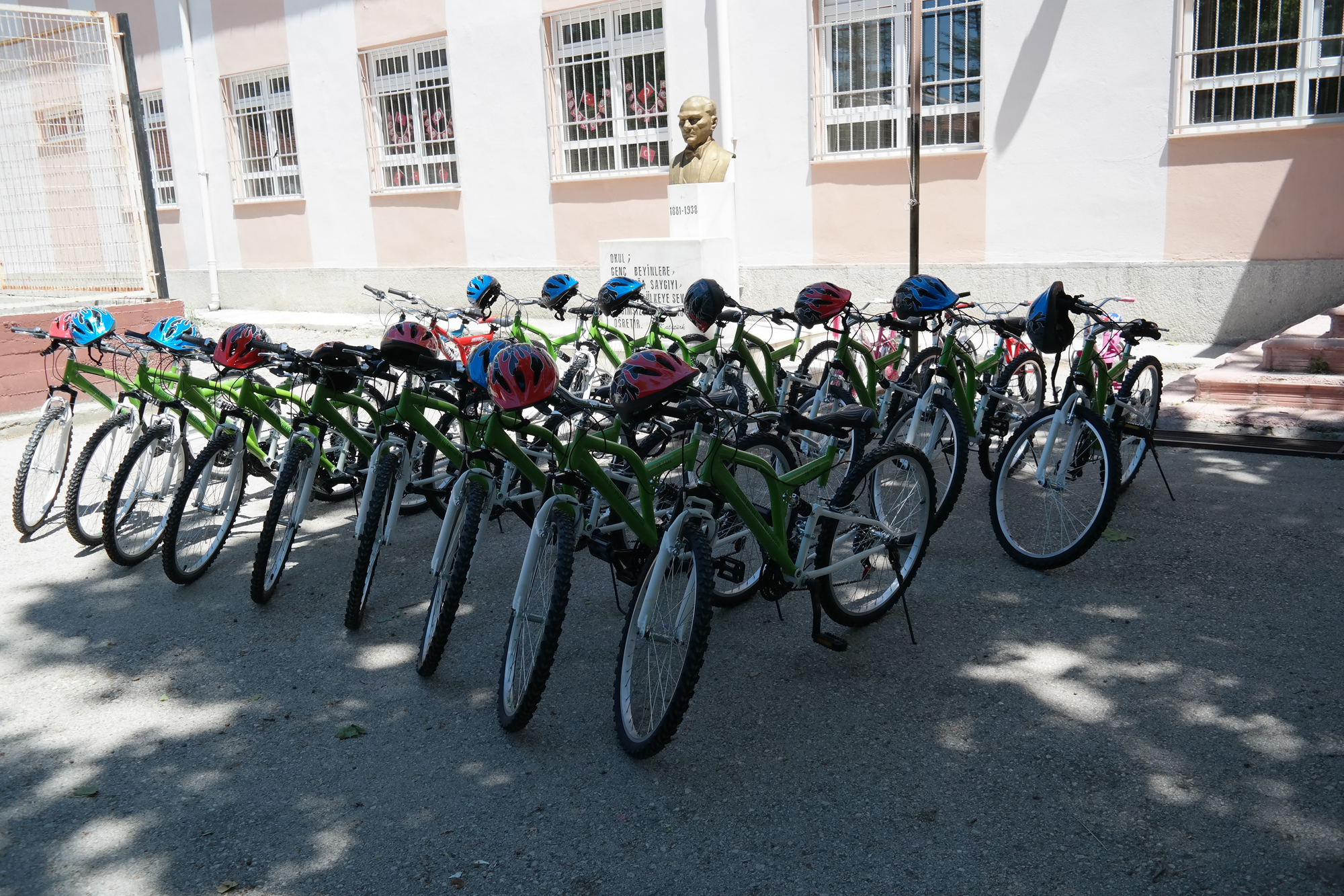 Daha sonra 20 başarılı öğrenci bisiklet ve kaskla ödüllendirildi.