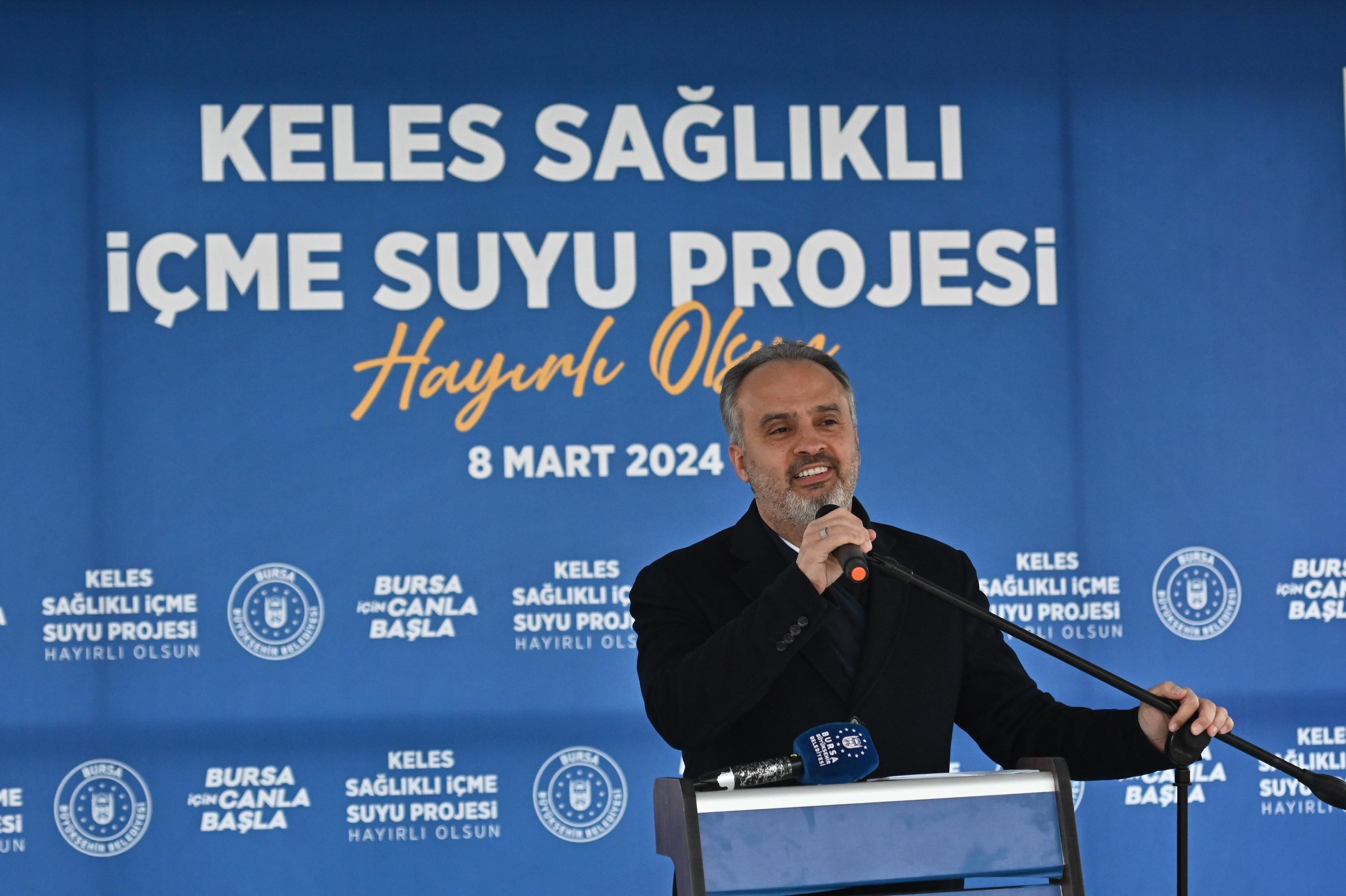 Keles’te görev süresi boyunca 166 kilometre içme suyu hattı, 23 kilometre kanalizasyon hattı, 5 kilometre yağmur suyu hattı, 4 adet paket atık su arıtma tesisi, 1 adet paket içme suyu arıtma tesisi, 4 adet sulama tesisi, 5 adet foseptik, 18 adet su deposu, 7 kilometre dere temizliği yapıldığını anlatan Başkan Aktaş, “Kozağacı bölgesinde yıllardır içme suyu sıkıntısı yaşayan ve yaz aylarında tankerle su taşıdığımız 8 mahallemiz, BUSKİ’mizin çalışmaları neticesinde sağlıklı ve kesintisiz içme suyuna kavuştu. Yapılan hizmet anaların ak sütü gibi helal olsun. Sizin paranızı size harcadık. Geçen sene Ağustos ayının ortasında başladığımız Keles Atık Su Arıtma Tesisi inşaatımız da hızla sürüyor. Menteşe Sulama Göleti ikmal inşaatımızı da yeni ihale yaparak tekrar başlattık. Projelerimizin hayırlı olmasını diliyorum” dedi.