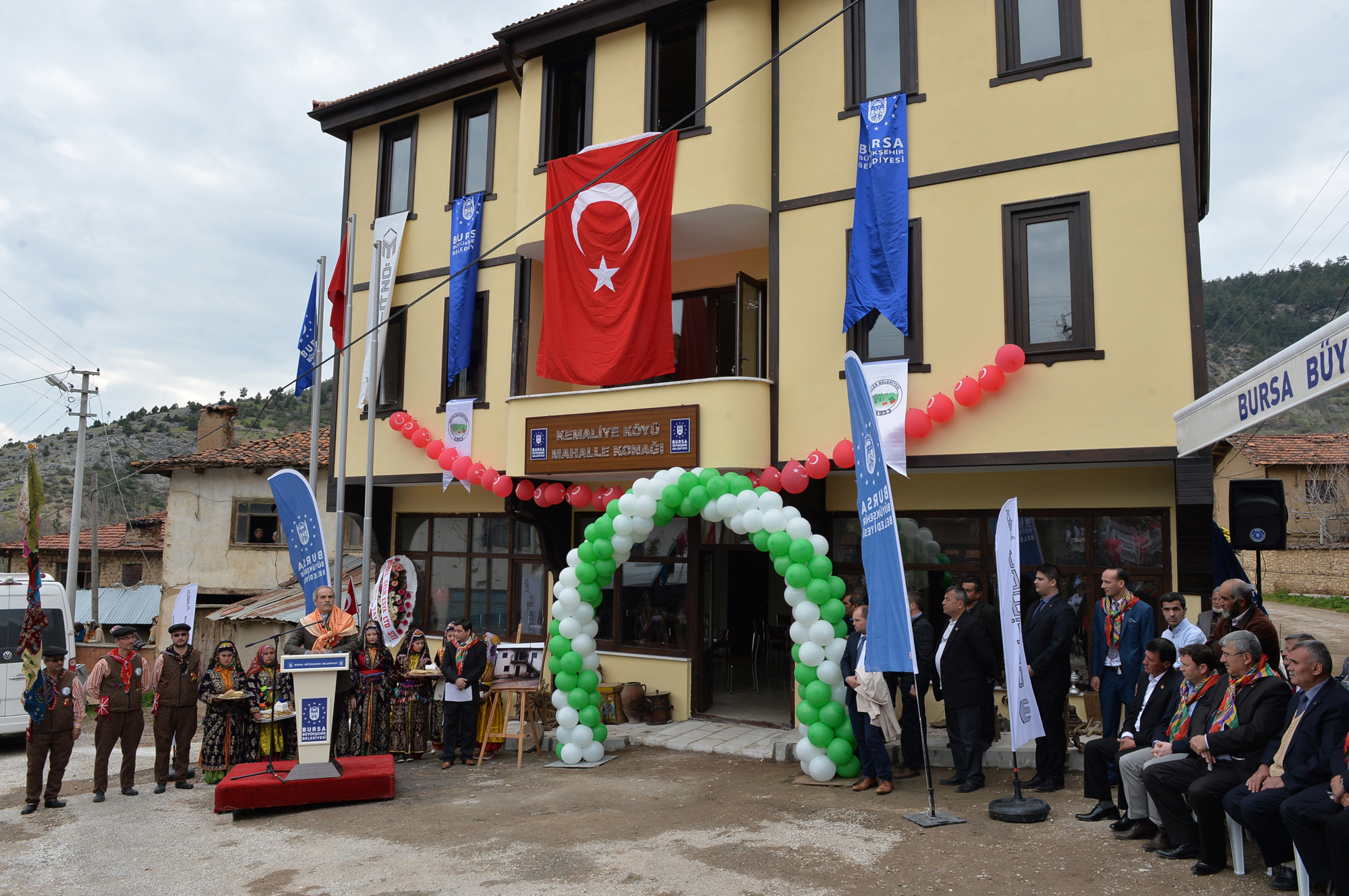 Büyükşehir yasası gündemde bile yokken, Keles Süt Ürünleri Tesisi başta olmak üzere köylere sosyal donatı alanları kazandırılmasına kadar her alanda bir çok projeyi hayata geçiren Büyükşehir Belediyesi, artık Büyükşehir’in mahallesi haline gelen tüm kırsal bölgelerdeki yatırımlara hız verdi. Tarımsal kalkınmanın sağlanması hedefiyle arıcılara kovan ve kovan altlığı, besicilere koyun, yem ve buzağı kulübesi, seracılara sera naylonu desteği sağlayan Büyükşehir Belediyesi, diğer taraftan dağ ilçelerini sosyal donatı alanlarıyla buluşturmaya devam ediyoruz. Keles’in Kemaliye Mahallesi’nde bulunan ve bakımsızlık yüzünden çökme riski bulunan mahalle konağı da sil baştan yenilendi. Eski bina yıkılırken, yerine orijinal mimarisiyle yeni bir bina yapıldı. Köy kahvesi, misafirhane, mahalle muhtarlığı, doktor odası, dernek odası, kurs merkezi ve bir de çok amaçlı salona bünyesinde barındıran mahalle konağı Büyükşehir Belediye Başkanı Recep Altepe, Keles Belediye Başkanı Mehmet Teke, Keles Kaymakamı Mustafa Türkcan ve çok sayıda davetlinin katıldığı törenle hizmete açıldı.