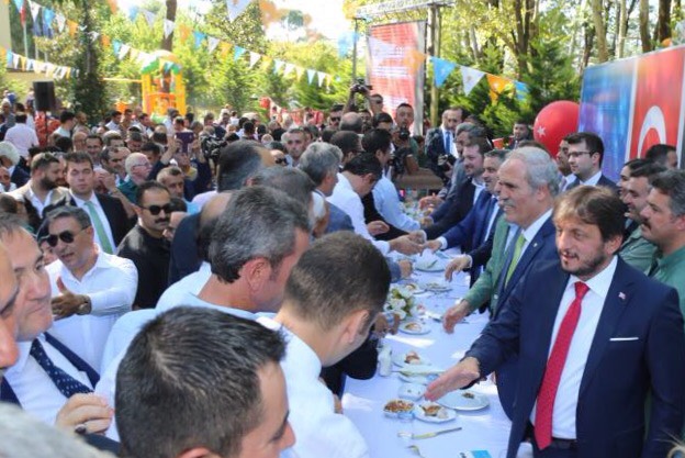 AK Parti Bursa İl Başkanlığı’nın bayramlaşma töreni, Merinos Parkı’nda açık alanda yapıldı. Başbakan Yardımcısı Hakan Çavuşoğlu, Çalışma ve Sosyal Güvenlik eski Bakanı Dr. Mehmet Müezzinoğlu, Büyükşehir Belediye Başkanı Recep Altepe, AK Parti Gençlik Kolları Genel Başkanı Melih Ecertaş, AK Parti İl Başkanı Ayhan Salman, Bursa milletvekilleri, belediye başkanları, siyasiler ve davetlilerin katıldığı tören, İstiklal Marşı’nın okunmasıyla başladı. Bayramlaşma töreni başlangıcında, Cumhurbaşkanı Recep Tayyip Erdoğan’ın Kurban Bayramı nedeniyle yayınladığı mesaj davetlilere izletildi.
