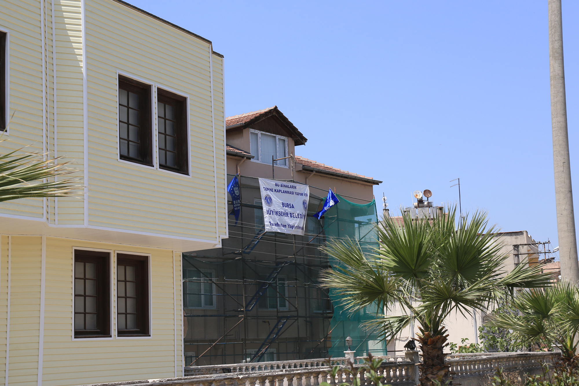 - CEPHE SAĞLIKLAŞTIRMA ÇALIŞMALARINA KENT MERKEZİNDEN SONRA KENT GİRİŞLERİNDEKİ ANA ARTERLERDE DE DEVAM EDEN BÜYÜKŞEHİR BELEDİYESİ, İSTANBUL İSTİKAMETİNDEN BURSA’YA GELENLERİ KARŞILAYAN OVAAKÇA MAHALLESİ’NDEKİ ANA YOLA PARALEL BİNALARDA DA CEPHE DÜZENLEME ÇALIŞMALARINI BAŞLATTI.