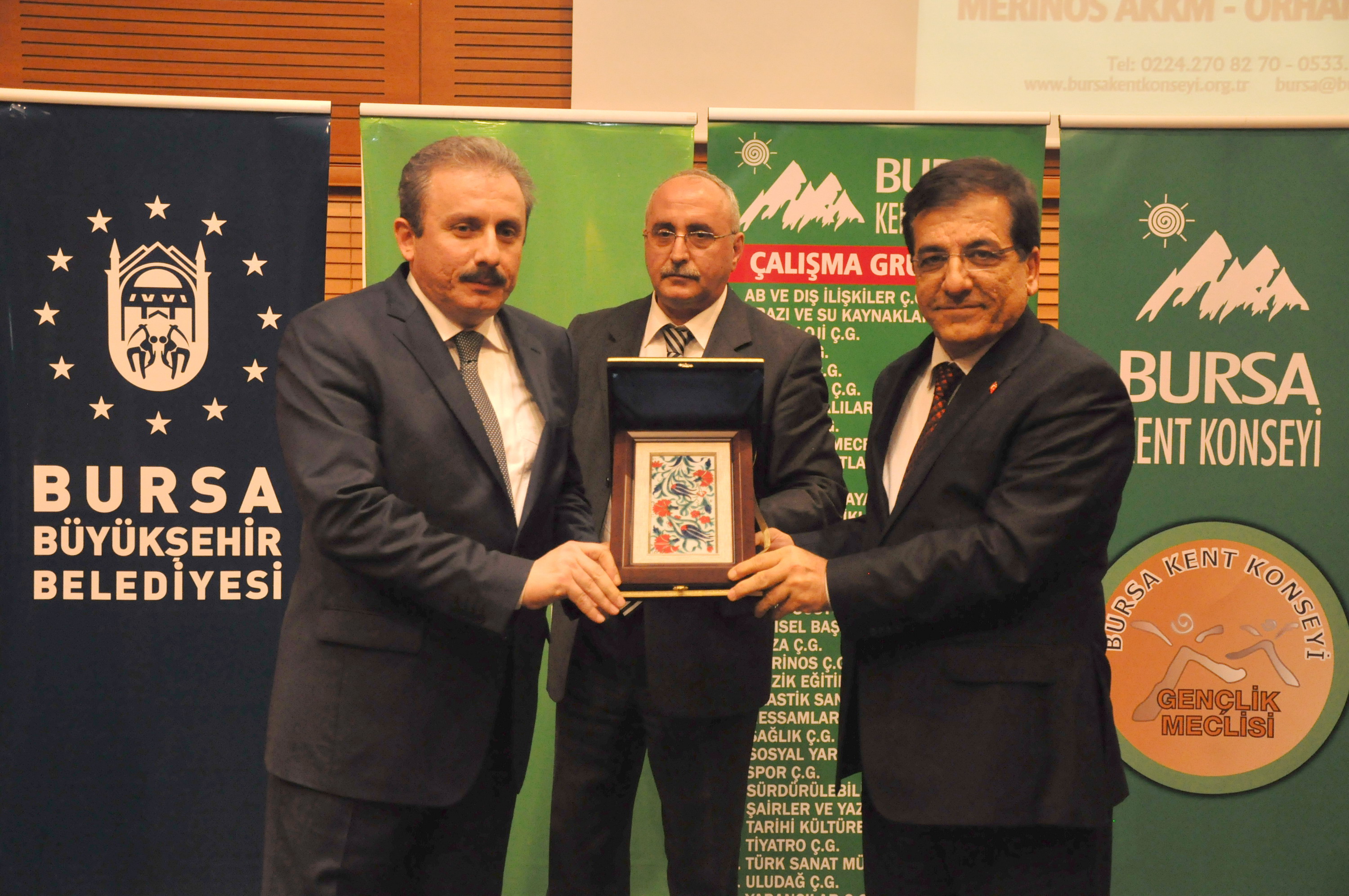 Programın sonunda AK Parti İl Başkanı Sedat Yalçın ve Bursa Kent Konseyi Başkanı Semih Pala tarafından Prof. Dr. Mustafa Şentop’a plaket ve kitap seti hediye edildi.