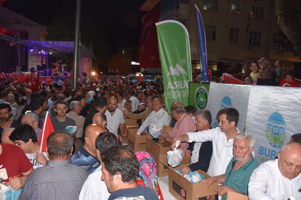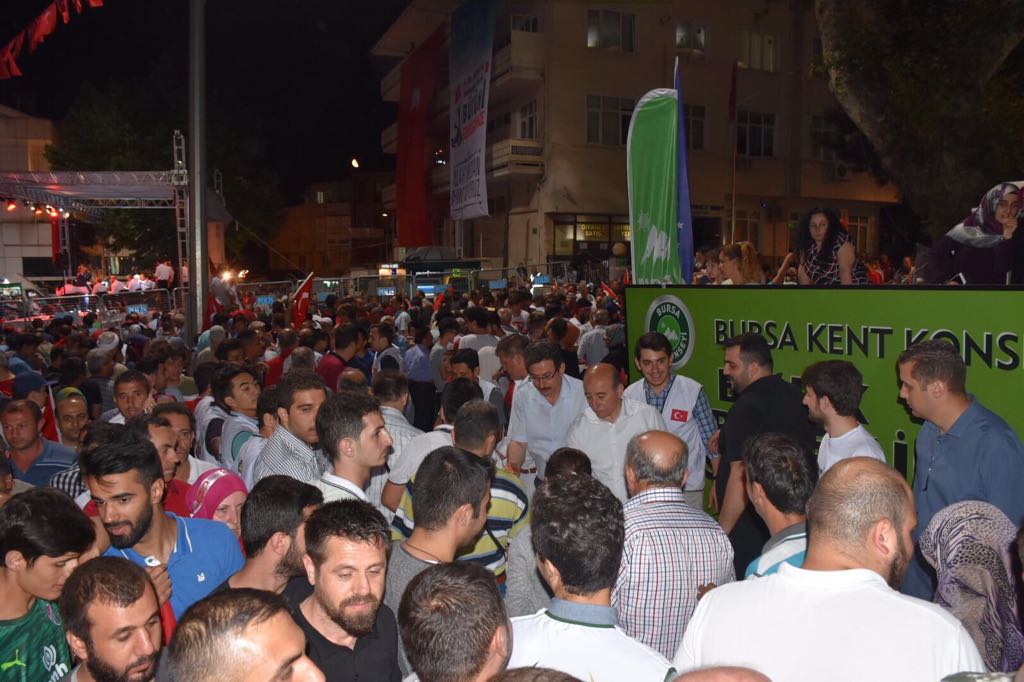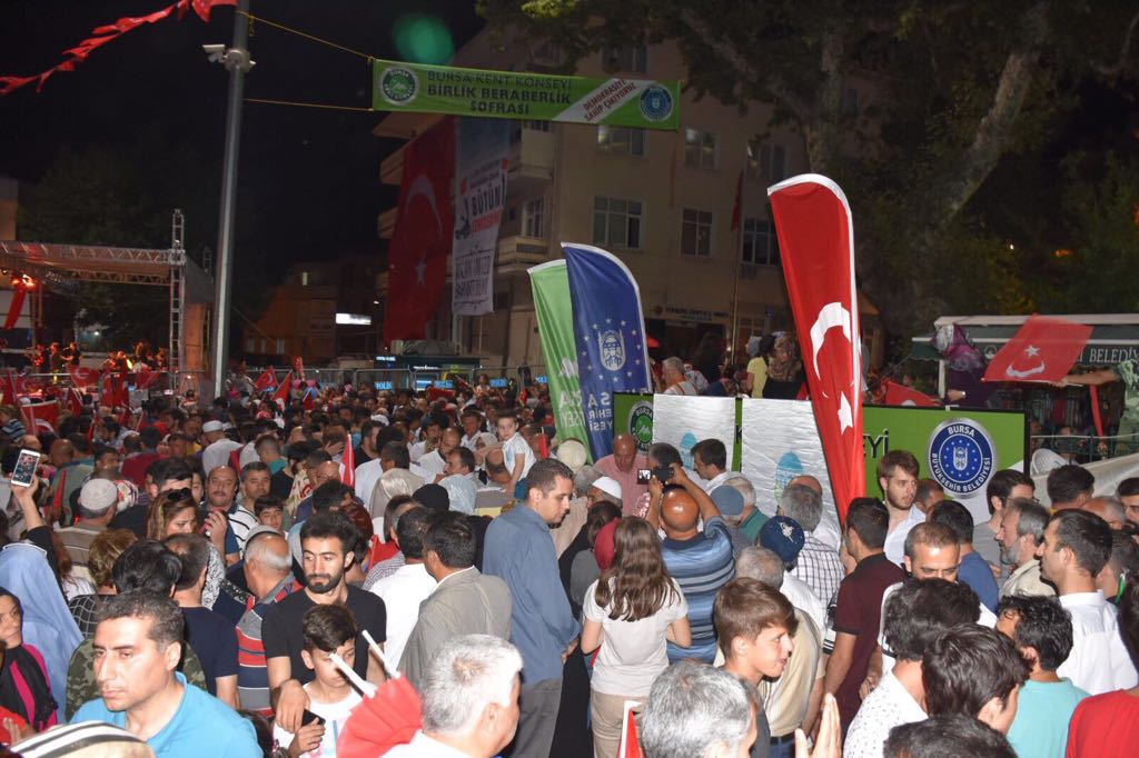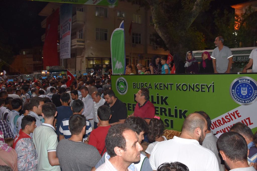 -Bursa Kent Konseyi, 15 Temmuz 2016 günü gerçekleşen FETÖ Terör Örgütünün hain darbe girişiminin sene-i devriyesinde 15 Temmuz Demokrasi Meydanı´nda bu yılda birlik ve beraberlik sofrası kurdu.