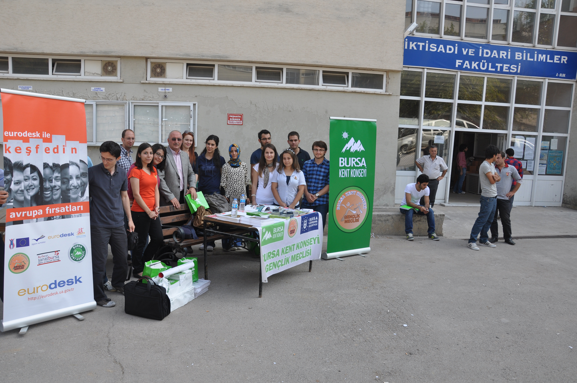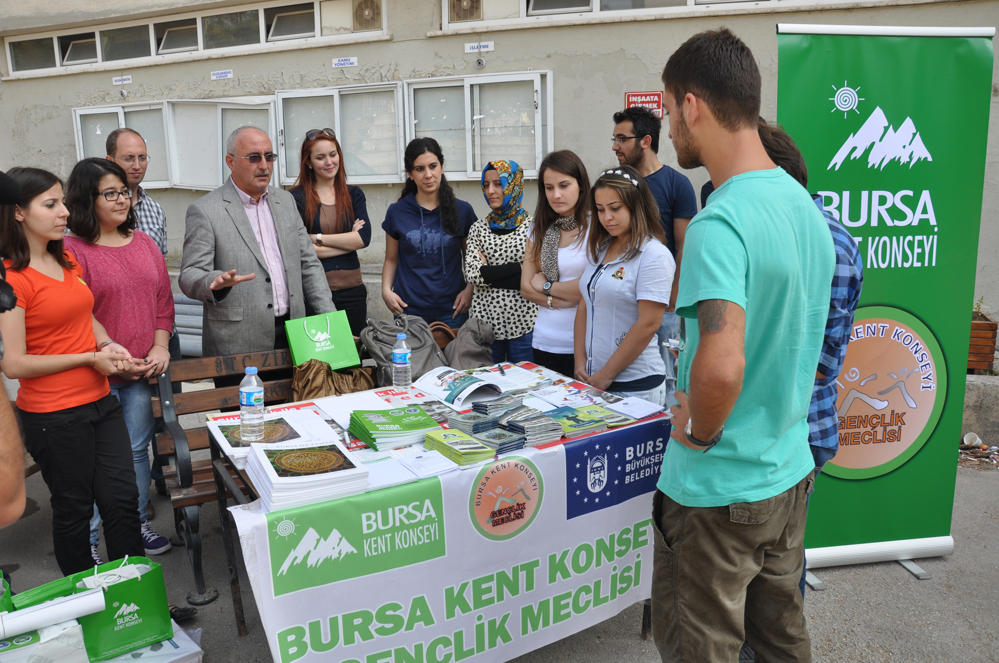 Bursa Kent Konseyi Gençlik Meclisi, 2012-2013 yılı eğitim-öğretim yılında kapılarını gençlere açan Uludağ Üniversitesi’nde bilgilendirme standı açtı. İktisadi ve İdari Bilimler Fakültesi ile Mediko’da açılan stantta, Gençlik Meclisi gönüllüleri tarafından üniversite öğrencilerine gençlik çalışmaları, Eurodesk ve Avrupa fırsatları hakkında bilgi verildi. Çalışmalar hakkında bilgi alan üniversite öğrencileri, Bursa Kent Konseyi Gençlik Meclisi’ne katılmaktan mutluluk duyduklarını ifade etti.