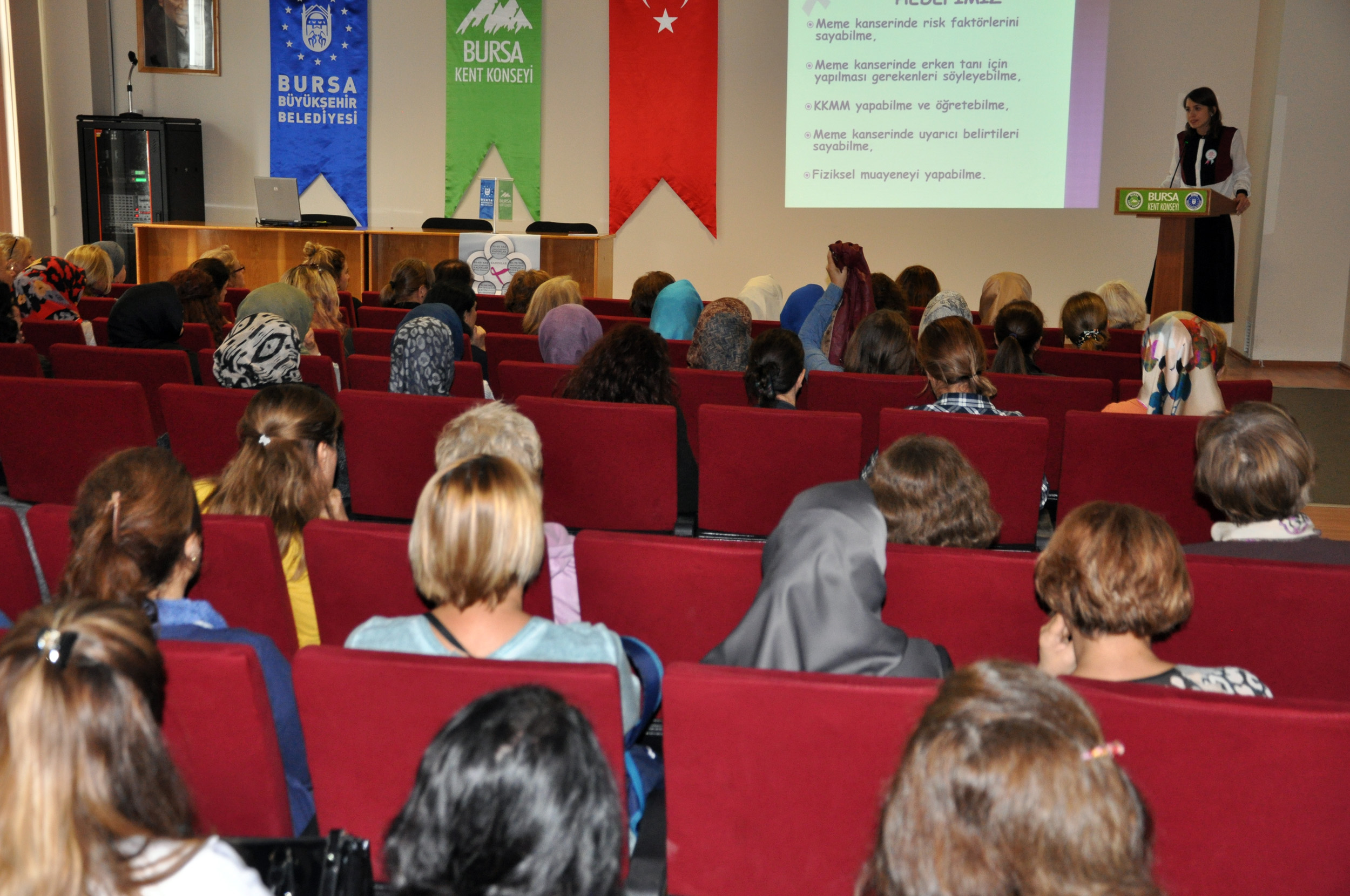 - Bursa Kent Konseyi Ressamlar Çalışma Grubu’nun KETEM ile ortaklaşa hazırladığı bilgilendirme toplantısında, gönüllüler meme kanseri belirtileri ve korunma yöntemleri anlatıldı.