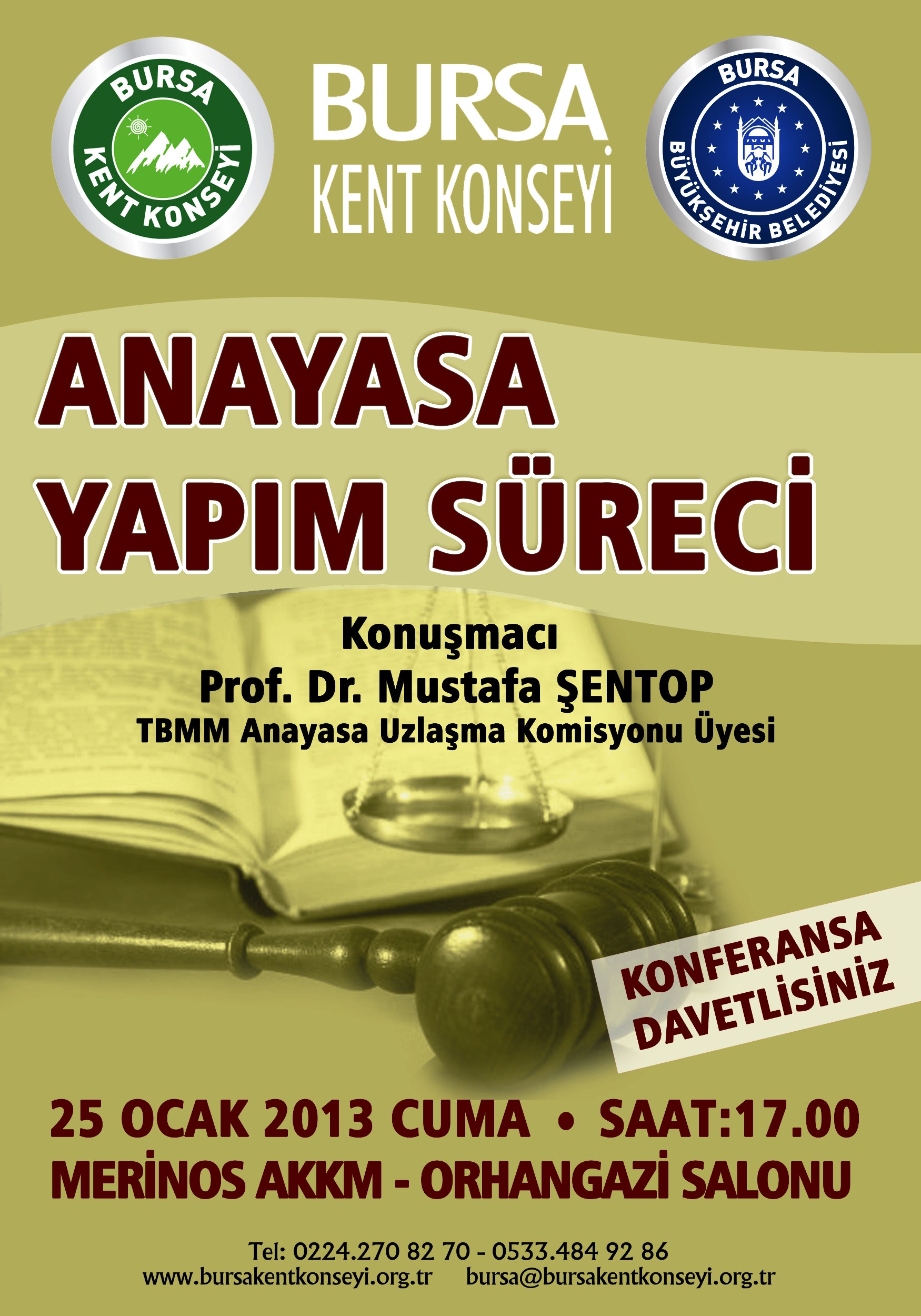 - BURSA KENT KONSEYİ (BURKENKON), TBMM ANAYASA UZLAŞMA KOMİSYONU ÜYESİ İSTANBUL MİLLETVEKİLİ PROF. DR. MUSTAFA ŞENTOP’UN KONUŞMACI OLACAĞI ‘YENİ ANAYASA SÜRECİ’ KONULU TOPLANTIYA HAZIRLANIYOR.