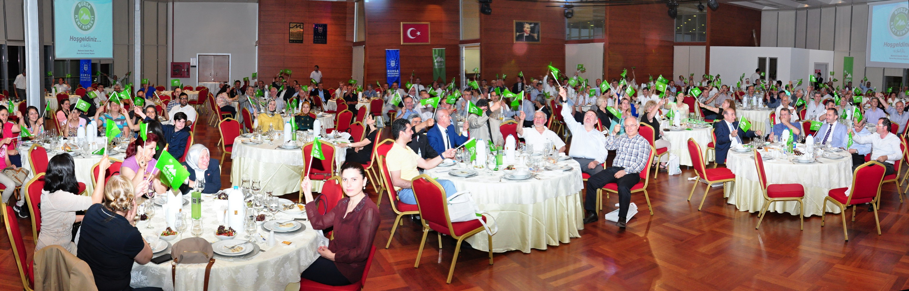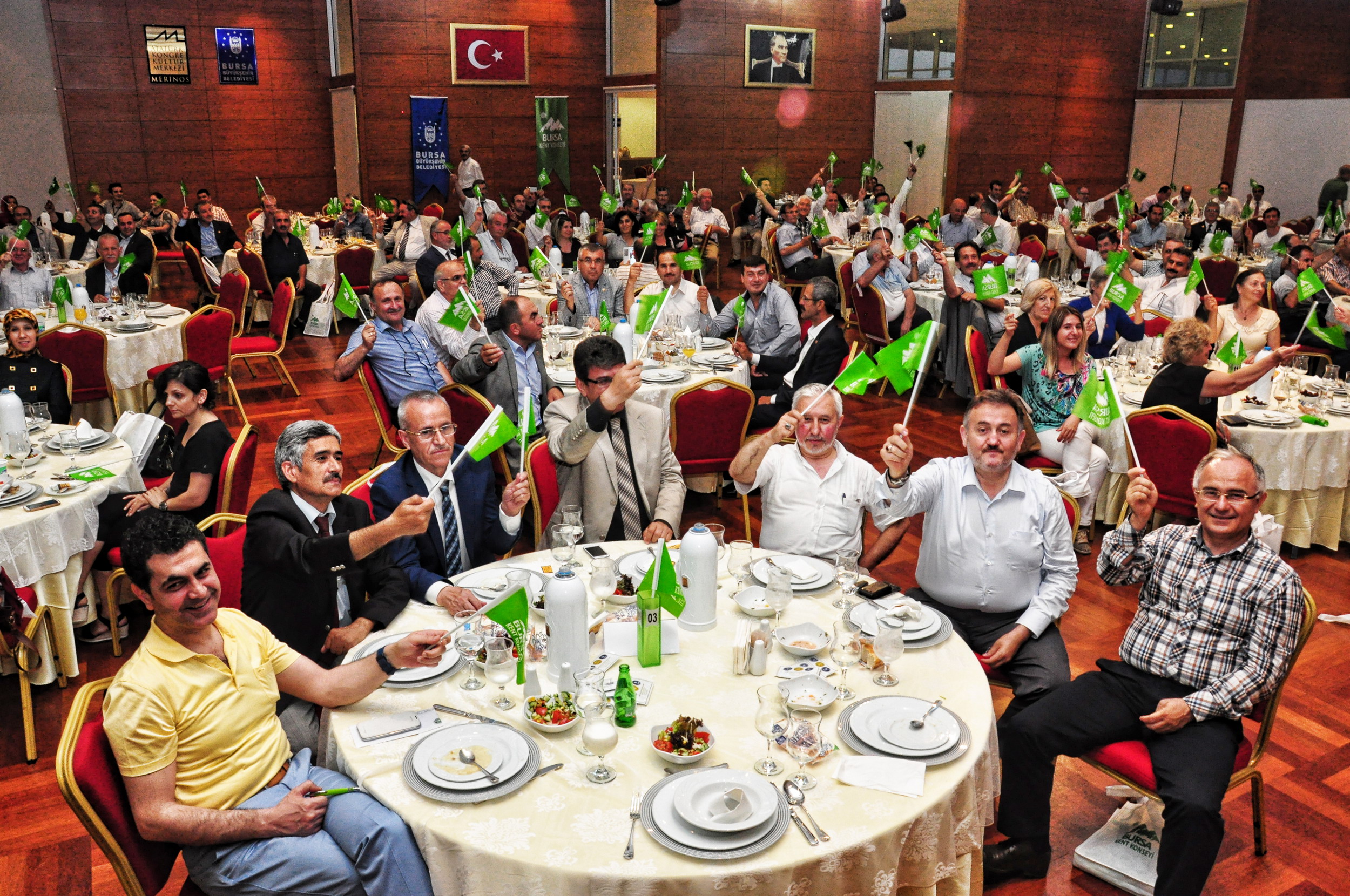 Konuşmaların ardından konuklar, tekno Mehter Marşı eşliğinde Bursa Kent Konseyi bayraklarını salladı.