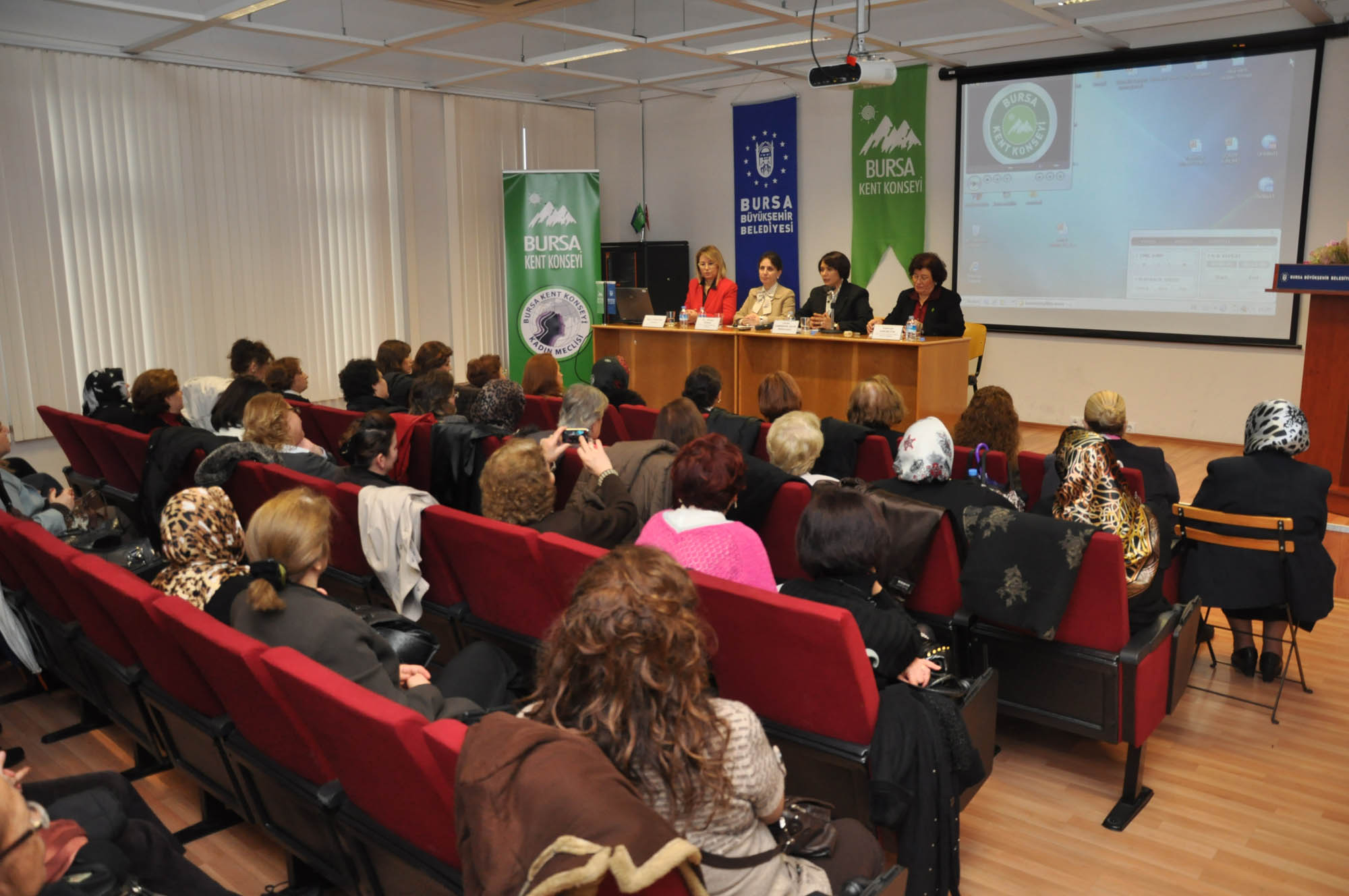 BURSA – Bursa Kent Konseyi Kadın Meclisi tarafından kadınlara seçme seçilme hakkı verilişinin 78. yıldönümünü sebebiyle düzenlenen toplantıda, kadınların günümüzde yaşadığı sıkıntılar ve bu sorunların çözümü için yapılması gerekenler konuşuldu.