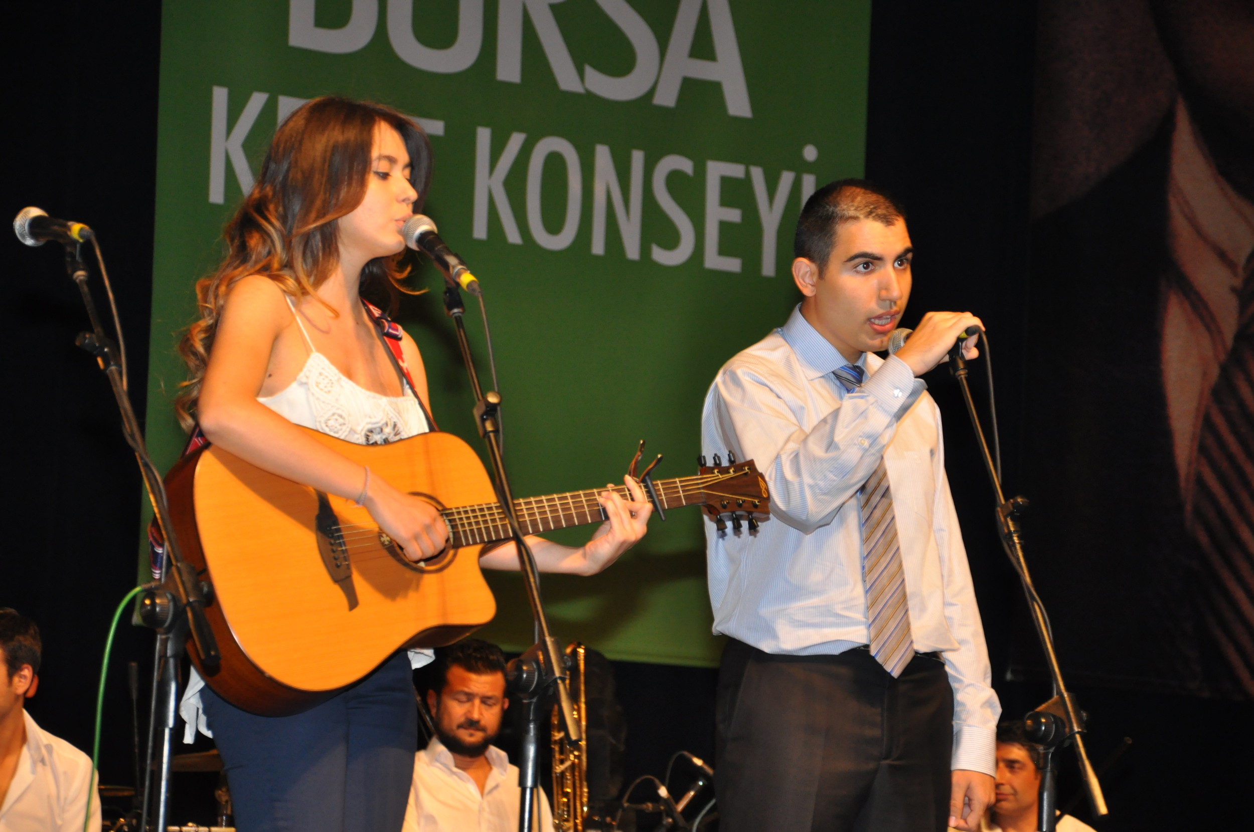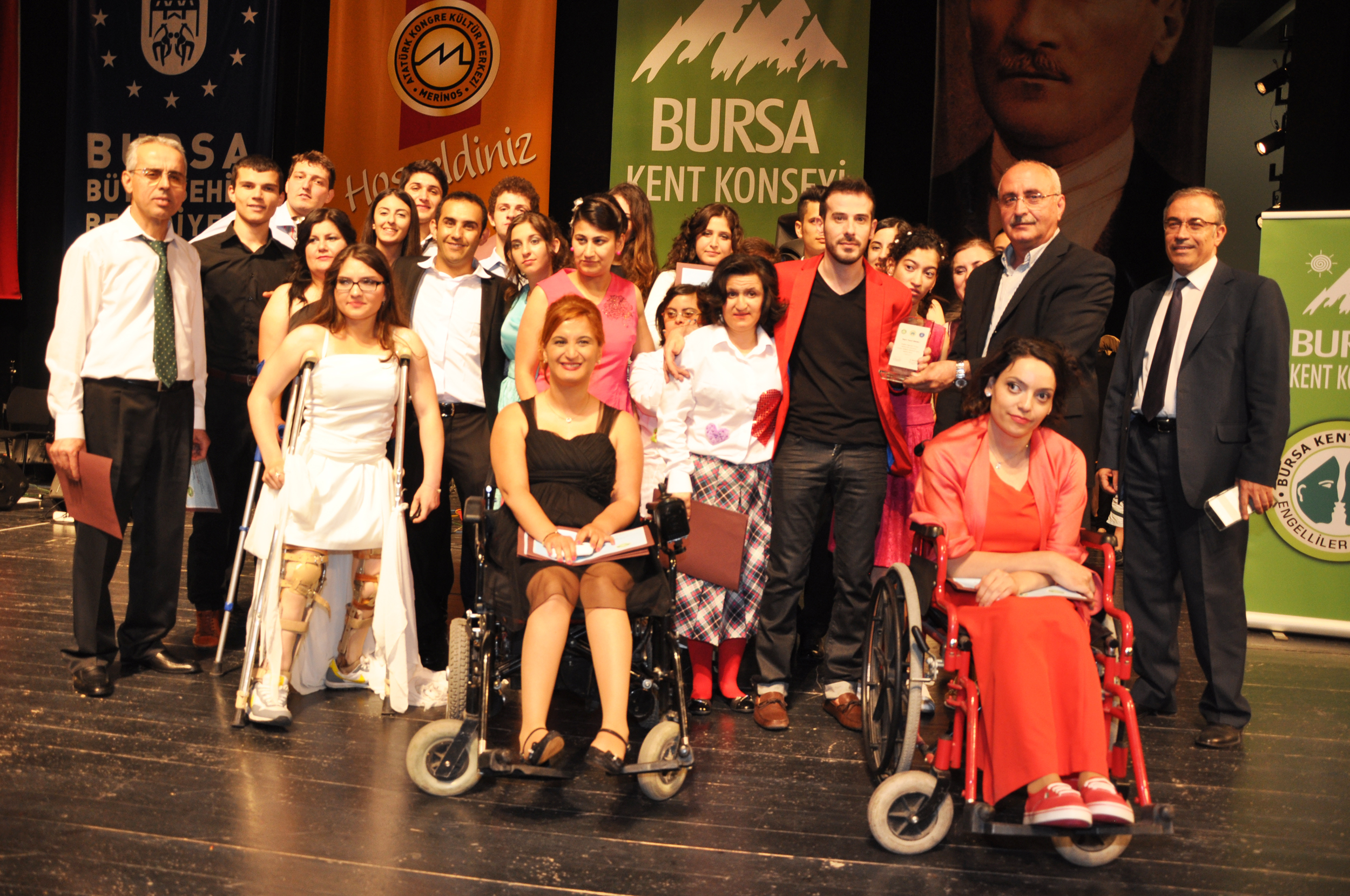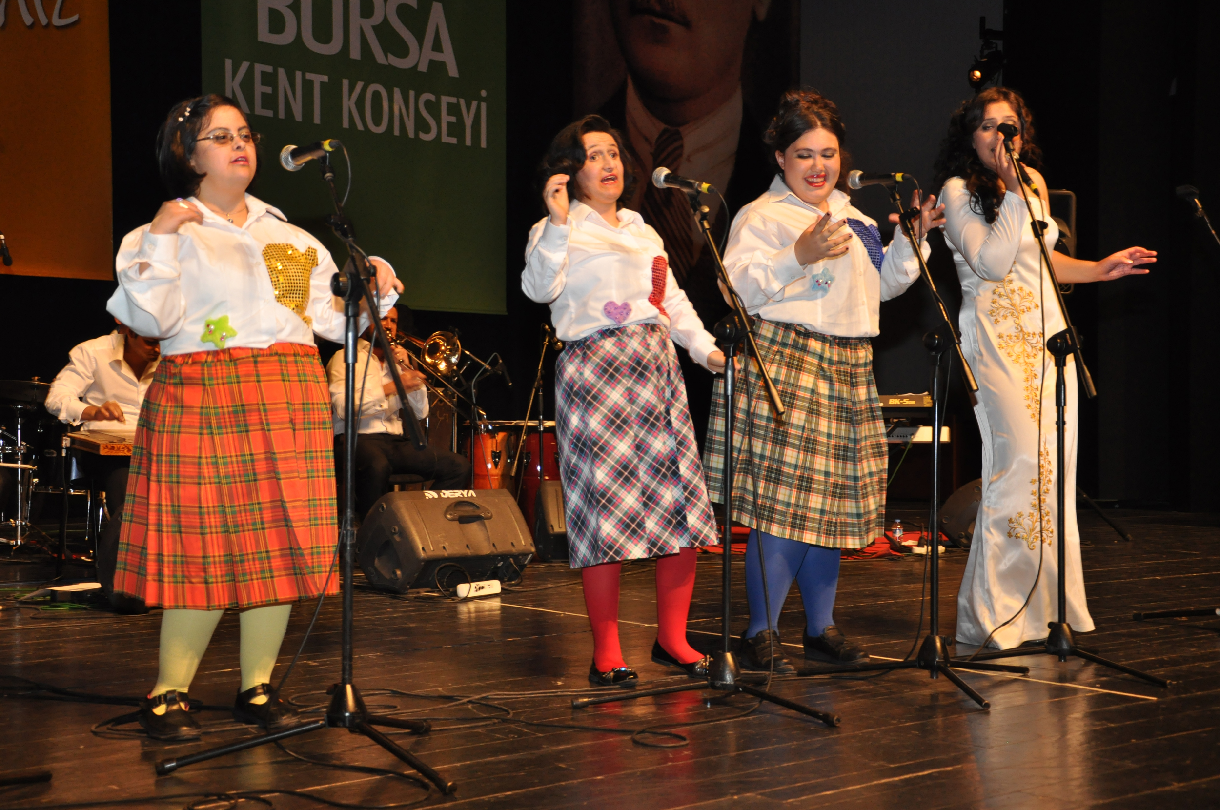 BURSA – Bursa Kent Konseyi (BKK) Engelliler Meclisi ve lise öğrencilerinin ortaklaşa yürüttüğü ‘Engelsiz Nağmeler’ projesinin final konserinde, usta sanatçılar Jale, Yeliz, Semiha Yankı, İskender Doğan ve Ersan Erdura sahneye engellilerle birlikte çıkarak şarkı söyledi.
