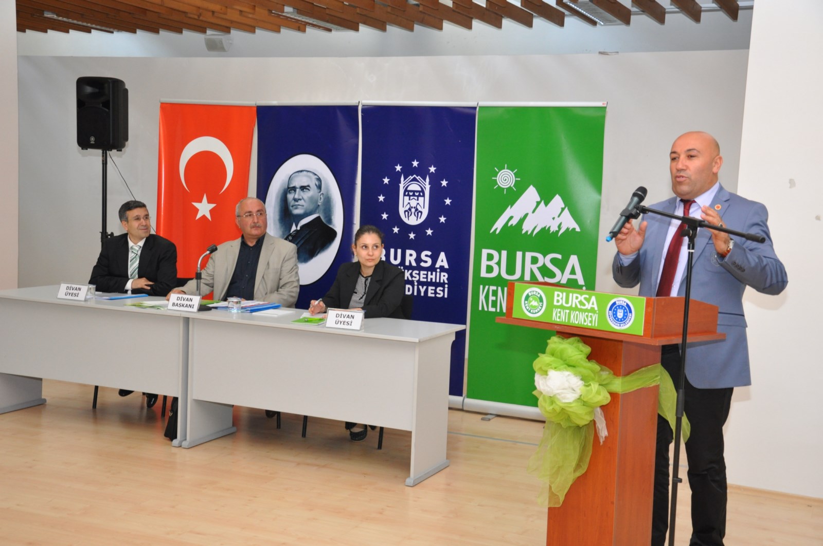 Türkiye’nin en büyük ve en aktif kent konseyi olan Bursa Kent Konseyi (BKK), 17 ilçeden mahalle muhtarlarını bir araya getirerek yapılan çalışmalar hakkında bilgi alışverişinde bulunuldu. Bursa Kent Konseyi (BKK) tarafından Atatürk Kongre Kültür Merkezi (Merinos AKKM) Yıldırım Gürses Salonu’ndaki düzenlenen ‘Muhtarlar Toplantısı’nda, 17 ilçeden mahalle muhtarları katıldı. Toplantı öncesinde oy birliğiyle Divan Başkanlığı’na BKK Başkanı Semih Pala, Divan üyeliklerine ise Enes Battal Keskin ve Neslişah Kuşku seçildi.