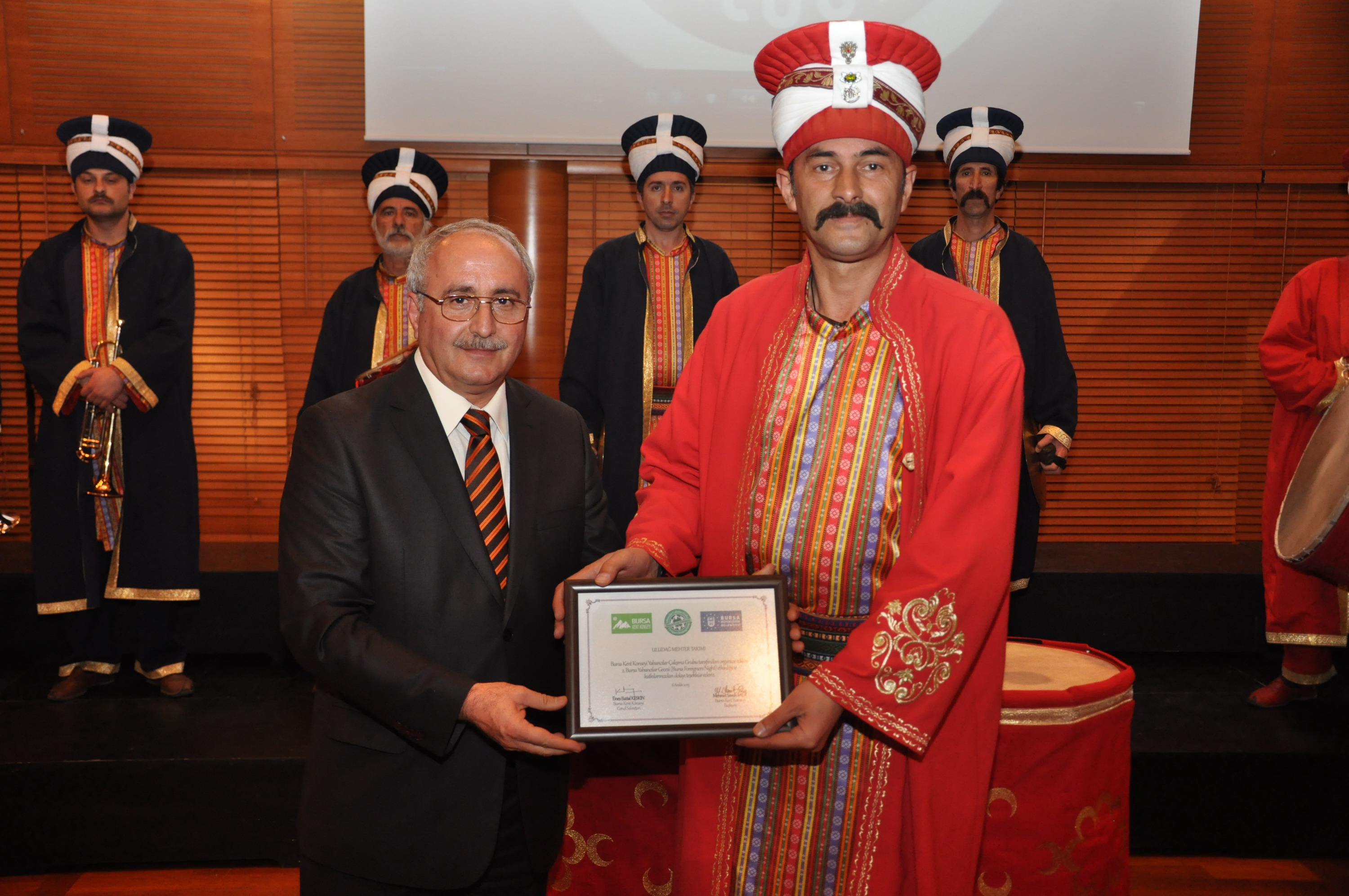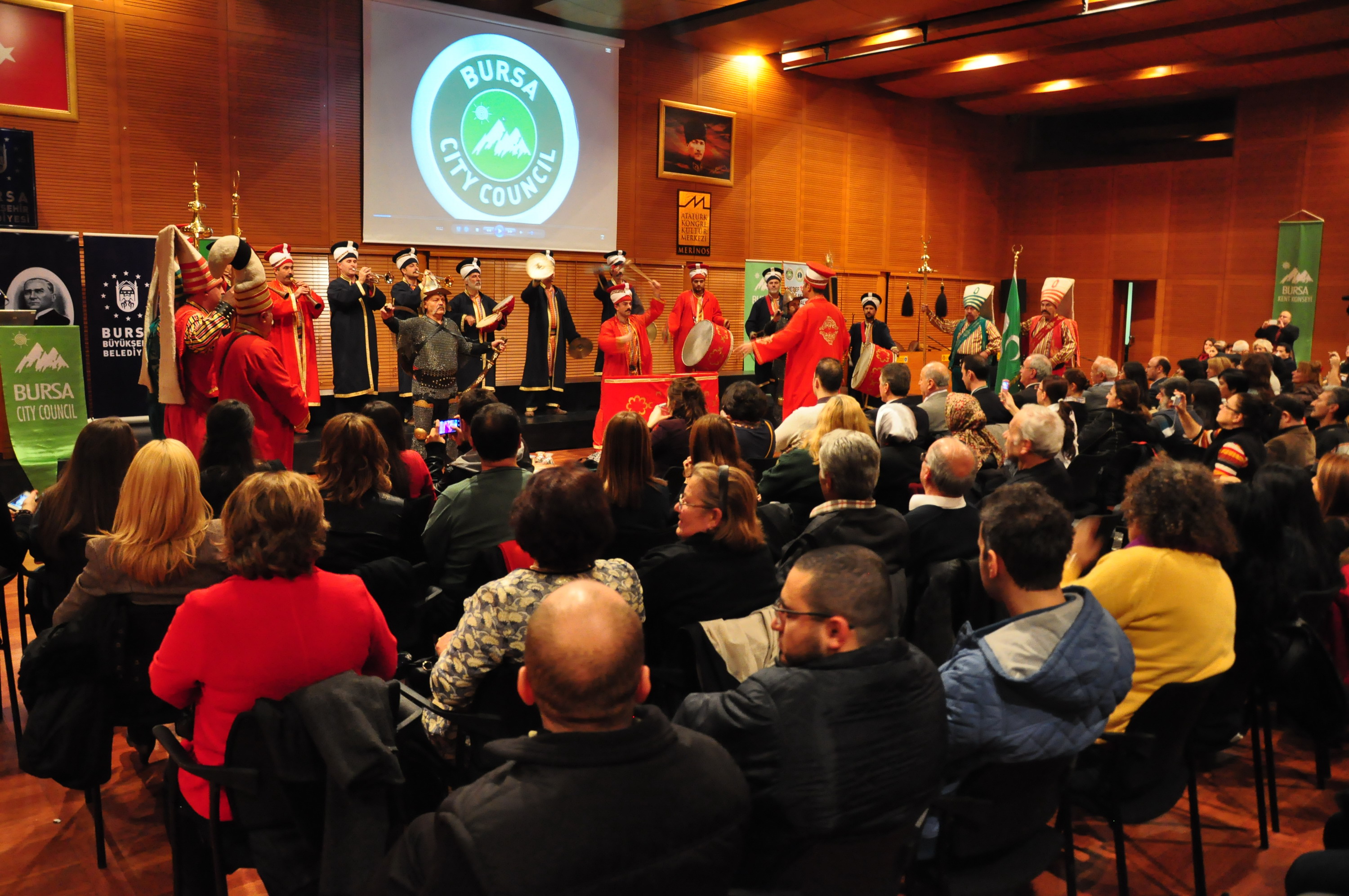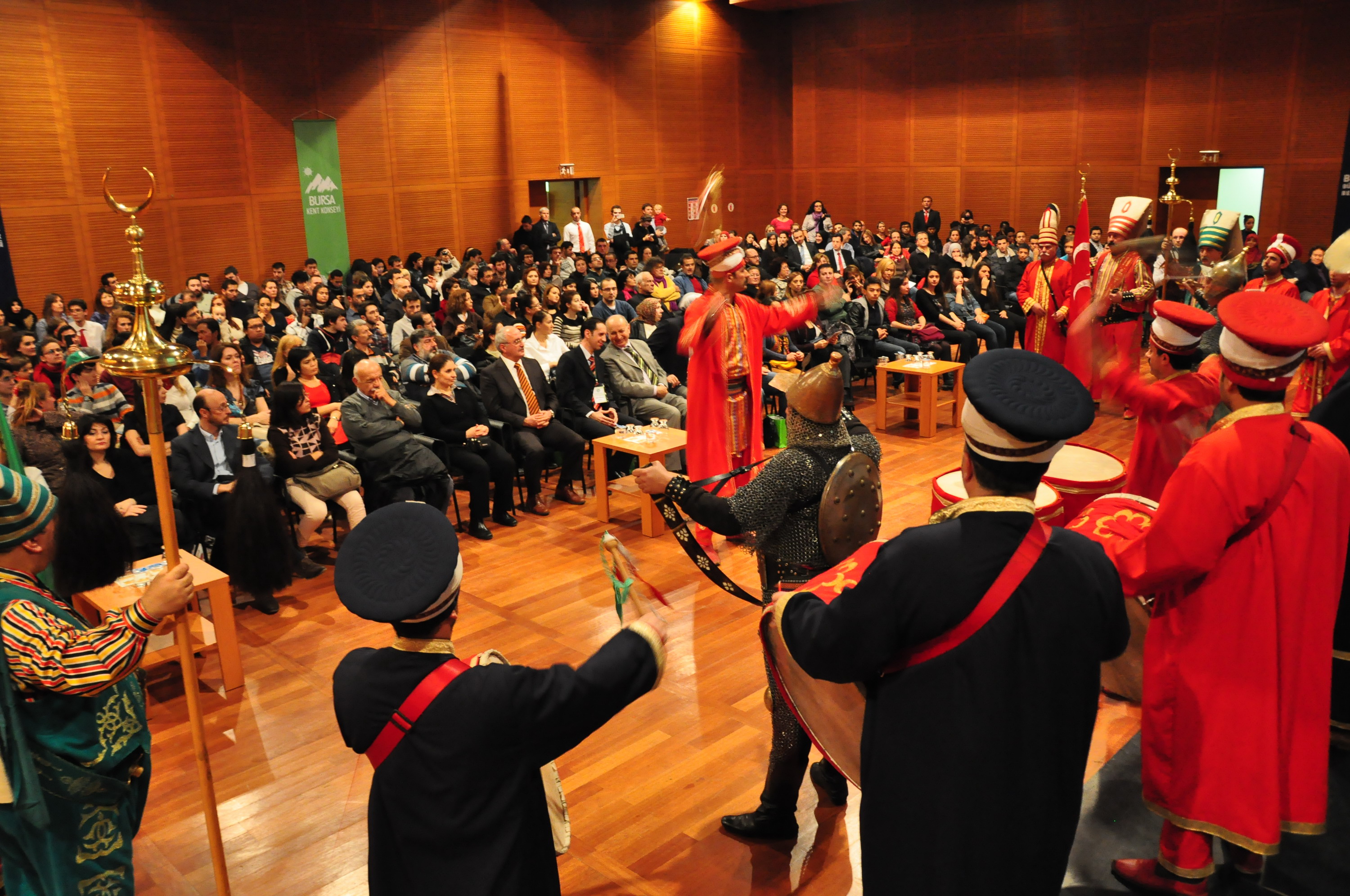 Uludağ Mehter Takımı’nın alkışlar içerisinde salona girmesiyle başlayan gecede, konuklar tarihi mehter takımını büyük dikkatle izledi. Seslendirilen çeşitli marşlarla büyük coşku yaşayan yabancılar, bol bol fotoğraf ve görüntü çekerek anı ölümsüzleştirdi. Bursa’da yaşayan yabancıların şehirde çekindiği fotoğraflardan oluşan video gösteriminin yapıldığı buluşmada, Osmangazi Halk Dansları Topluluğu da sahne aldı. Yöresel kıyafetleriyle büyük ilgi gören dansçılar, performanslarıyla salonu dolduranlardan kendilerine hayran bıraktı. Gecenin sonunda ise Dünya Müzik Derneği (DMD) korosu sahne alarak çeşitli ülkelere ait eserleri seslendirdi. Söyledikleri şarkılarla yabancı konukları eğlendiren koro, konserin sonunda büyük alkış aldı.