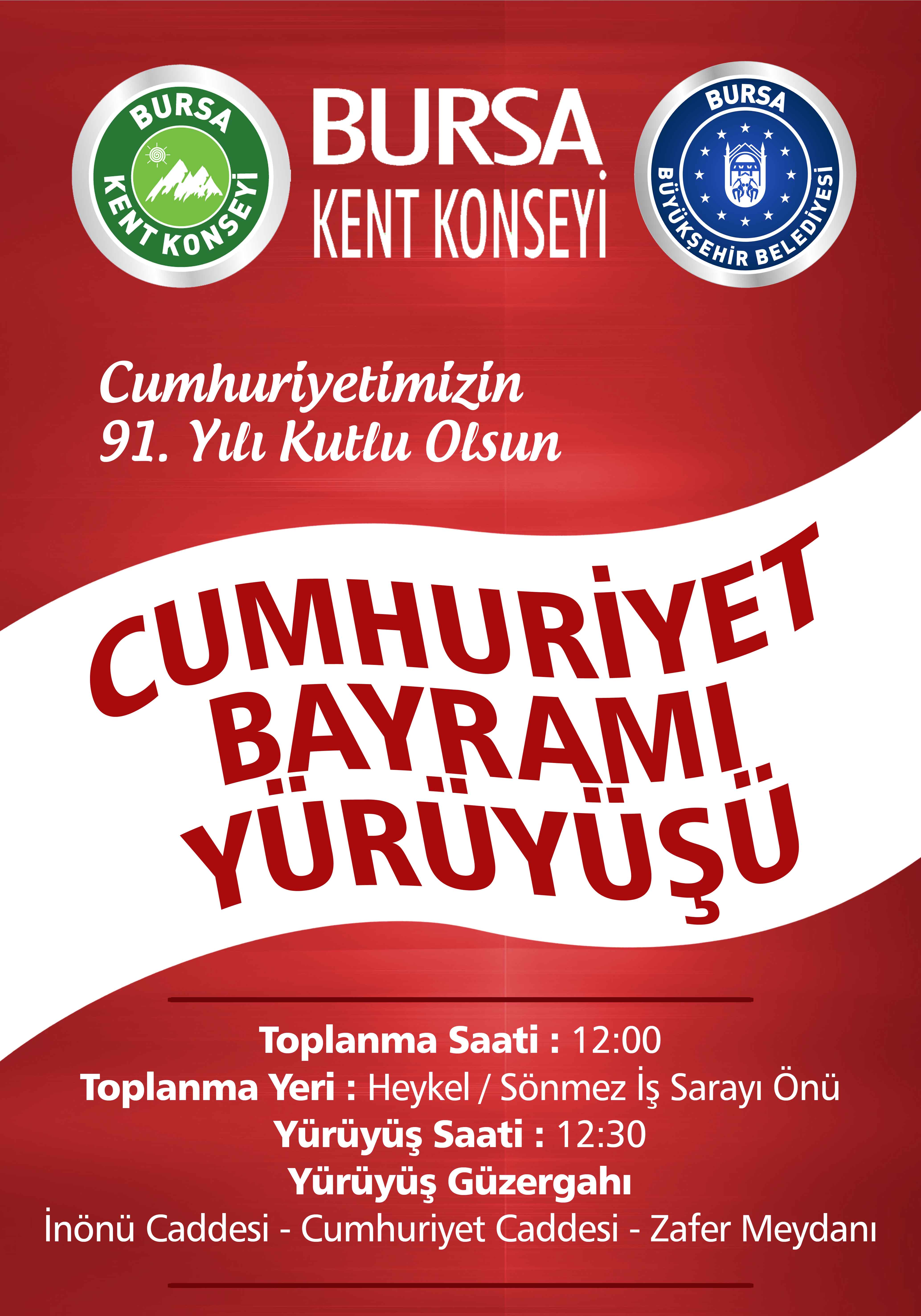 - Bursa Kent Konseyi (BKK) Başkanı Semih Pala, ‘29 Ekim Cumhuriyet Bayramı’ yürüyüşüne Bursalıları davet etti.