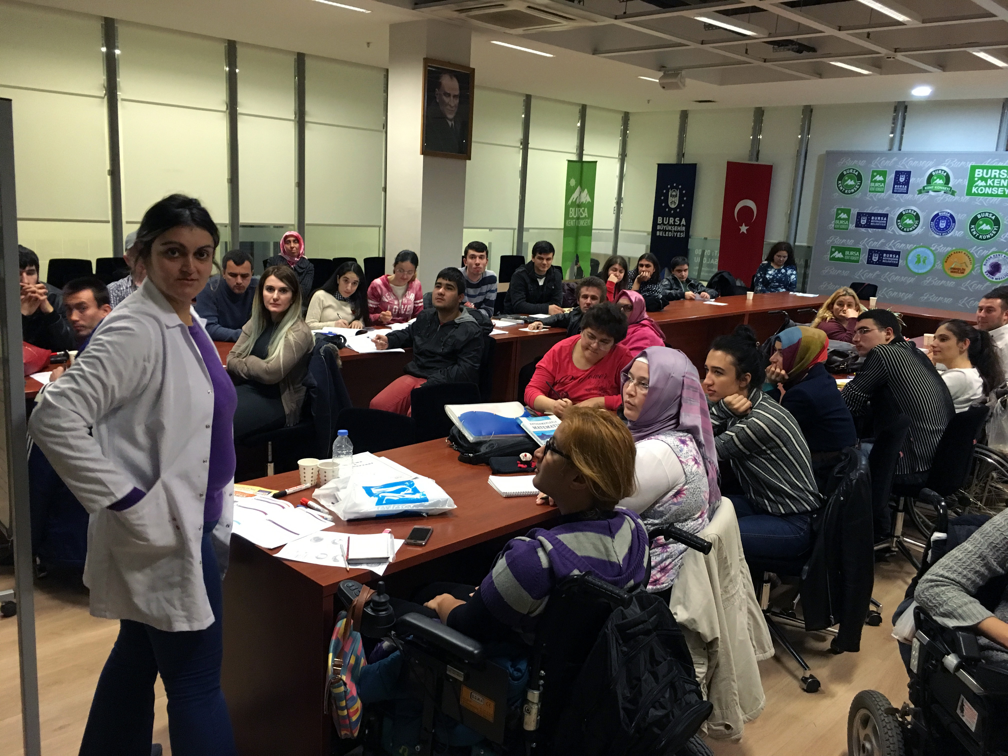 -Bursa Kent Konseyi Engelliler Meclisi ve Osmangazi Halk Eğitim Merkezi işbirliğiyle açılan ücretsiz kursta, toplam 77 engelli vatandaş eğitim görüyor.