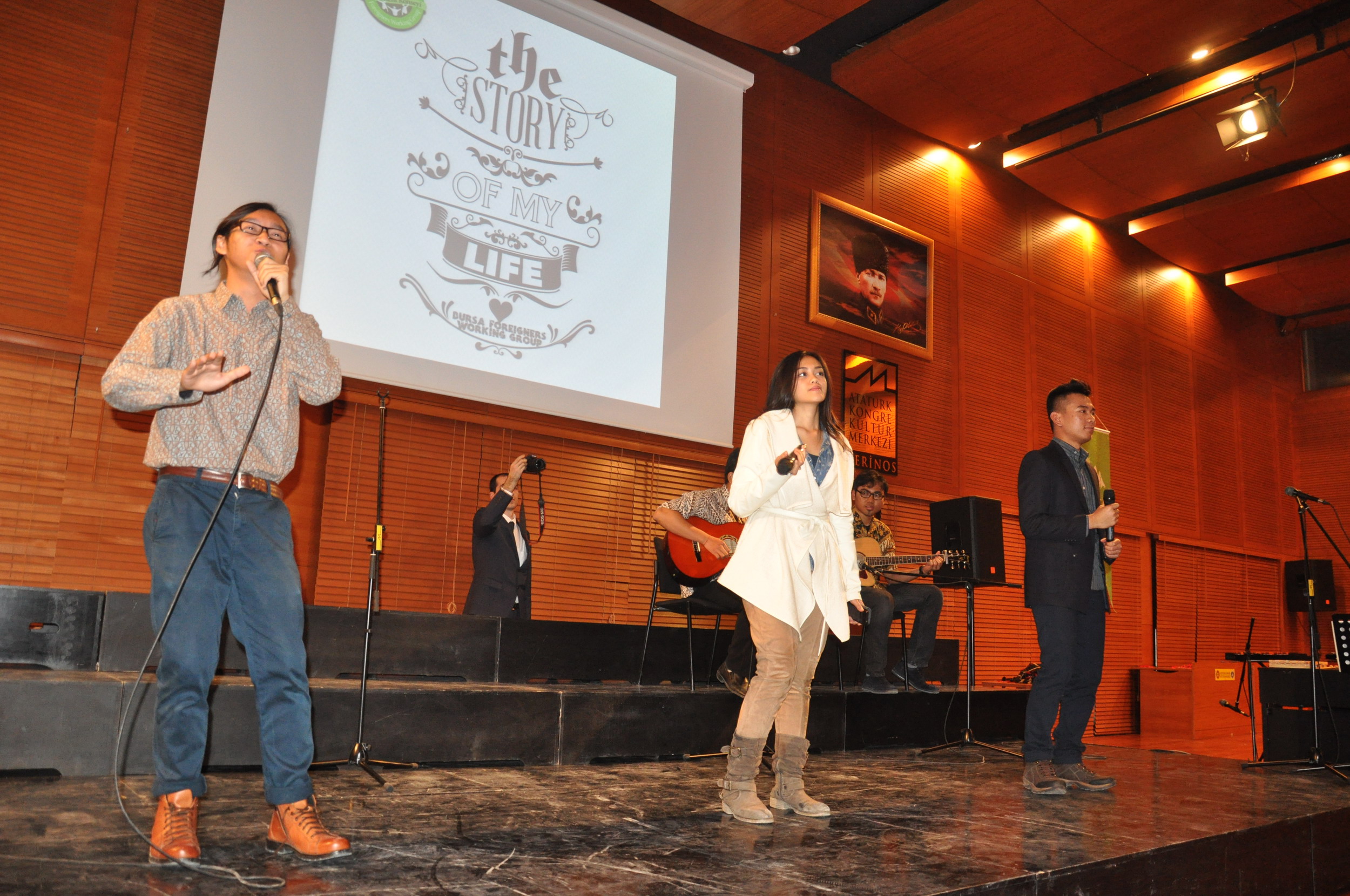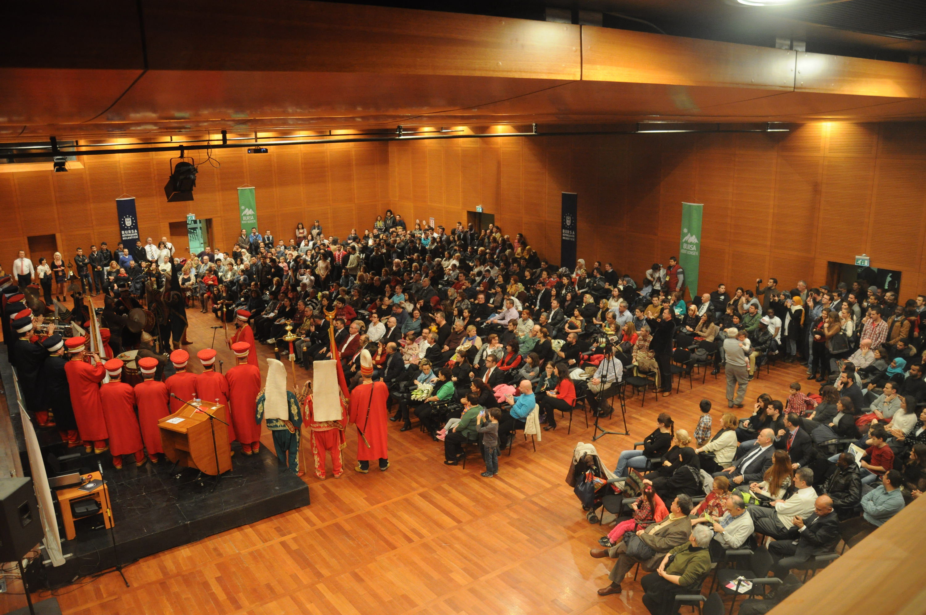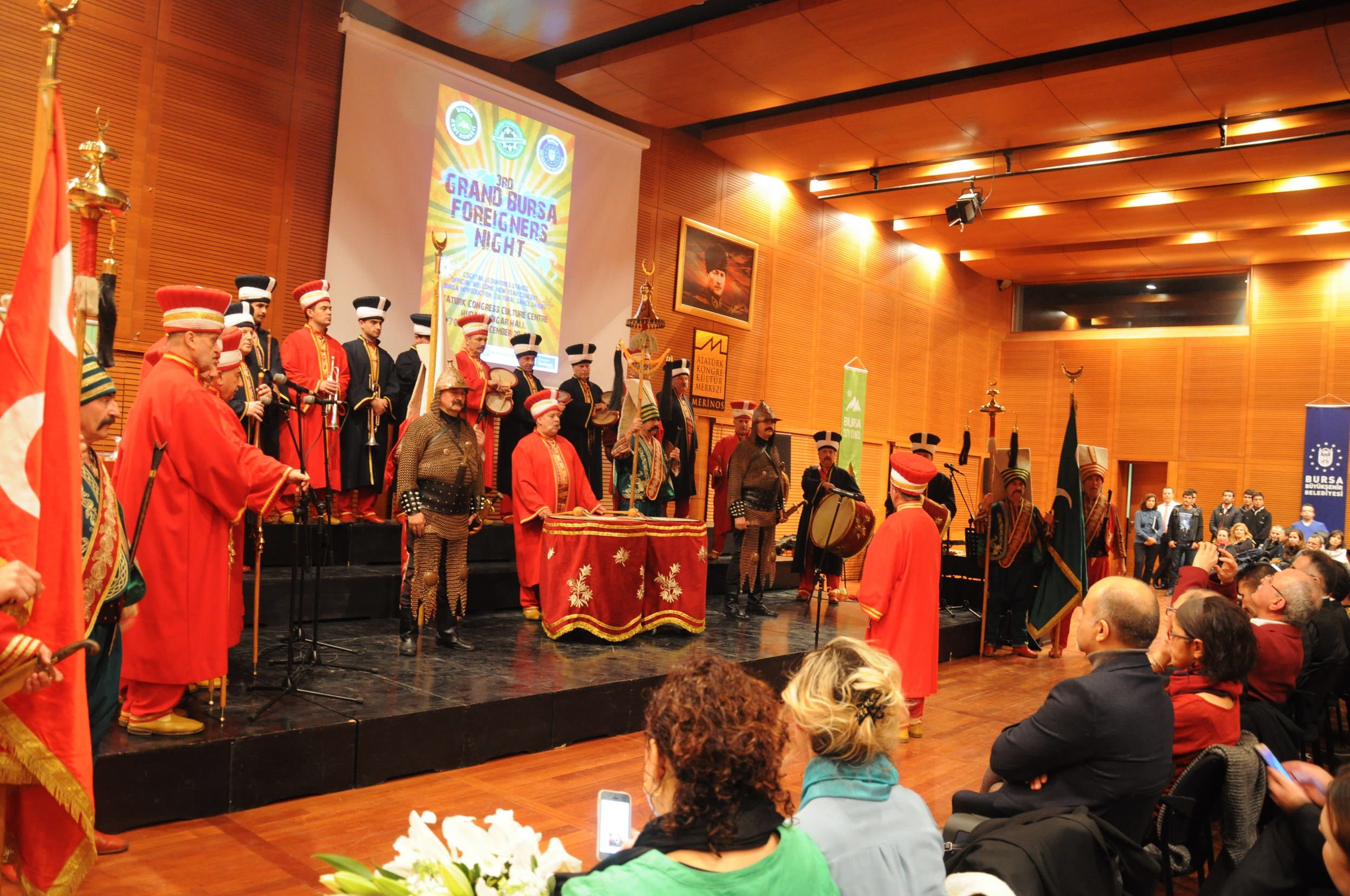 Bursa Mehter Takımı’nın alkışlar eşliğinde salona girmesiyle başlayan gecede, konuklar mehter takımını büyük dikkatle izledi. Yabancılar, seslendirilen marşlarla büyük coşku yaşadı. Bursa’da yaşayan yabancıların şehirde çekindiği fotoğraf ve videolardan oluşan film gösteriminin yapıldığı buluşmada, Endonezyalı Indorsacoustic adlı müzik grubu sahne alarak seslendirdikleri parçalarla büyük beğeni aldı. Polonyalı Wiola Krolik tarafından sergilenen ışıklı dans gösterisi de ilgi gördü.