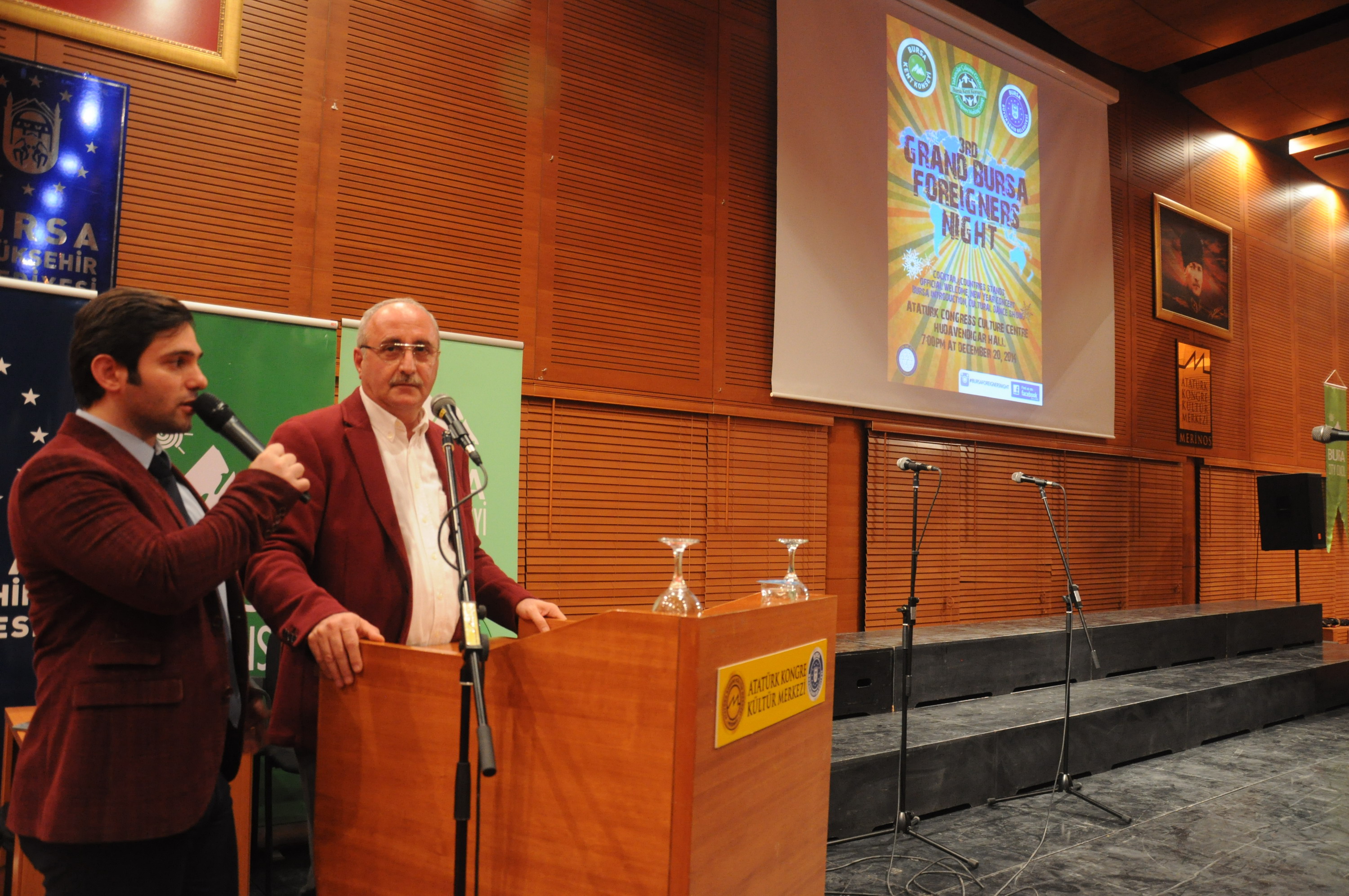 Türkiye’de sadece BKK bünyesinde bulunan Yabancılar Çalışma Gurubu (Foreigners Working Group), Bursa’ya çeşitli ülkelerden iş, aile, eğitim gibi sebeplerle gelen yabancı kişilerin Türk kültürüne alışması için çalışmalarını sürdürüyor. Bu yıl üçüncüsü yapılan ‘Bursa Yabancılar Gecesi (Bursa Foreigners Night)’, 41 farklı ülke vatandaşının katılımıyla Atatürk Kongre Kültür Merkezi (Merinos AKKM) Hüdavendigar Salonu’nda düzenlendi. Programa, Brezilya, Meksika, Azerbaycan, ABD, Rusya, Fas, Cezayir, Libya, Orta Afrika Cumhuriyeti, Demokratik Kongo, Sudan, Etiyopya, Yemen, Suudi Arabistan, Lübnan, Mısır, Suriye, İran, Ermenistan, Afganistan, Pakistan, Hindistan, Bangladeş, Çin, Güney Kore, Endonezya, Avusturalya, Kazakistan, Kırgızistan, Özbekistan, Tacikistan, Polonya, Ukrayna, Bulgaristan, Sırbistan, Bosna Hersek, Kosova, Arnavutluk, Makedonya, Yunanistan uyruklu yabancı konuklar, yabancı derneklerin temsilcileri, fahri konsolosluk görevlileri katıldı. Program kapsamında dernekler kurdukları stantlarda gelenlere bilgi verdi. Ayrıca Yabancılar Çalışma Grubu üyeleri tarafından çekilen Bursa fotoğrafları da sergilendi. Programa katılanlar, Pakistan’da düzenlenen terör saldırısında ölen öğrenciler anısına siyah kurdele taktı.