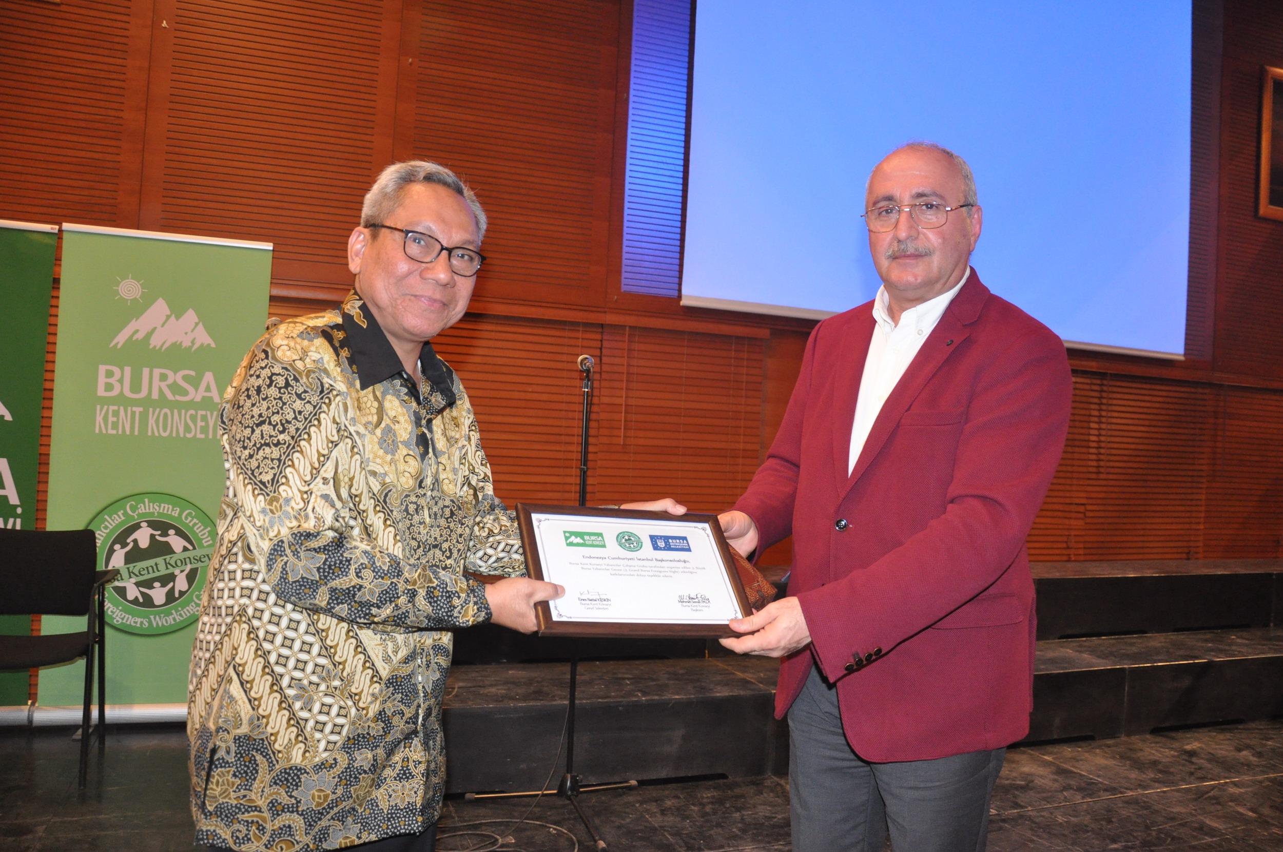 Programın sonunda BKK Başkanı Semih Pala tarafından geceye katkı koyan kişi ve kurumlara teşekkür belgesi takdim edildi. Ayrıca Endonezya Cumhuriyeti İstanbul Başkonsolosu Kusumaningprang tarafından BKK Başkanı Pala’ya gecenin anısına plaket verildi.