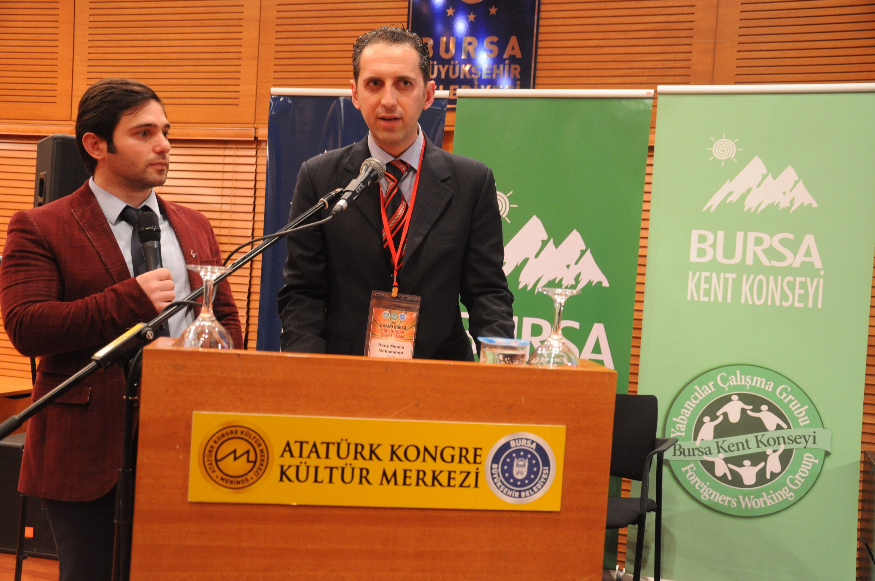 BKK Yabancılar Çalışma Grubu’nun geçen seneki temsilcisi Rony Moulla, Türkçe ‘herkese iyi akşamlar’ diyerek konuşmasına başladı. BKK Başkanı Semih Pala’ya ve personeline teşekkür eden Moulla, geceyi düzenleyen Yabancılar Çalışma Grubu üyelerini de tebrik etti. Bursa’ya ilk geldiğinde Yabancılar Çalışma Grubu ile tanıştığını ve kendisine aile ortamı sağladıklarını anlatan Moulla, şehirde yaşayan tüm yabancıların gruba üye olmasını tavsiye etti.
