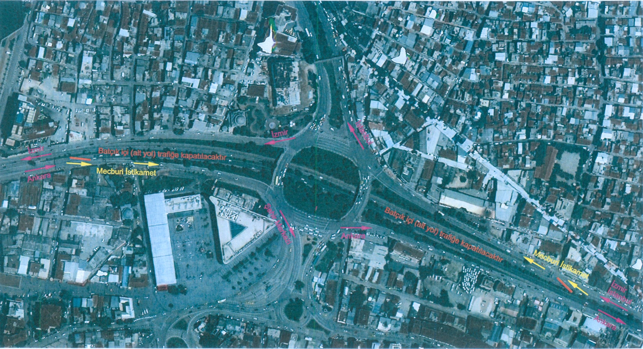 - KENT MEYDANI-TERMİNAL (T2 HATTI) RAYLI SİSTEM HATTI İNŞAATI YAPIM İŞİ KAPSAMINDA, GÜZERGAH ÜZERİNDE YER ALAN K1-K4 KÖPRÜLERİ PREFABRİK KİRİŞ MONTAJ ÇALIŞMALARI YAPILACAĞINDAN, 02 – 04 MAYIS 2017 TARİHLERİ ARASINDA, GECE 22.00-06.00 SAATLERİ ARASINDA KENT MEYDANI KAVŞAĞI ANKARA-İZMİR ALTYOLU TRAFİĞE TAMAMEN KAPATILACAKTIR.